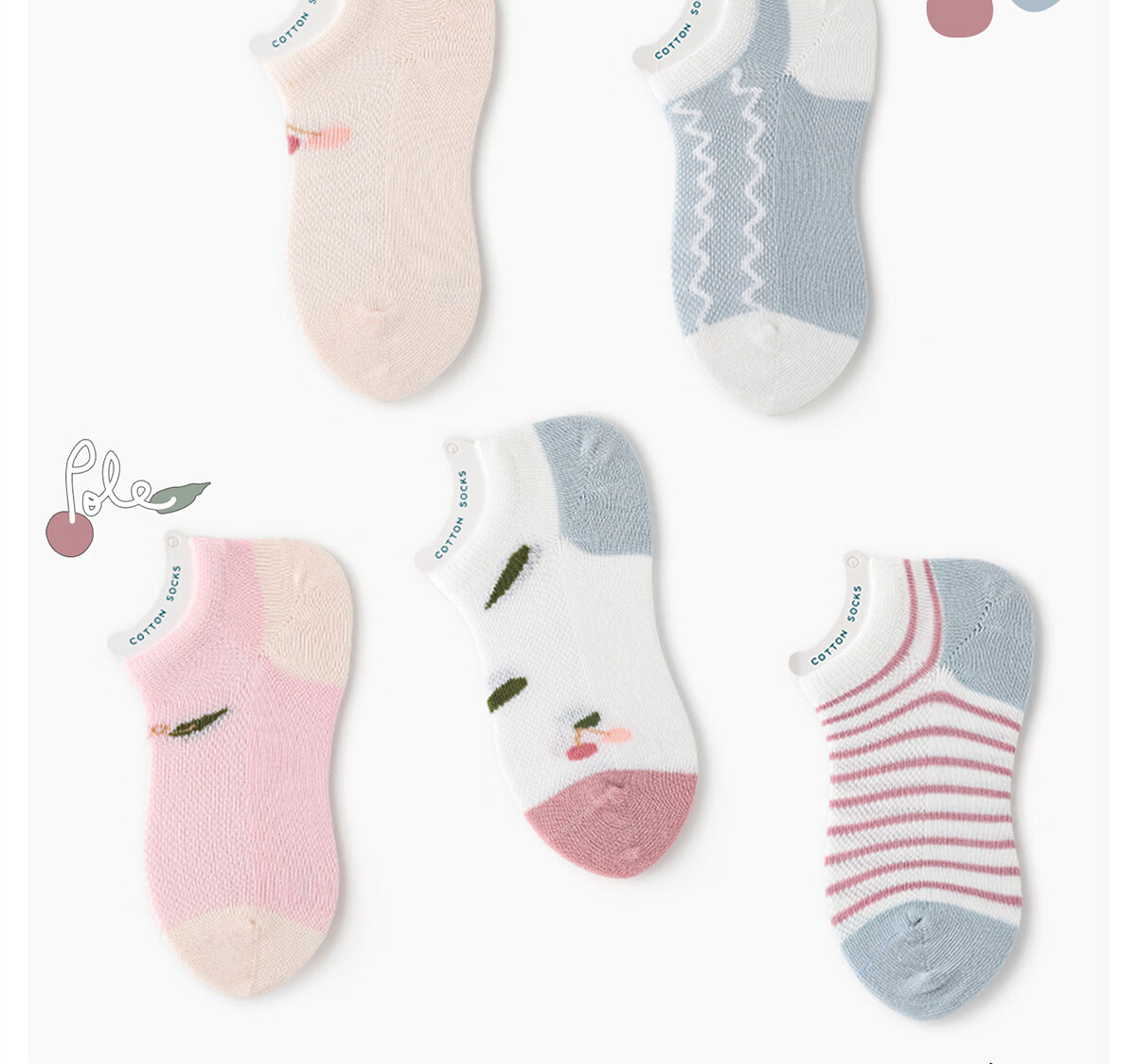 斑比船袜儿童袜子女孩夏天季薄款网眼棉袜中大童隐形短袜子 BB2239 儿童夏季网眼船袜 5双 1-3岁 建议脚码16-20码【14-16】