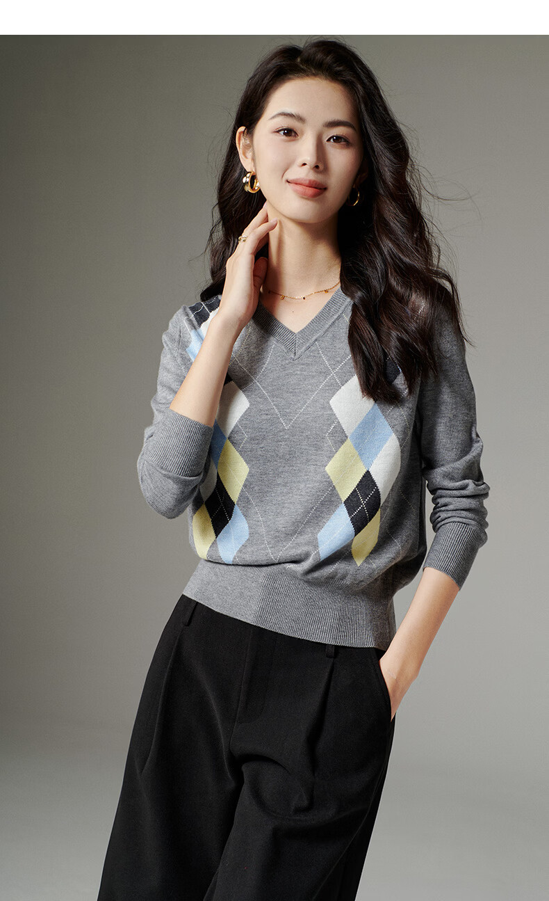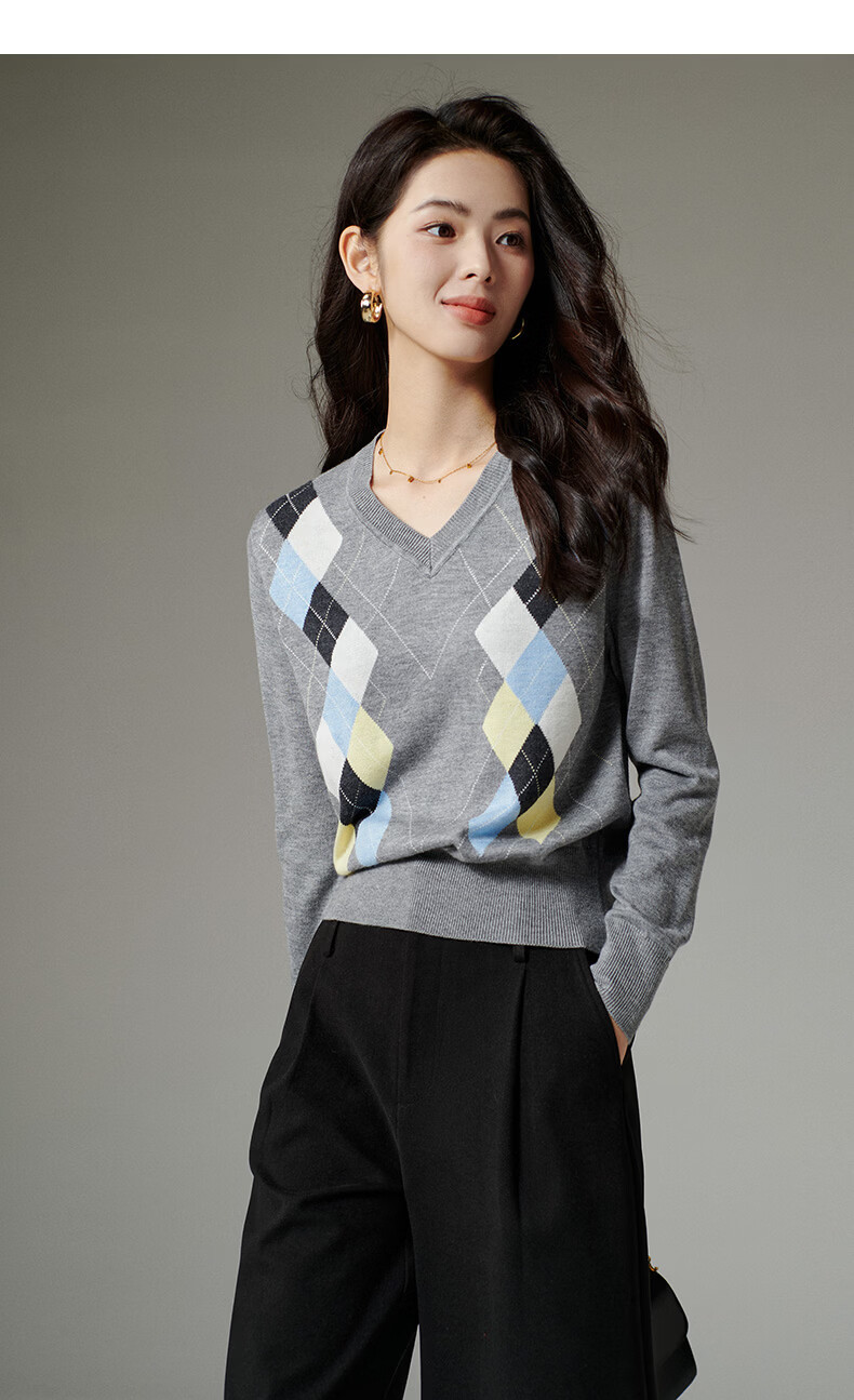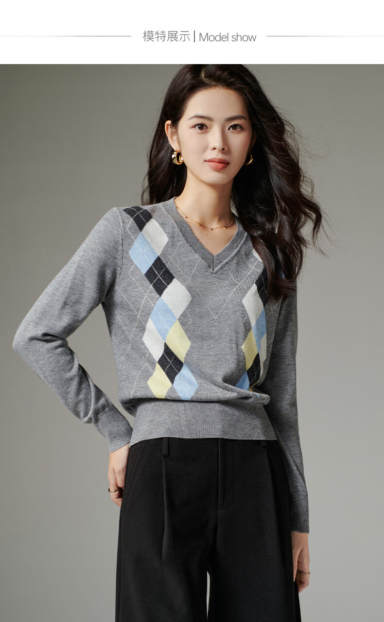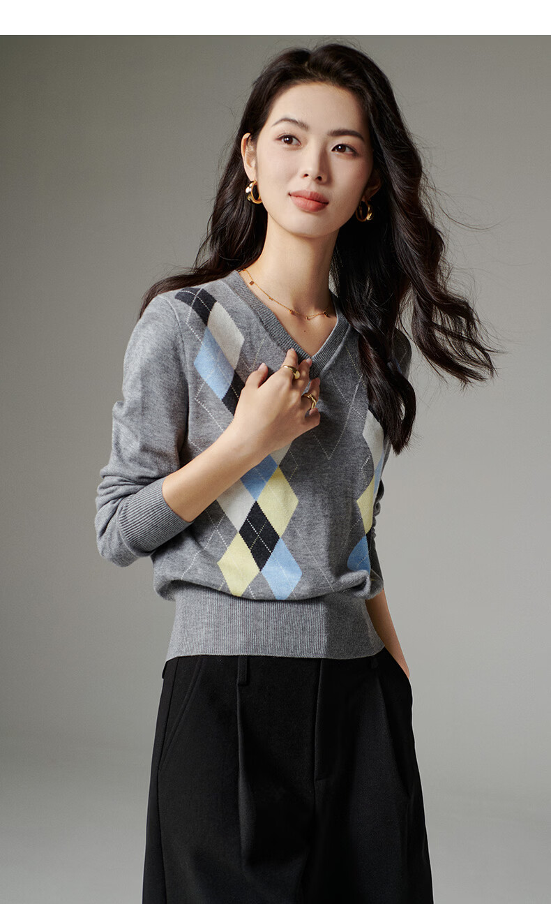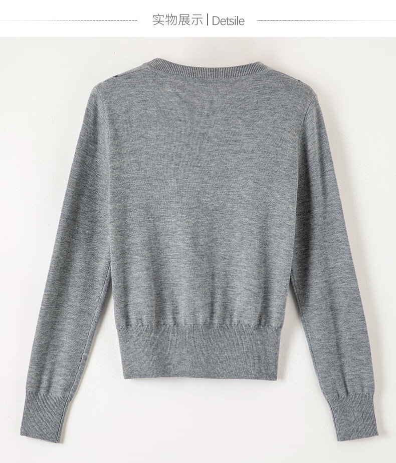 晚白【断码清仓】2026春季今年流行洋气V领修身上衣百搭套头针织衫女 花灰色 M
