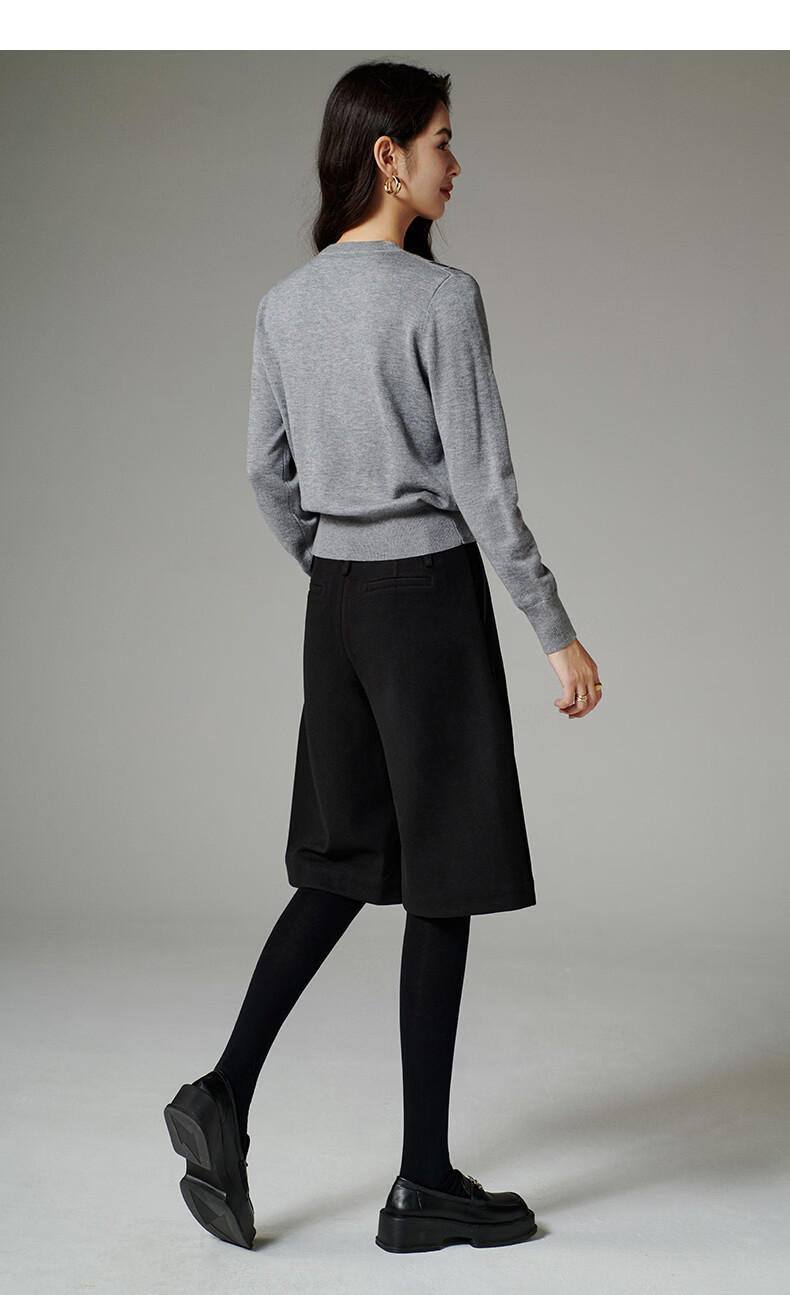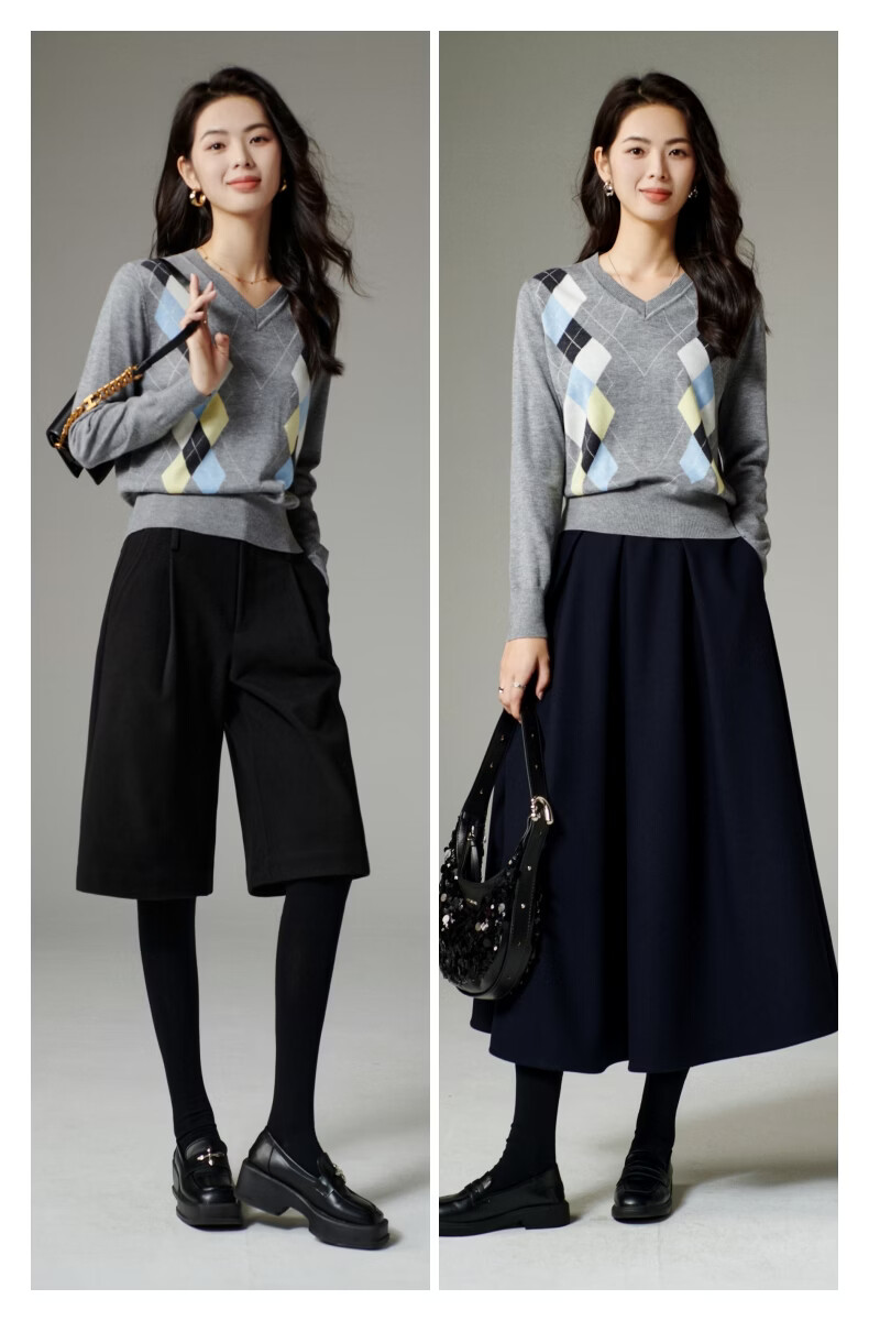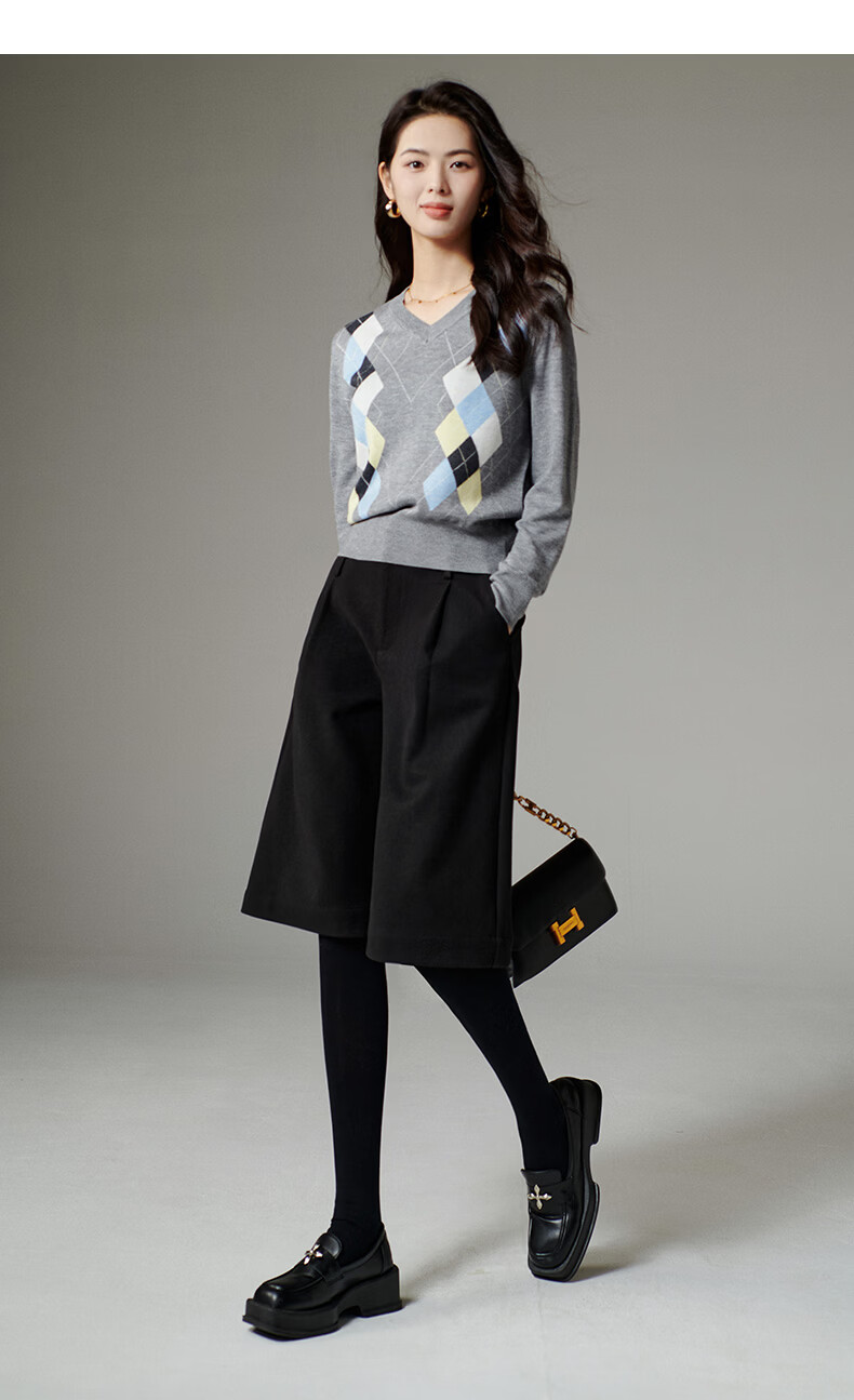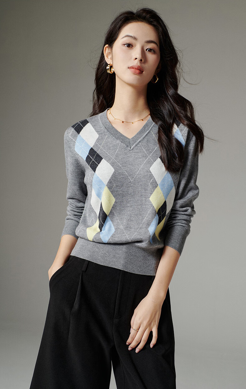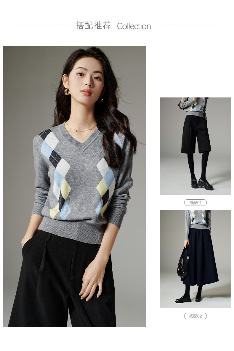 晚白【断码清仓】2026春季今年流行洋气V领修身上衣百搭套头针织衫女 花灰色 M