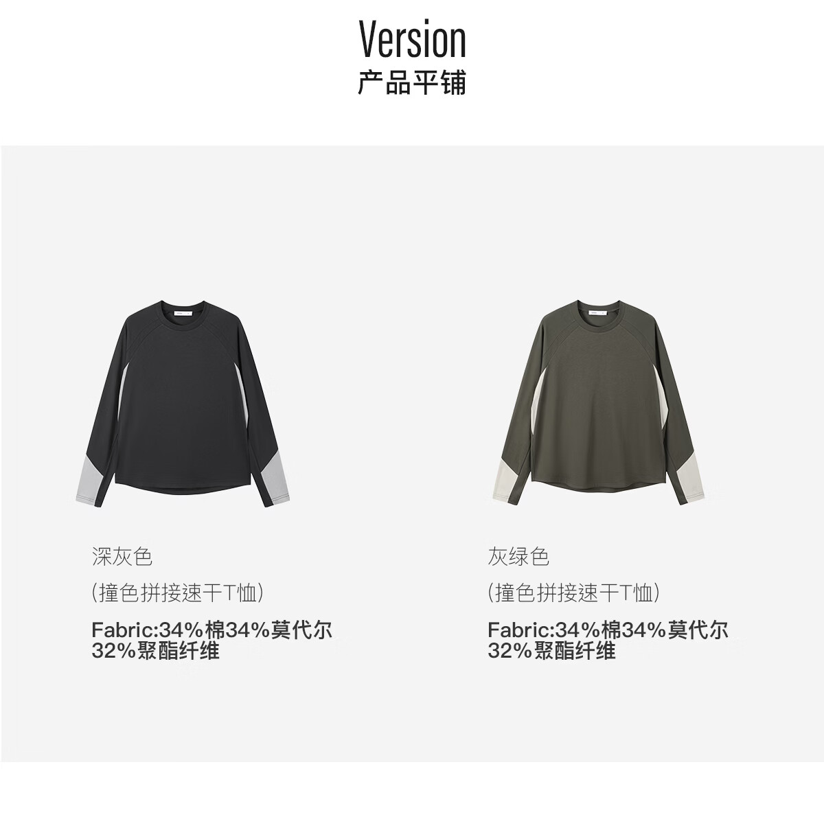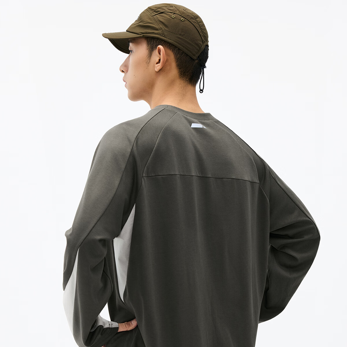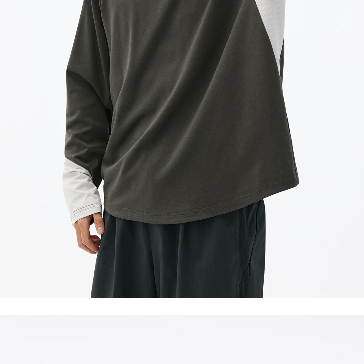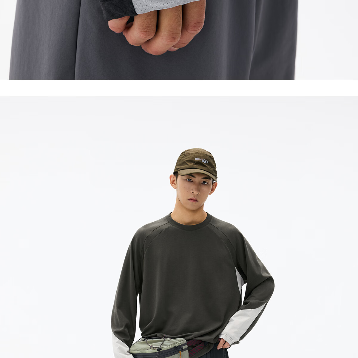 熊猫·本(ben.panda)撞色拼接速干长袖T恤男宽松户外运动上衣2026春季新款 灰绿色 L