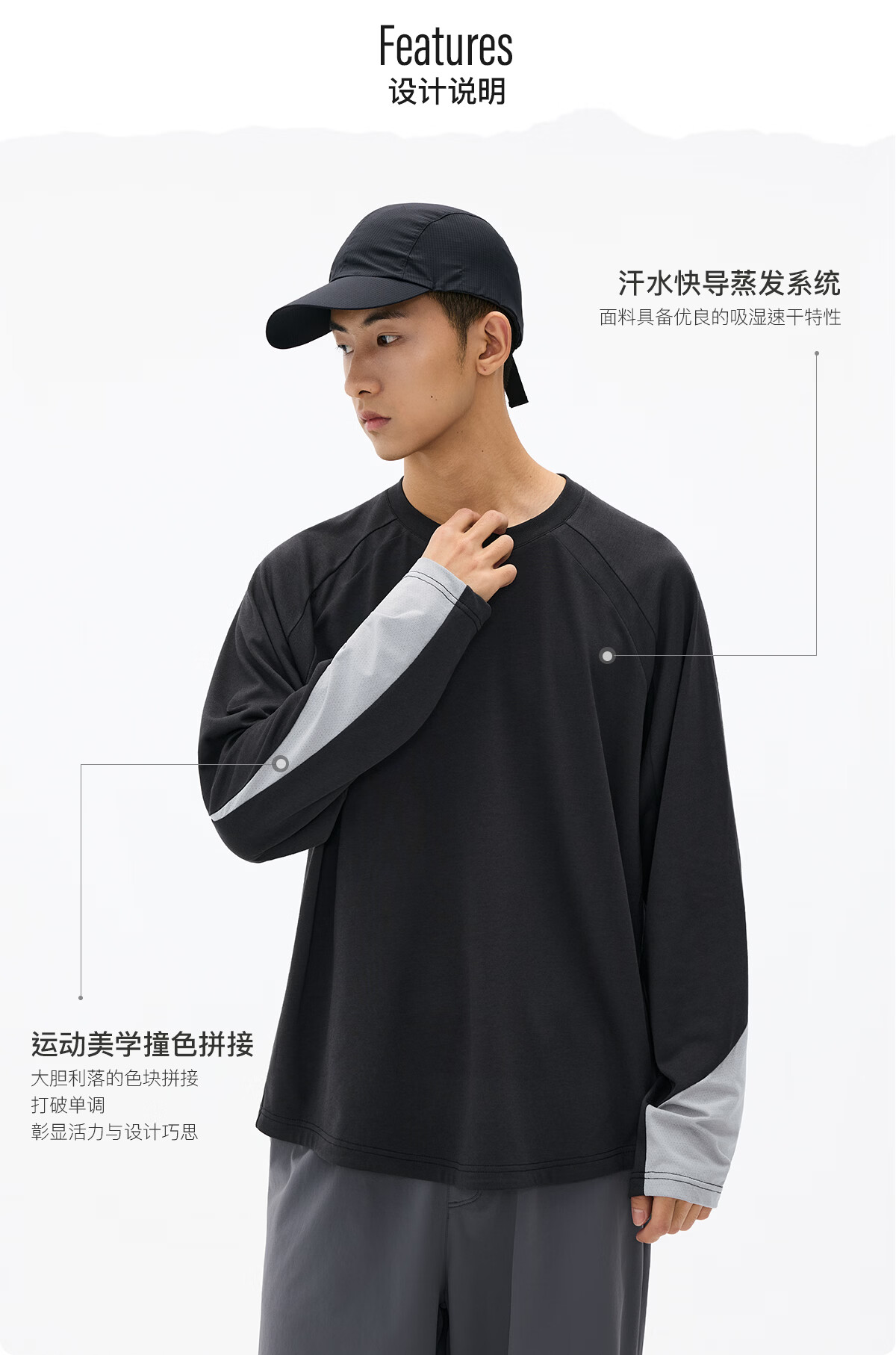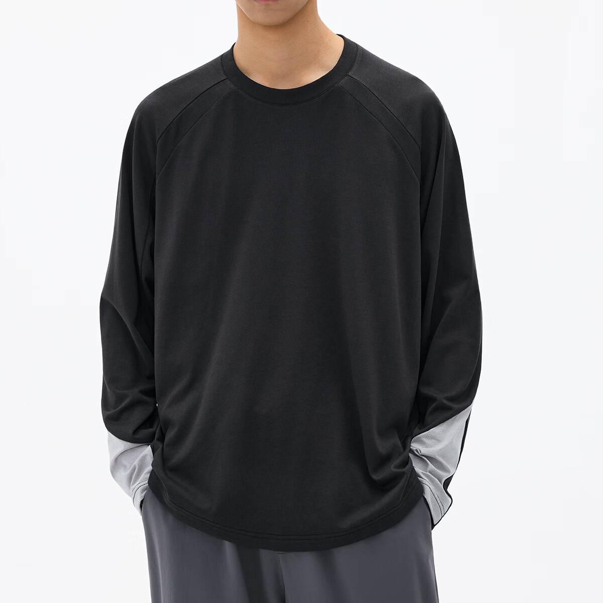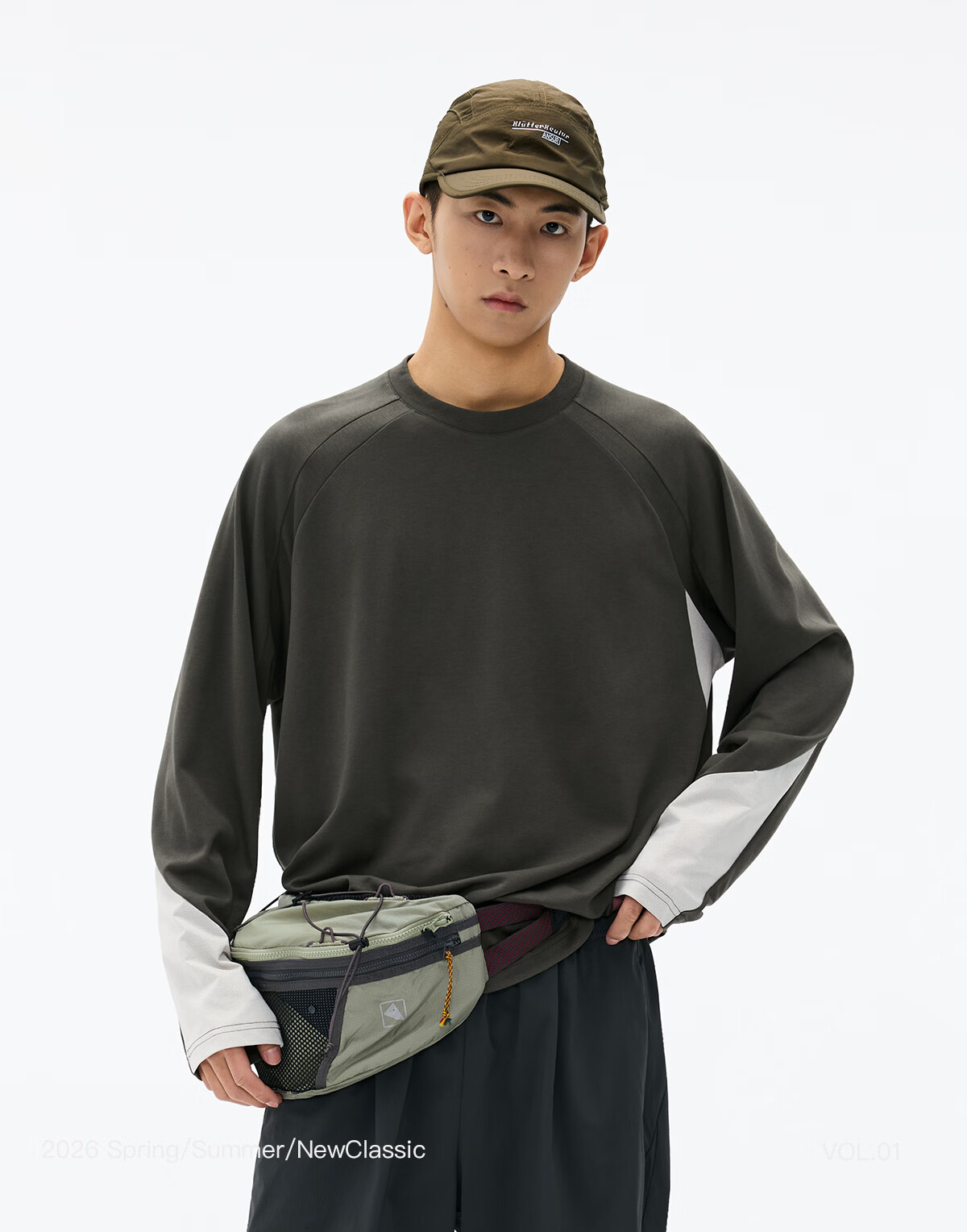 熊猫·本(ben.panda)撞色拼接速干长袖T恤男宽松户外运动上衣2026春季新款 灰绿色 L