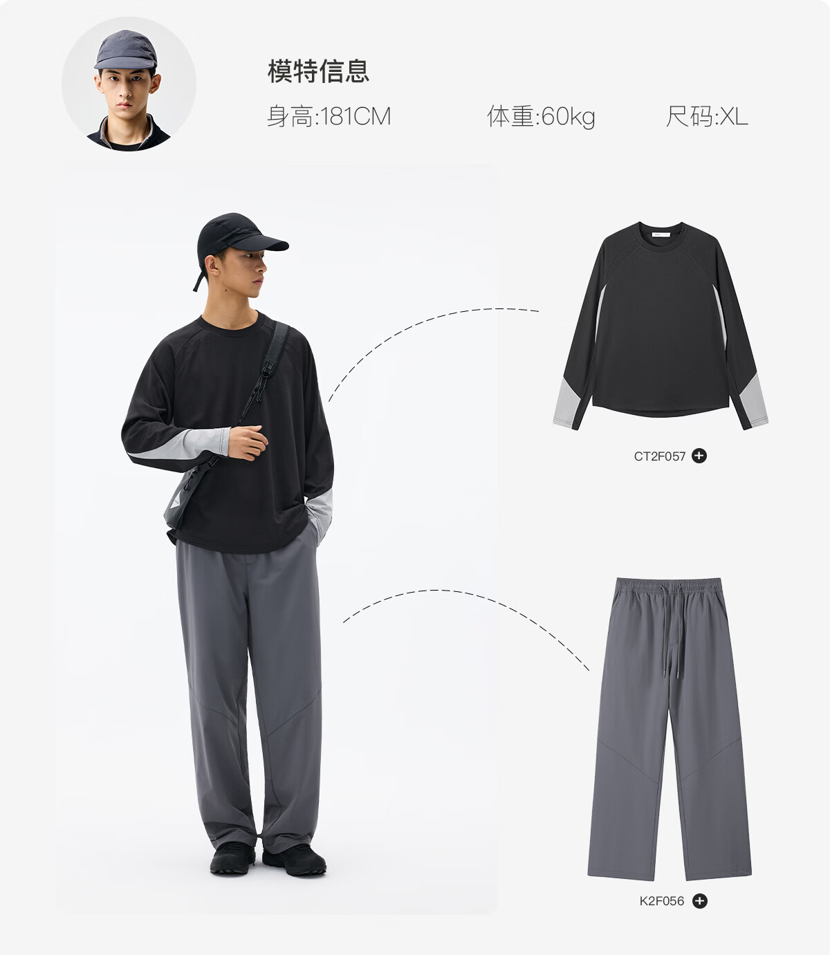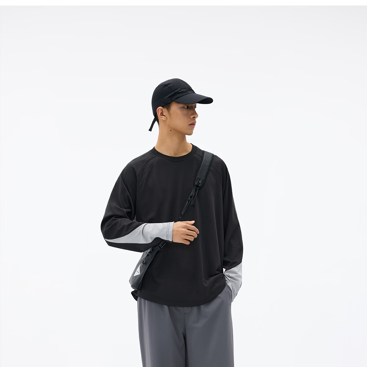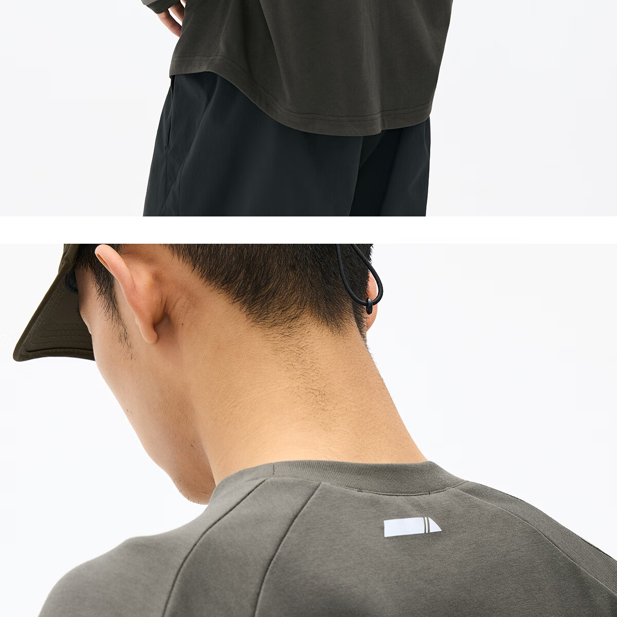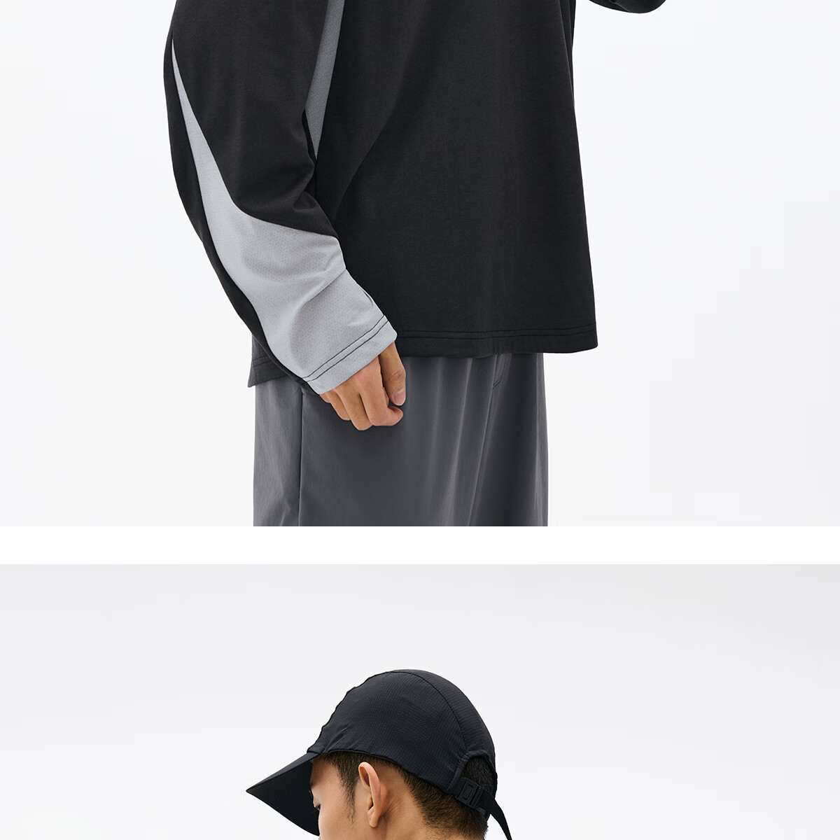 熊猫·本(ben.panda)撞色拼接速干长袖T恤男宽松户外运动上衣2026春季新款 灰绿色 L