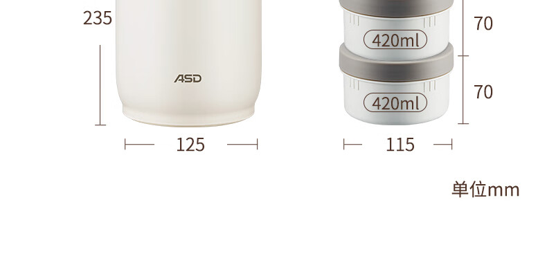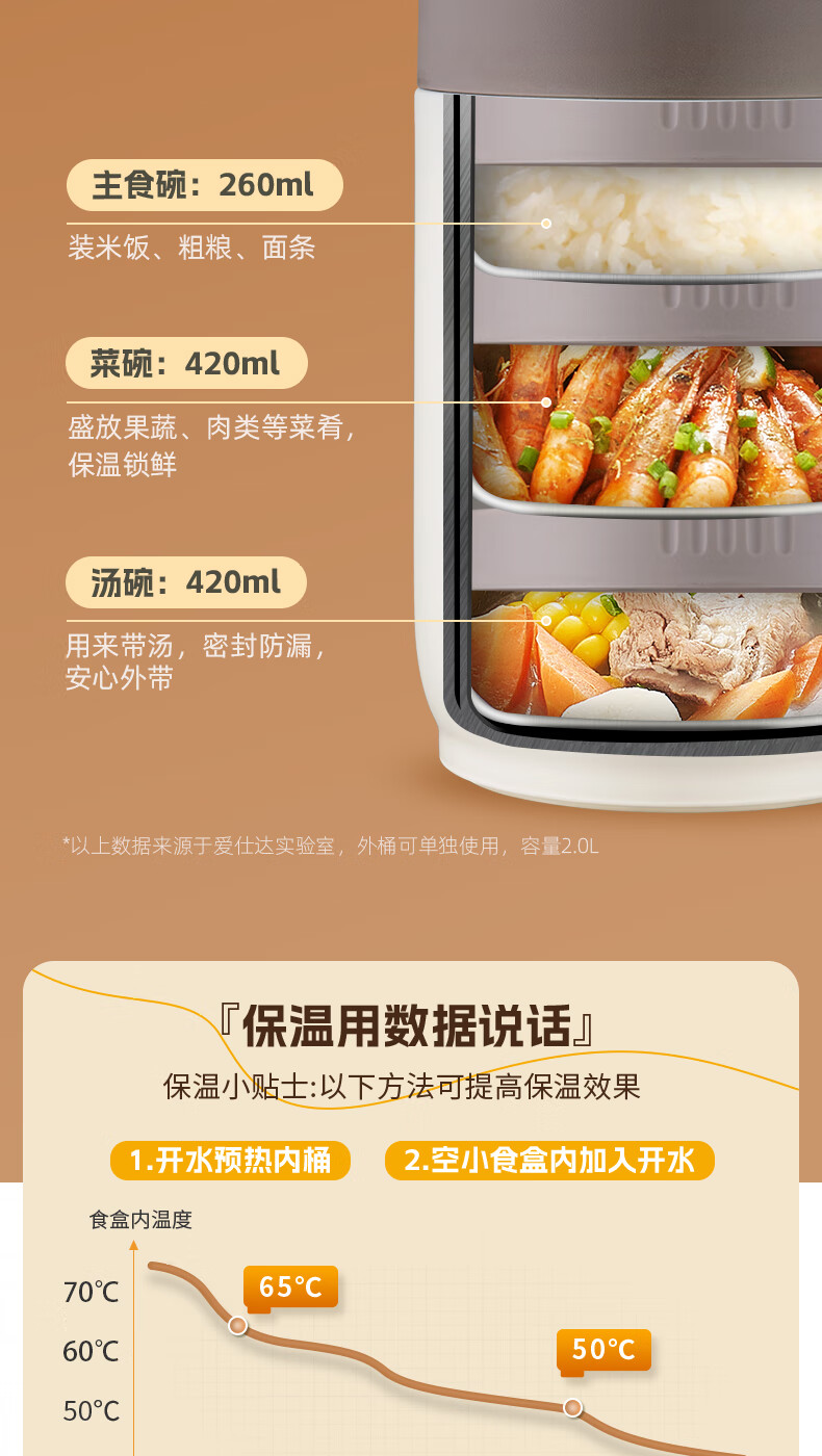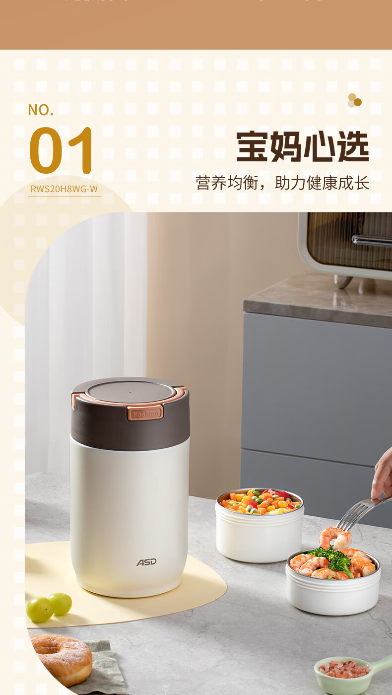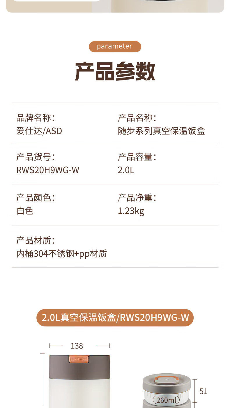 爱仕达(ASD)饭盒304不锈钢保温饭盒提锅学生保温桶 RWS20H9WG-W