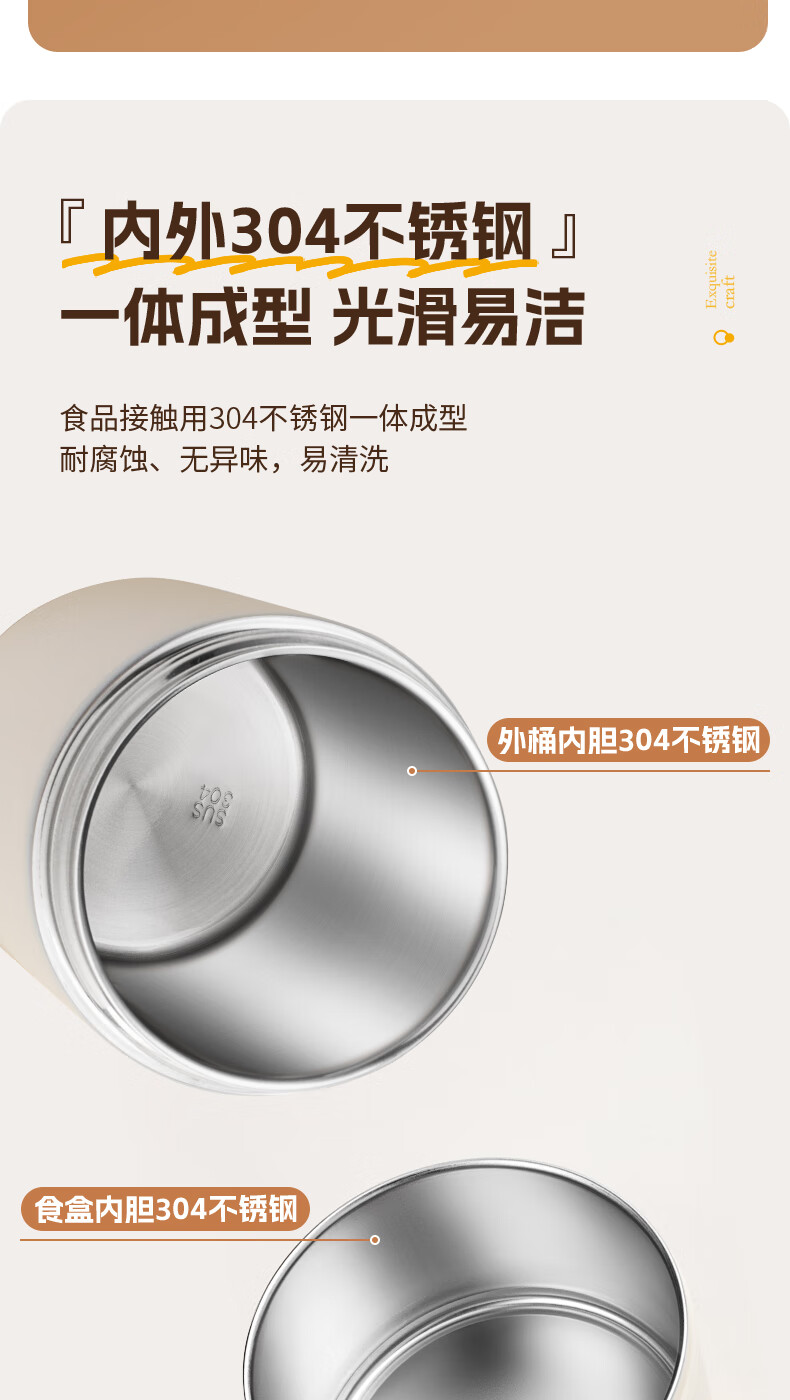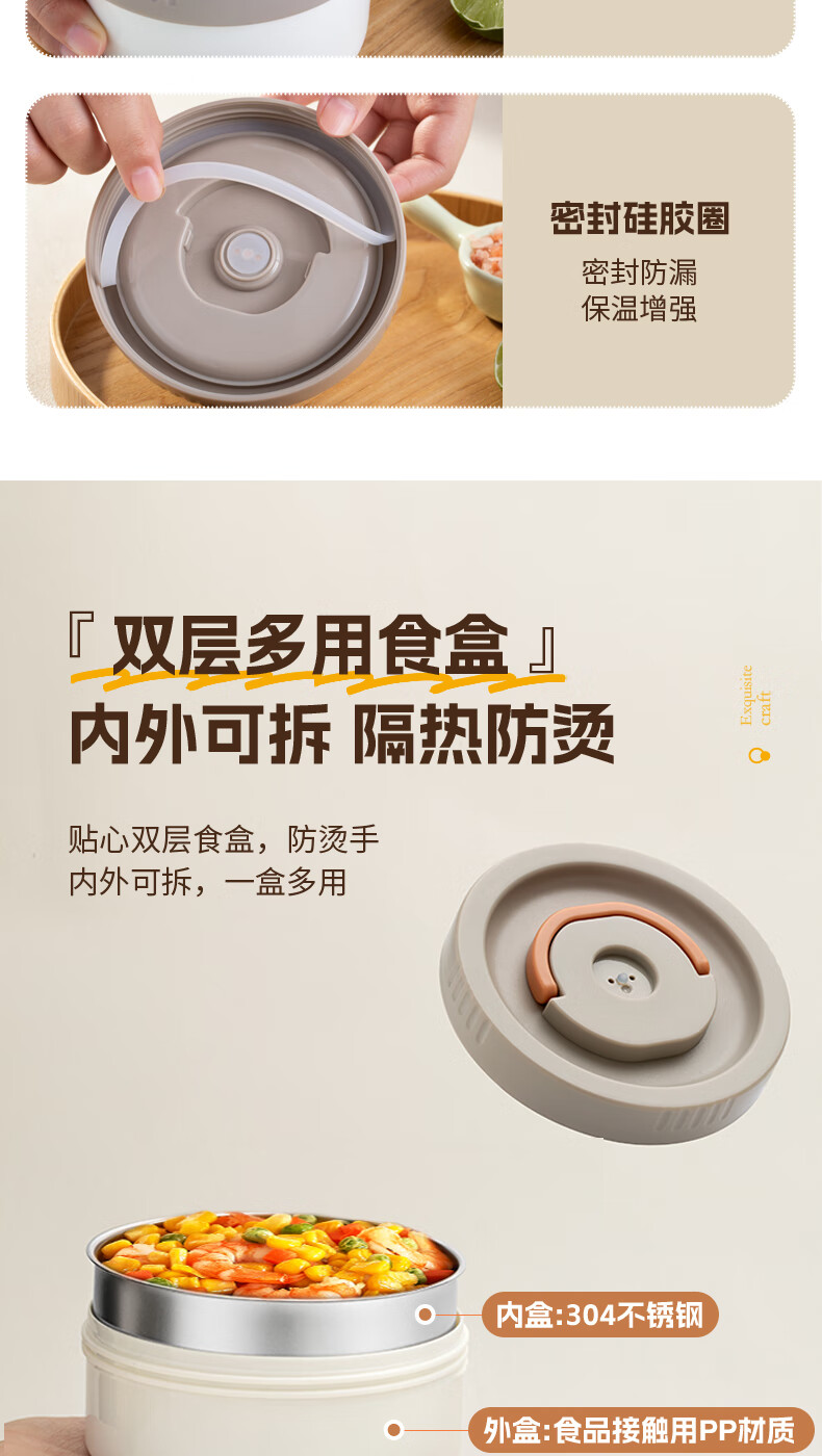 小熊(Bear)保温饭盒316不锈钢上班族可微波炉保温桶学生便当盒CX-JW075-P04