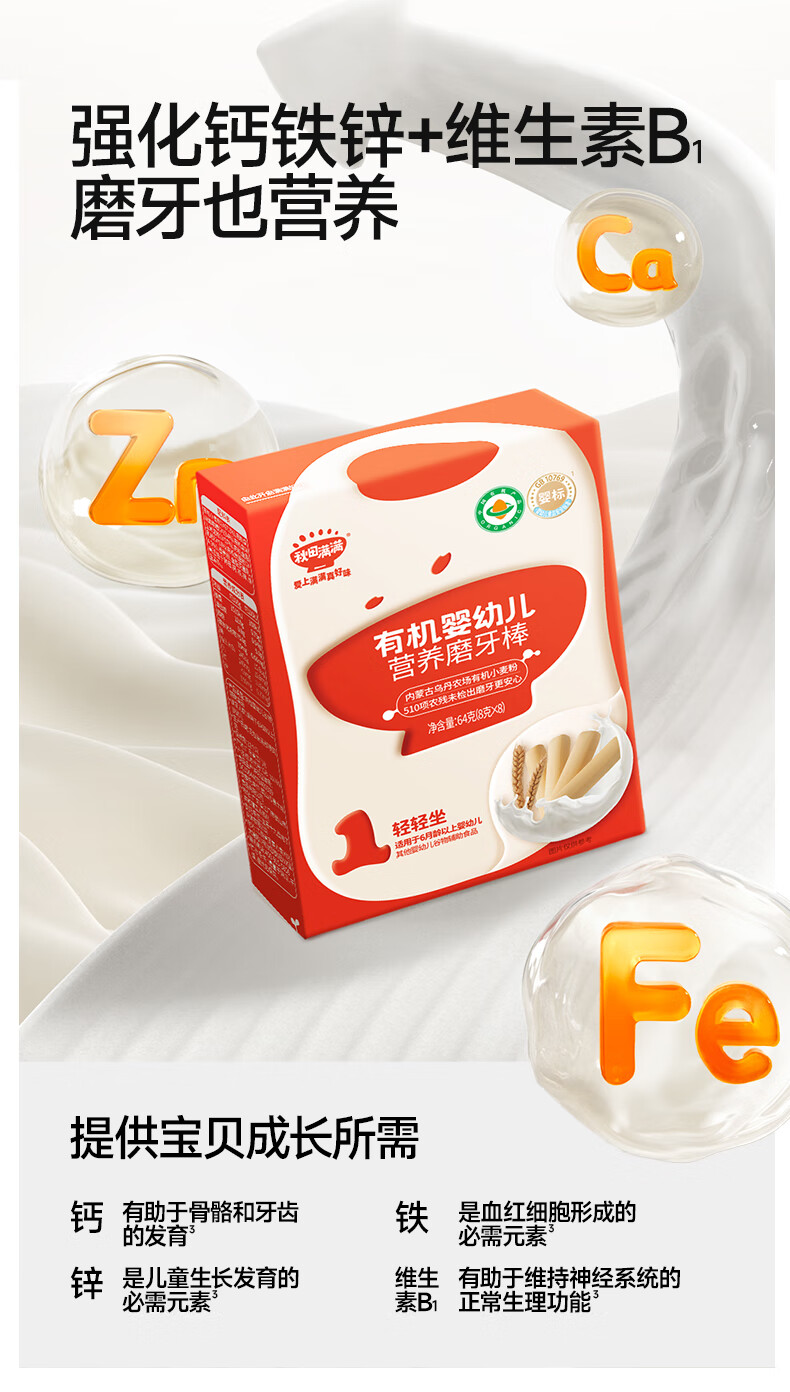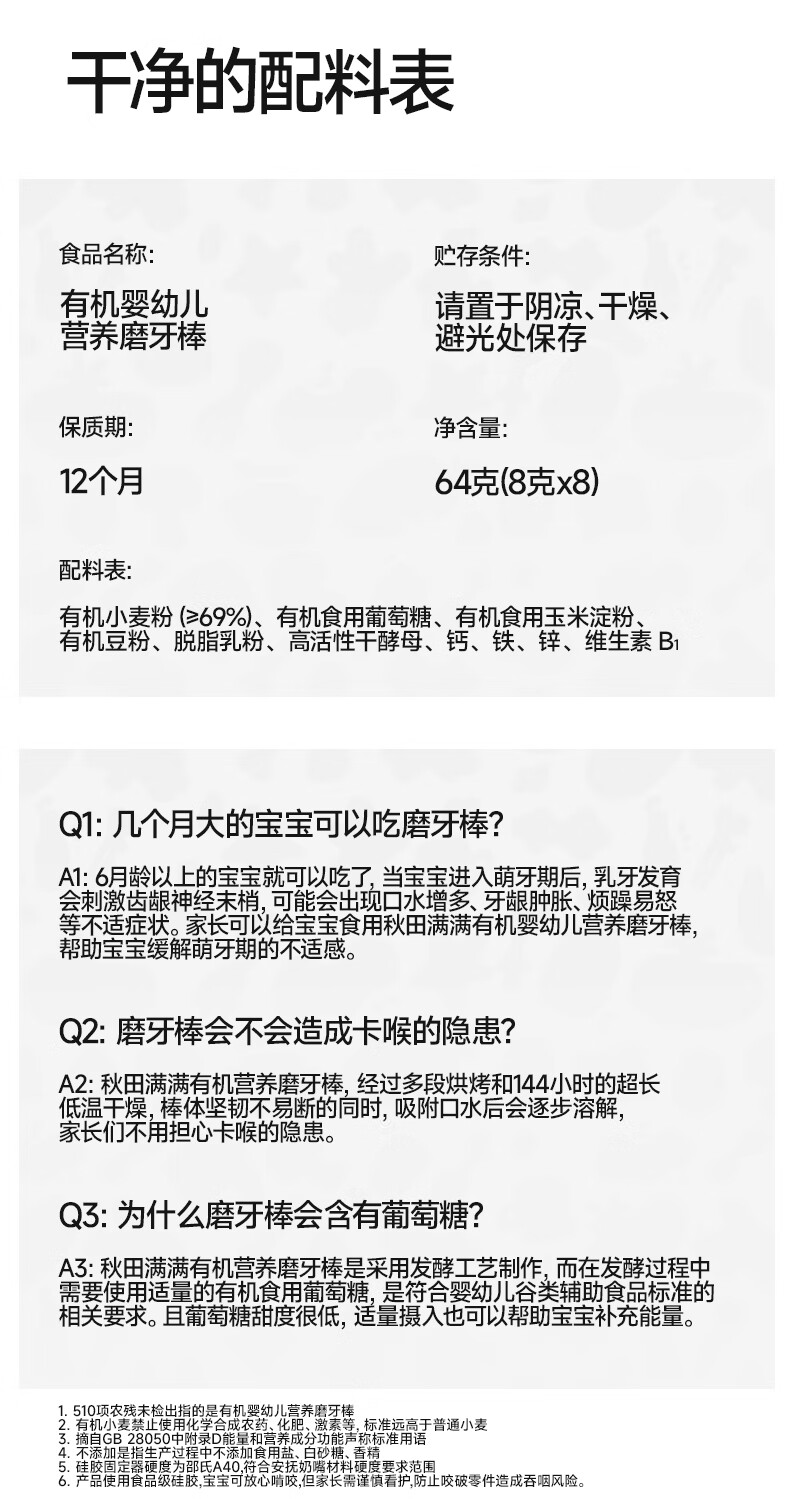秋田满满有机婴幼儿营养磨牙棒 宝宝零食饼干 婴幼儿炭烧棒饼干儿童零食 婴幼儿炭烧棒饼干130g