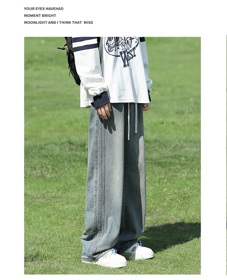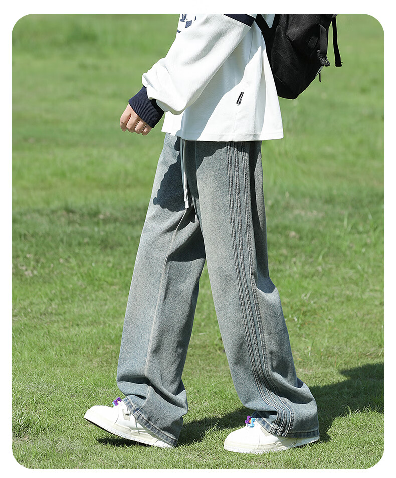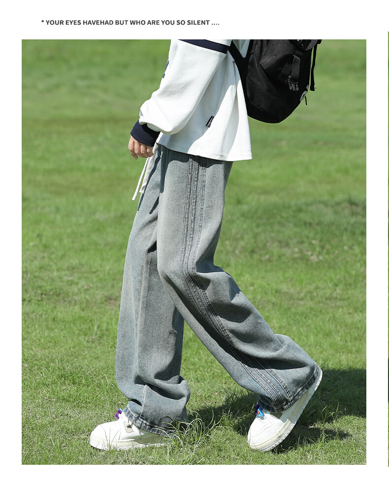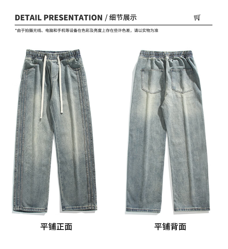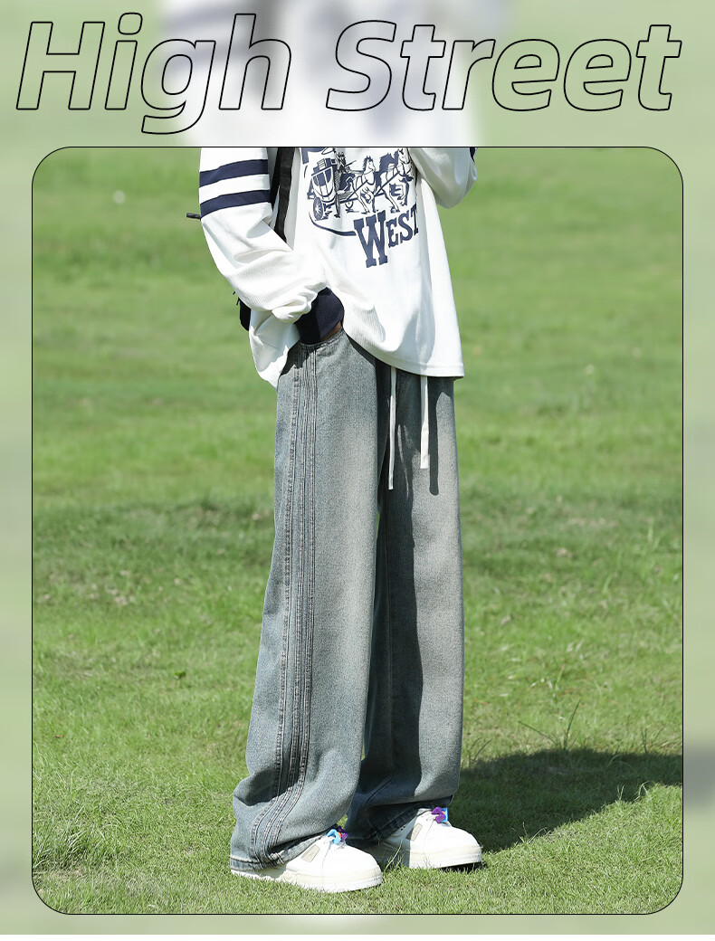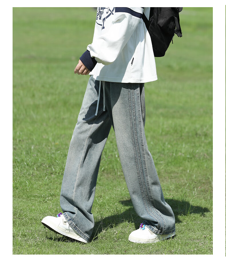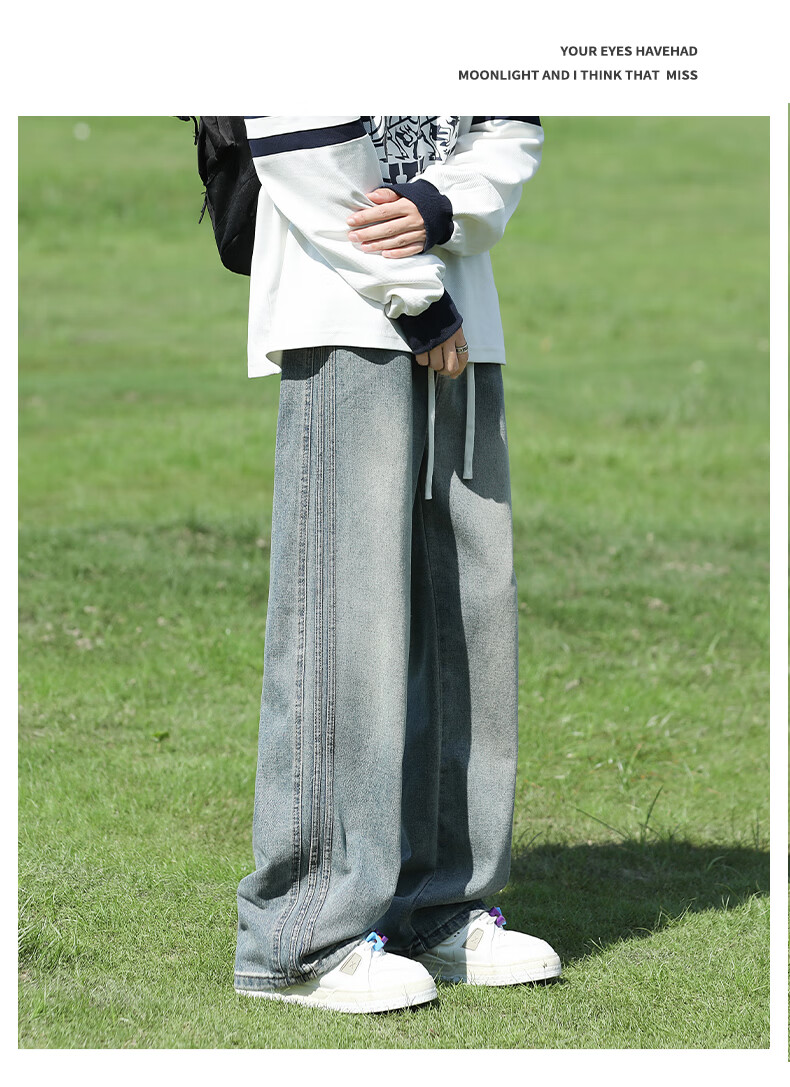 真维斯复古牛仔裤男秋季水洗美式高街新款潮牌宽松直筒青少年长裤子男生 蓝色 M