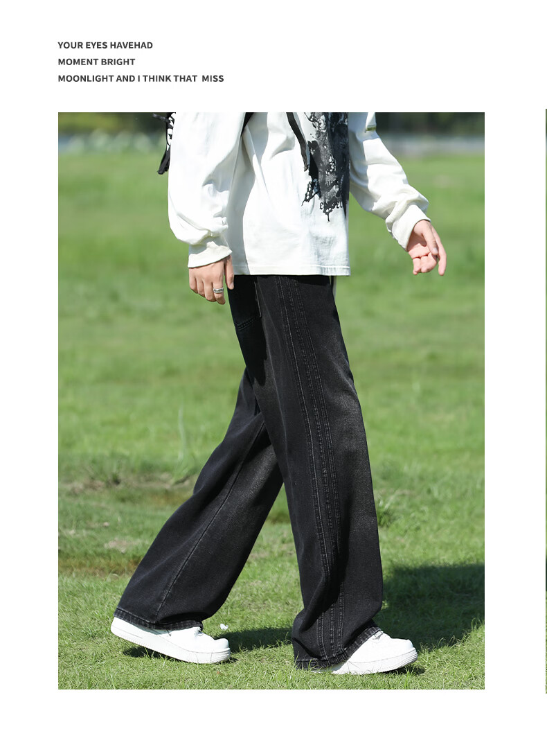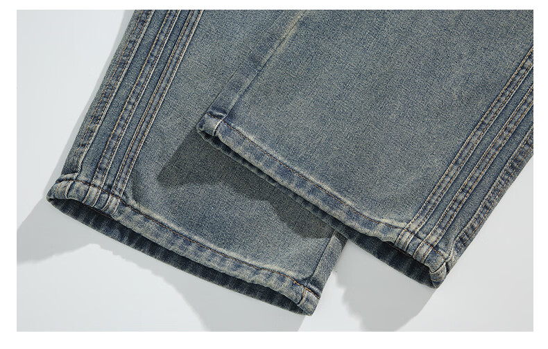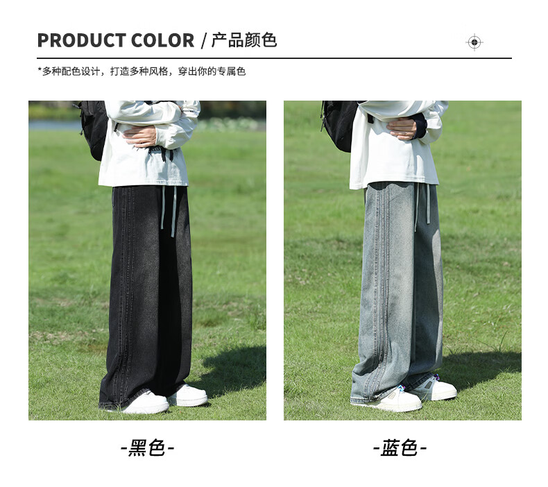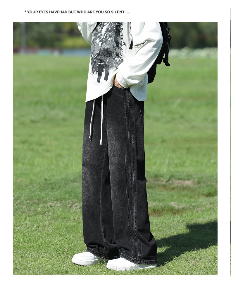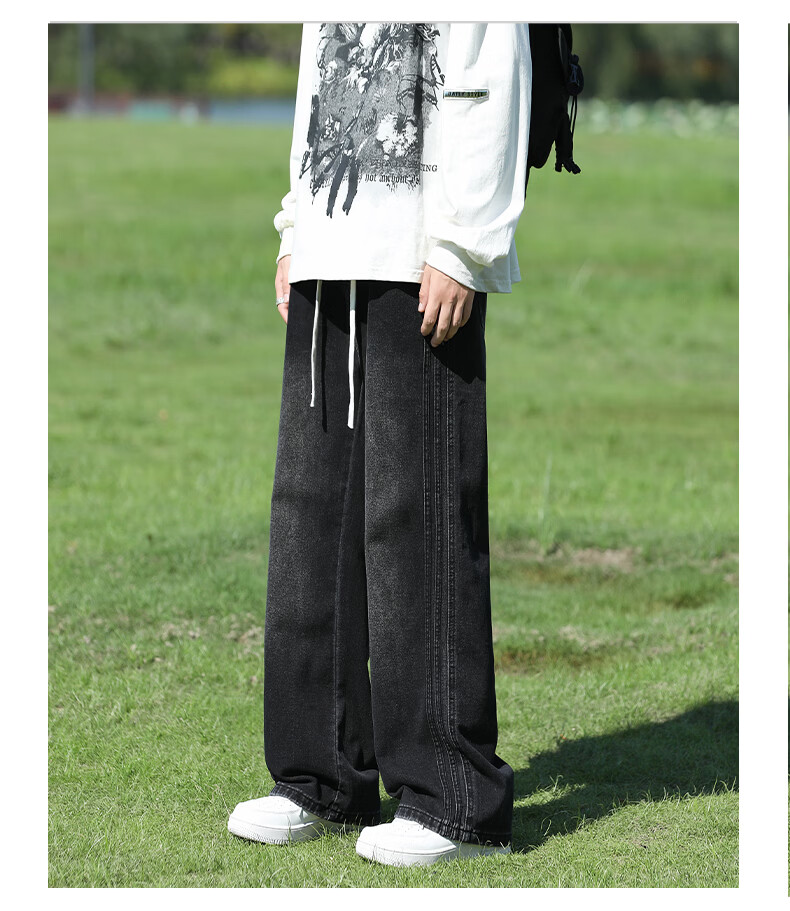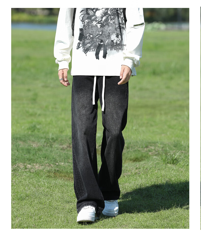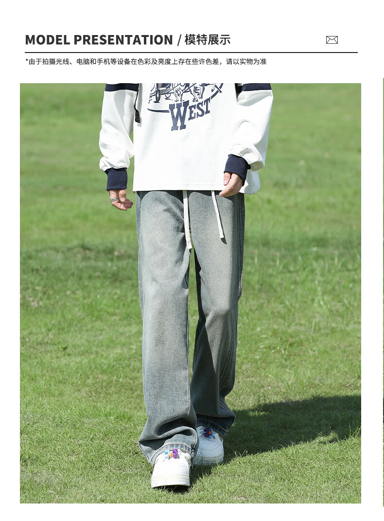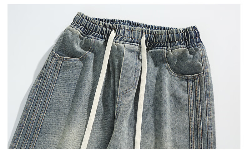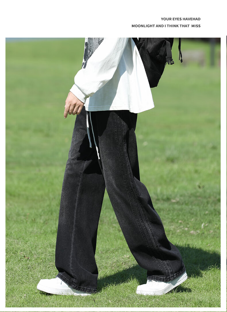 真维斯复古牛仔裤男秋季水洗美式高街新款潮牌宽松直筒青少年长裤子男生 蓝色 M