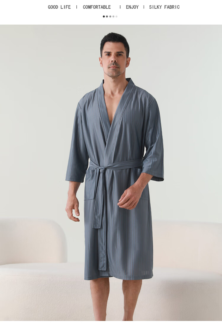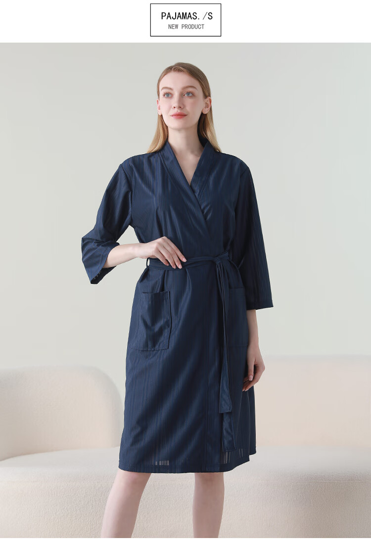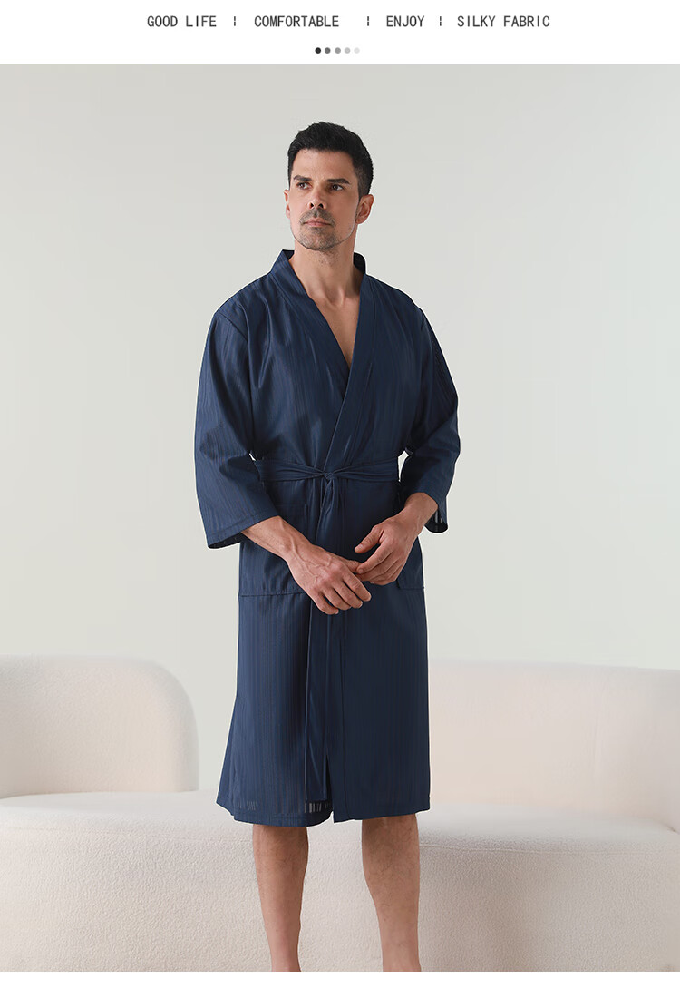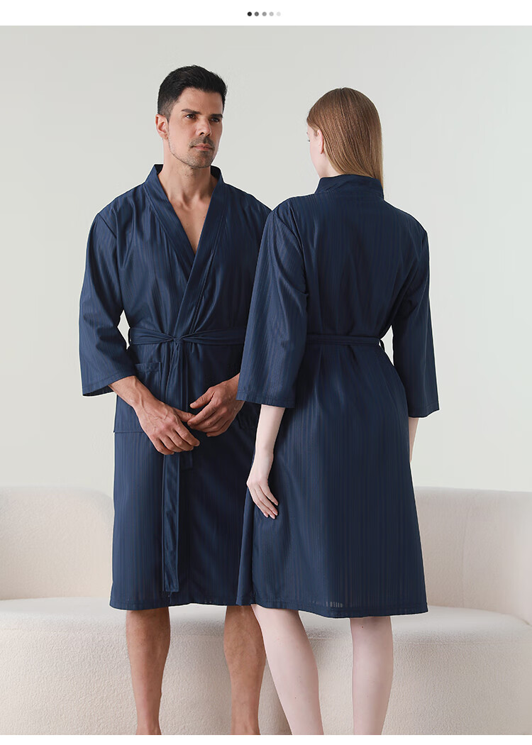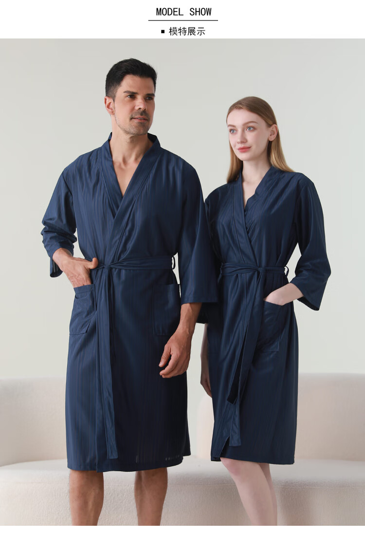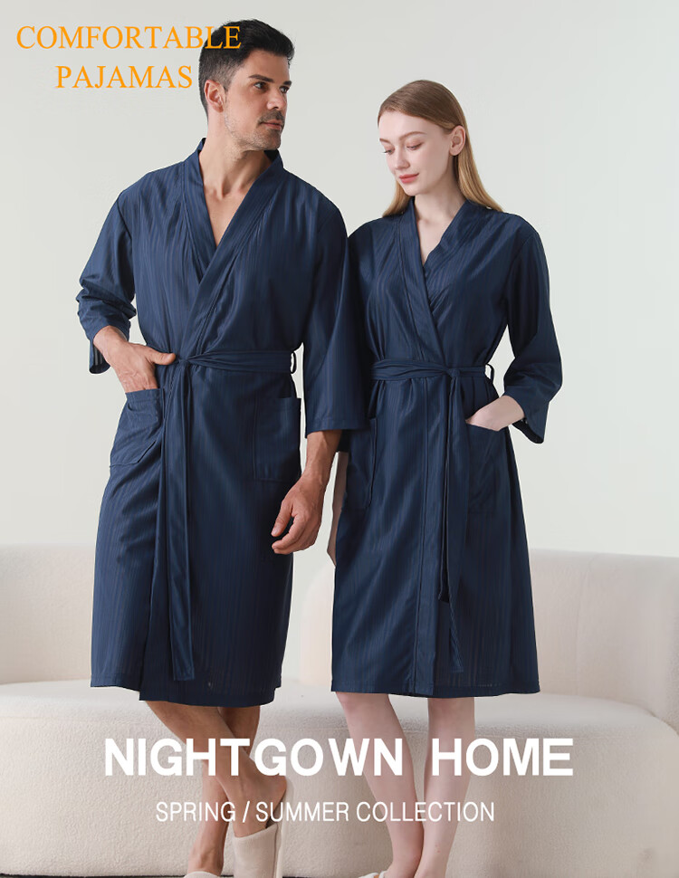 赛图蒙 情侣睡袍女春夏季凉感丝男士浴袍浴衣薄款睡衣家居服 2304藏青【男款】 M (150-160CM,80-125斤)