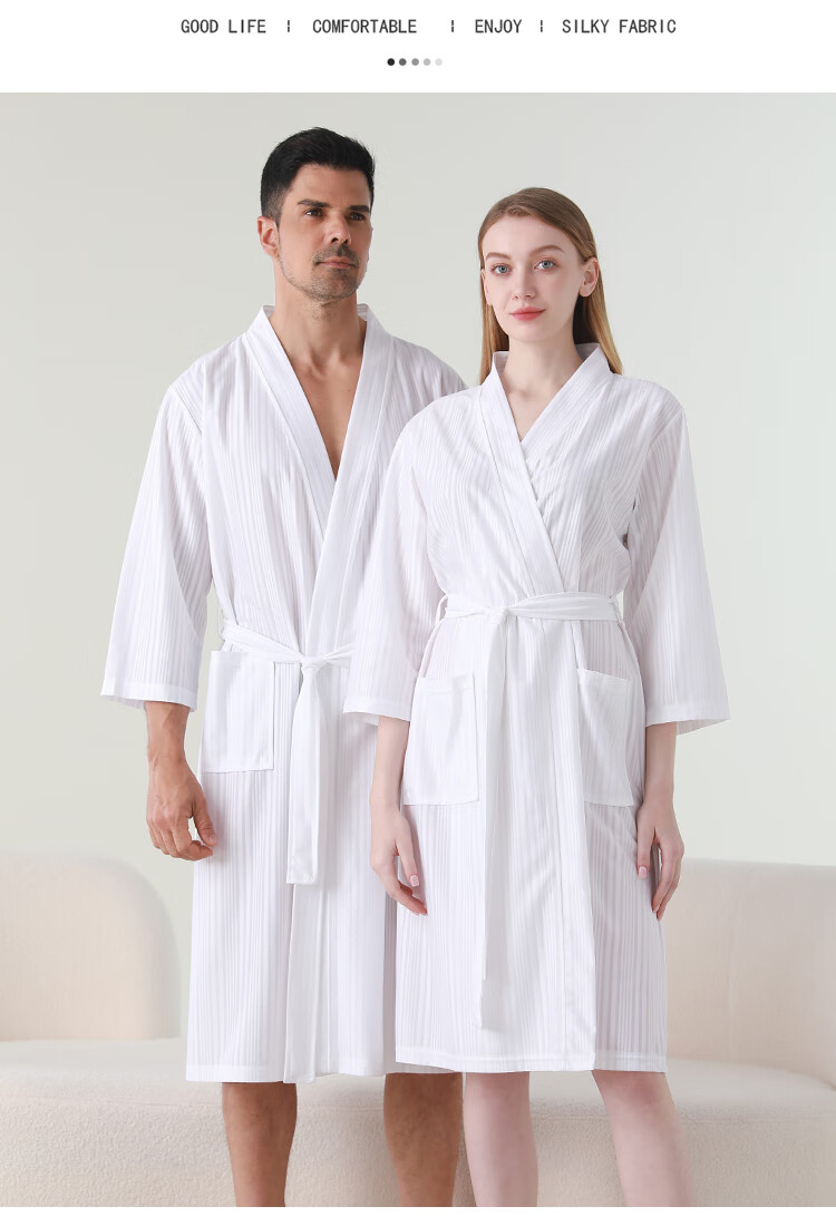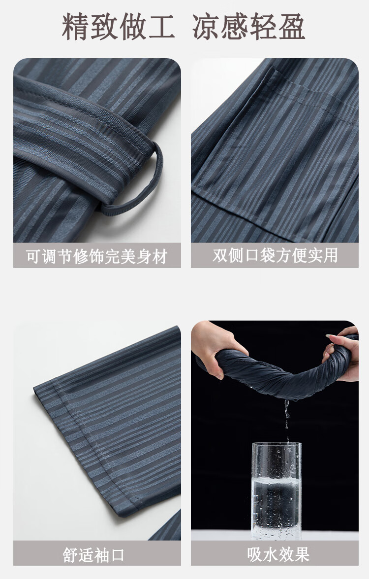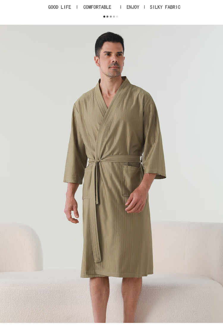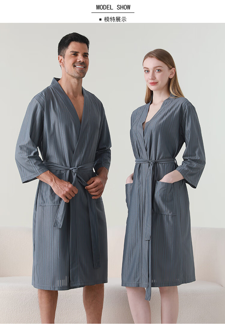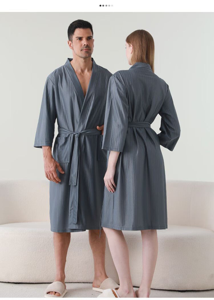 赛图蒙 情侣睡袍女春夏季凉感丝男士浴袍浴衣薄款睡衣家居服 2304藏青【男款】 M (150-160CM,80-125斤)