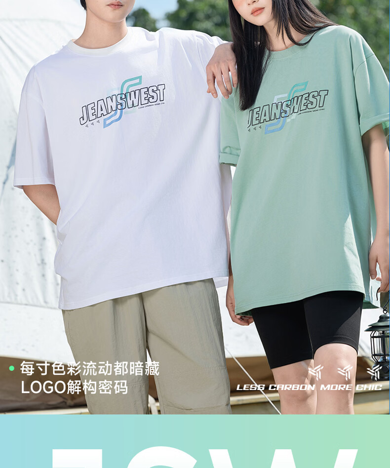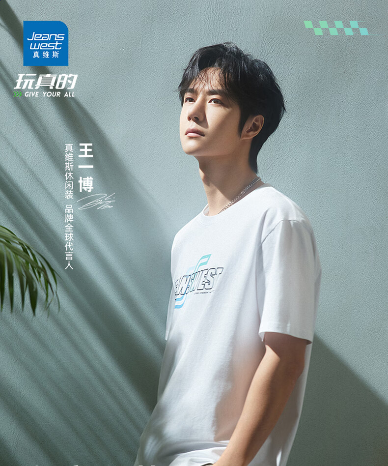 真维斯(Jeanswest)代言人王一博同款短袖T恤男2026夏季新款字母印花休闲体恤25PD72 白 M