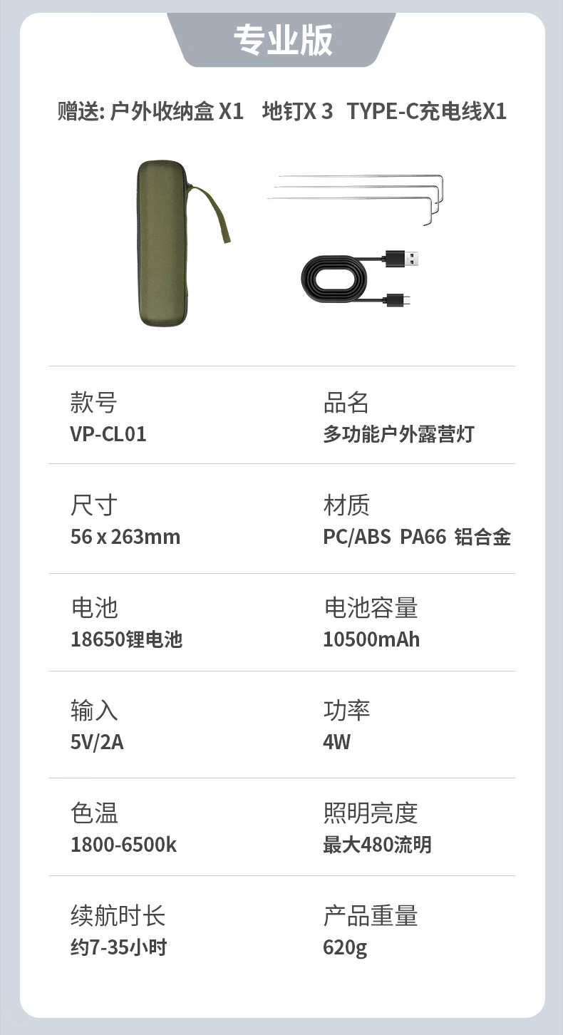 岚野星塔伸缩灯户外露营灯营地灯氛围手电筒照明灯应急灯野营灯探照灯 【一步到位】专业版 军绿丨10500mAh【地钉*3+收纳盒】