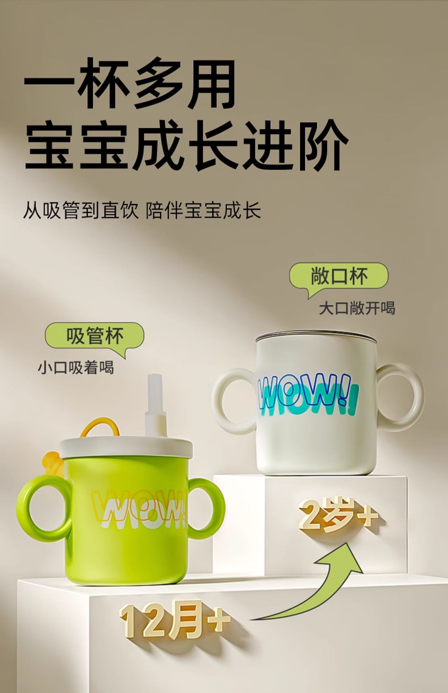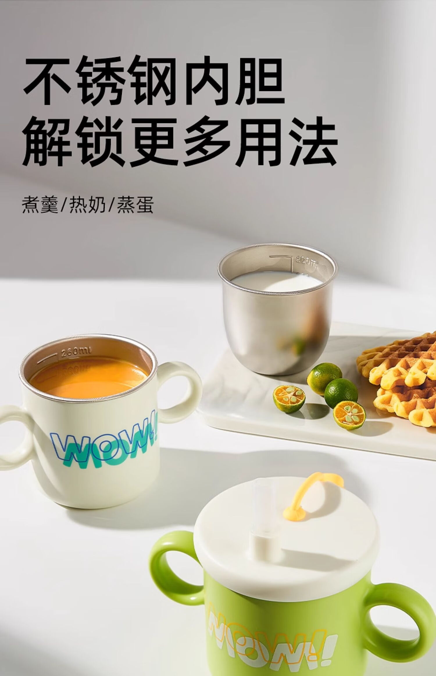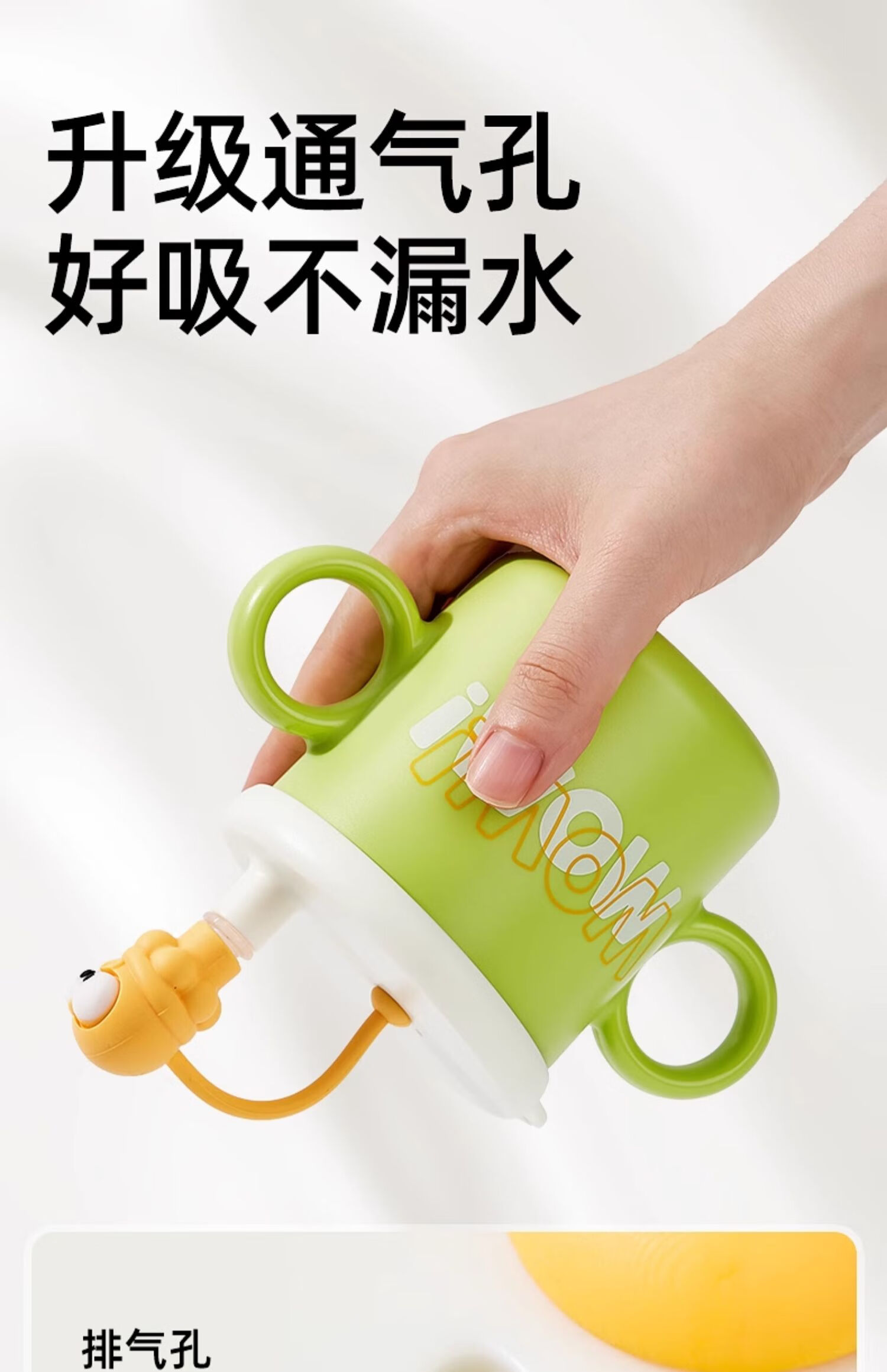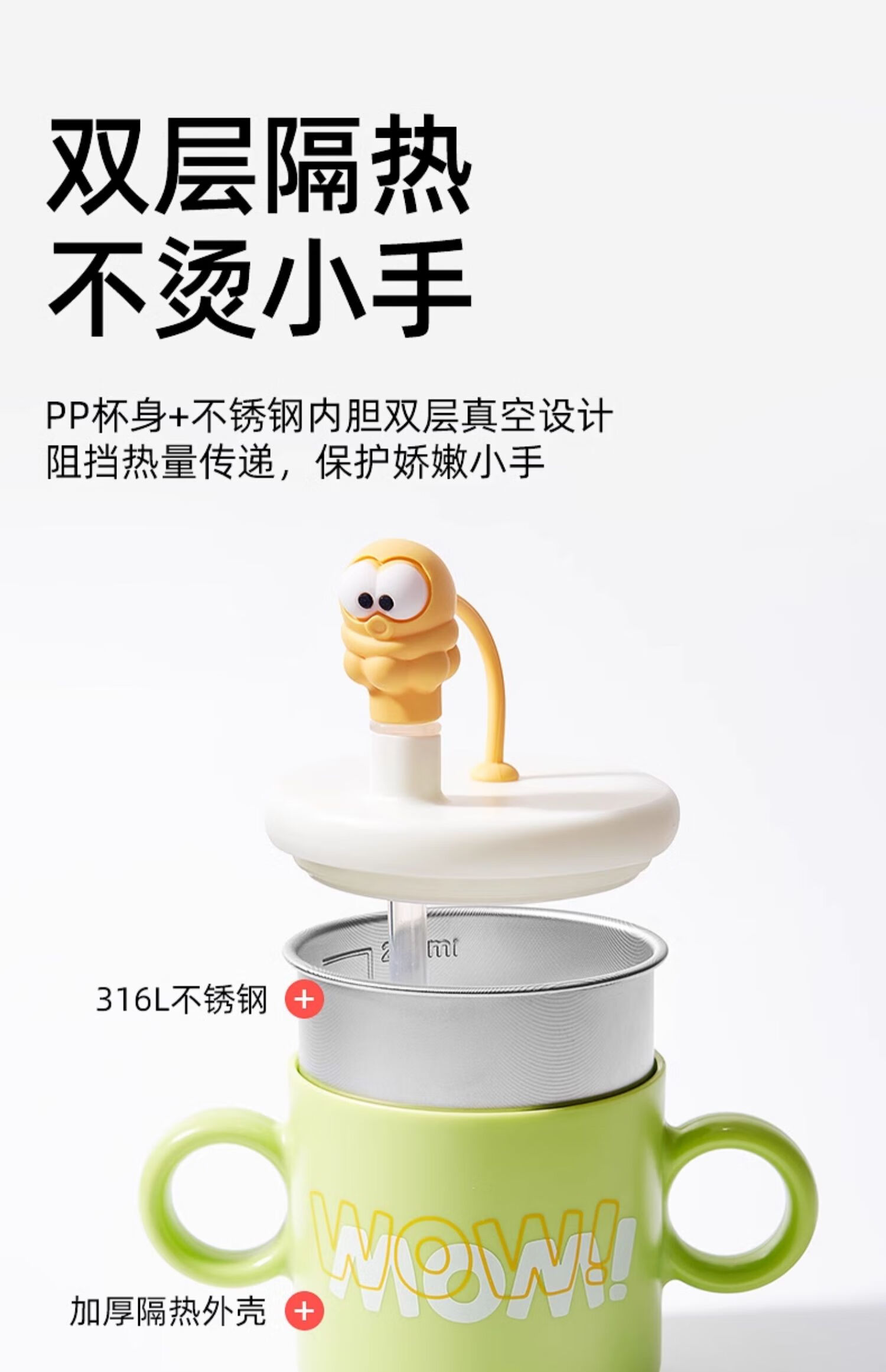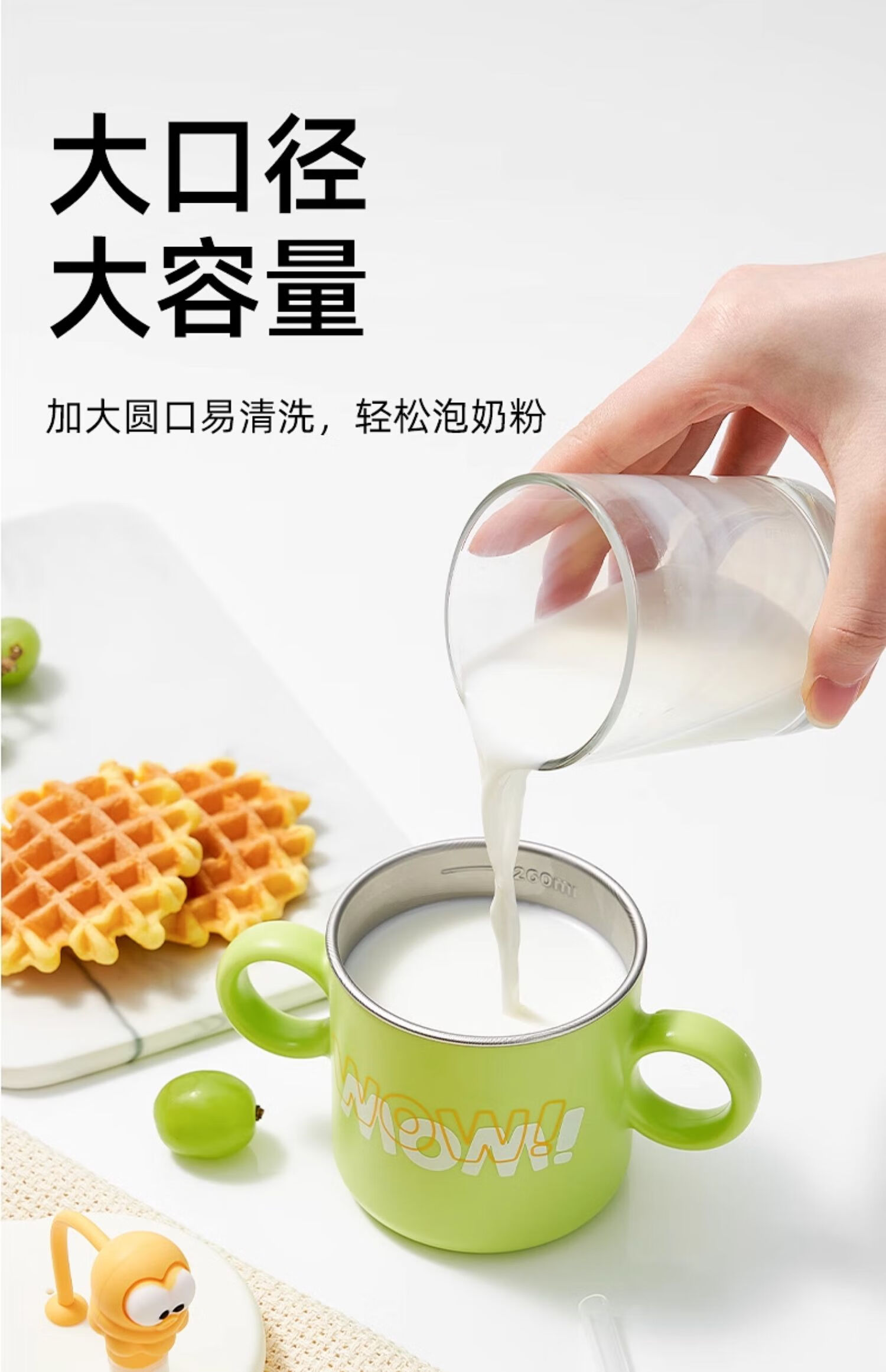 樱舒儿童水杯牛奶杯不锈带钢刻度吸管保温杯宝宝家用喝奶学饮水杯 【316L材质】青芥绿双层保温