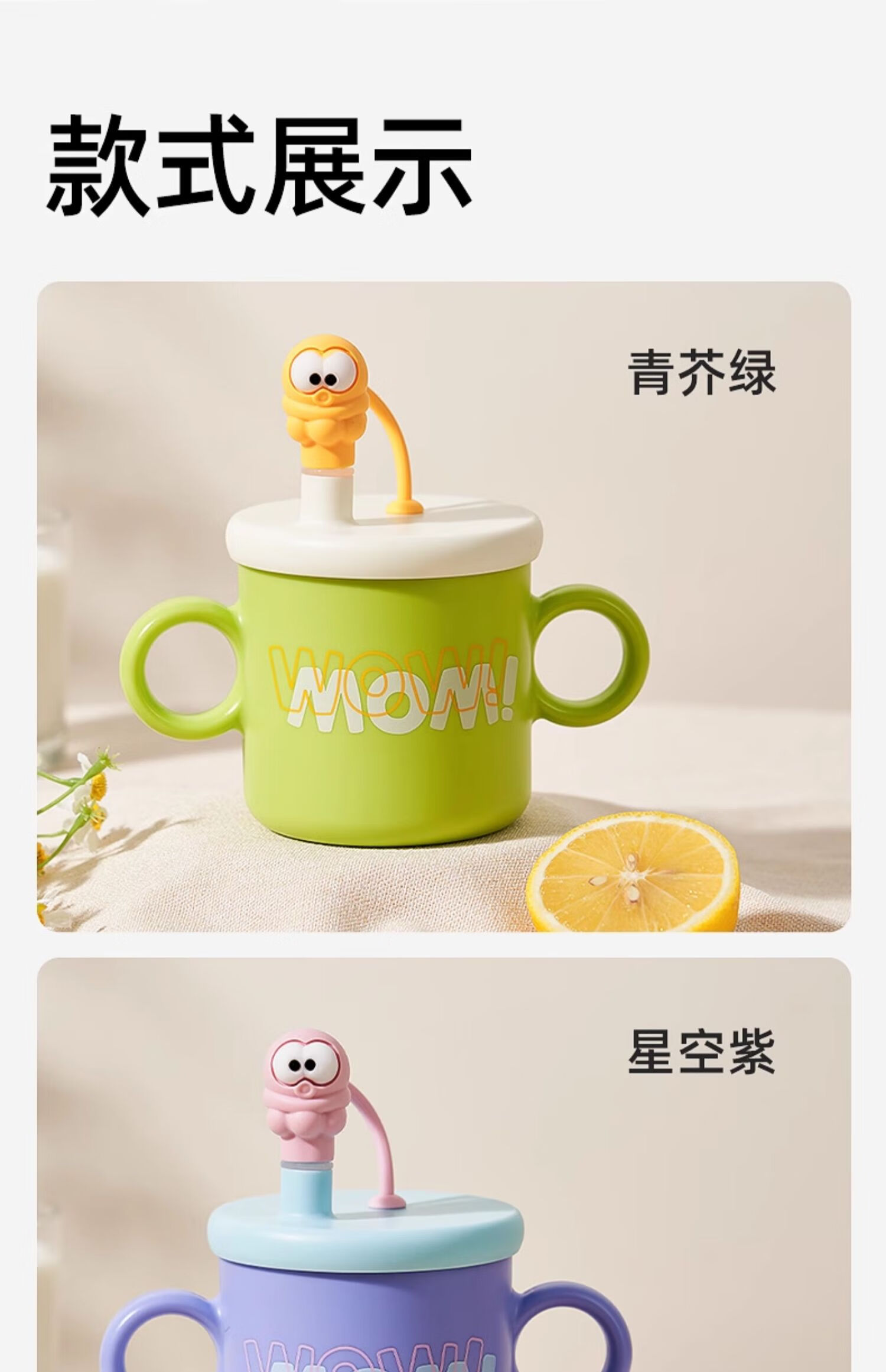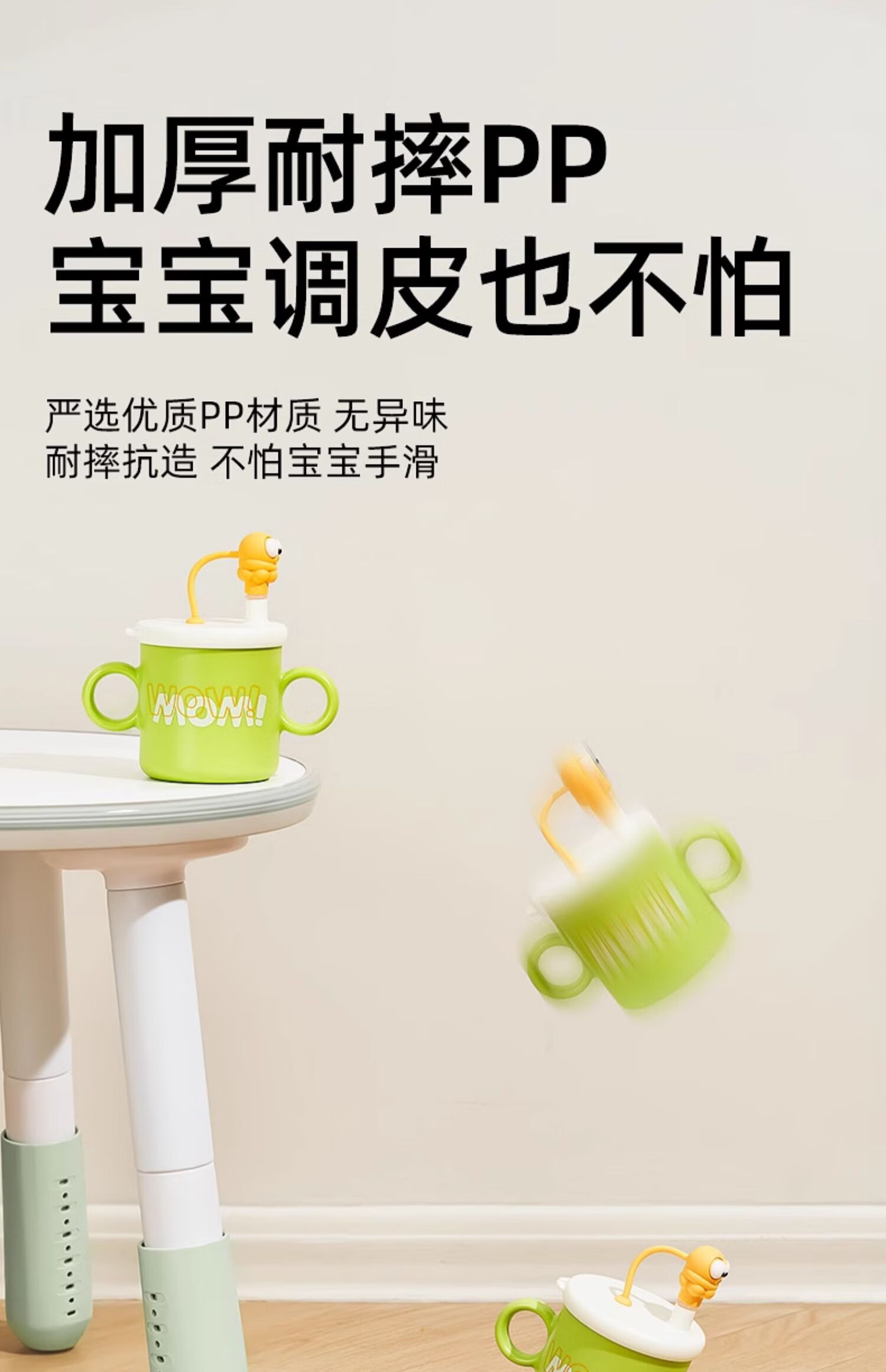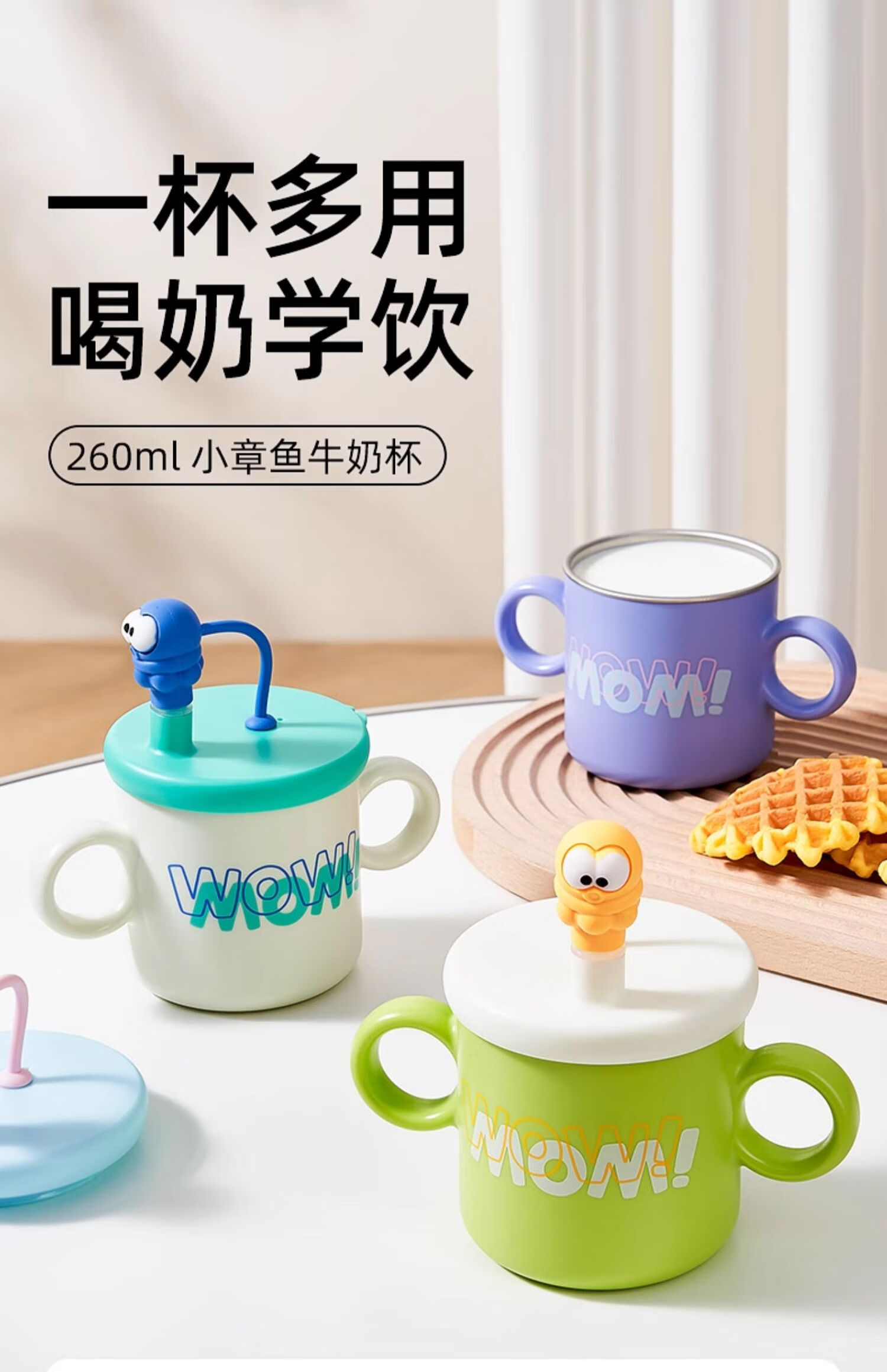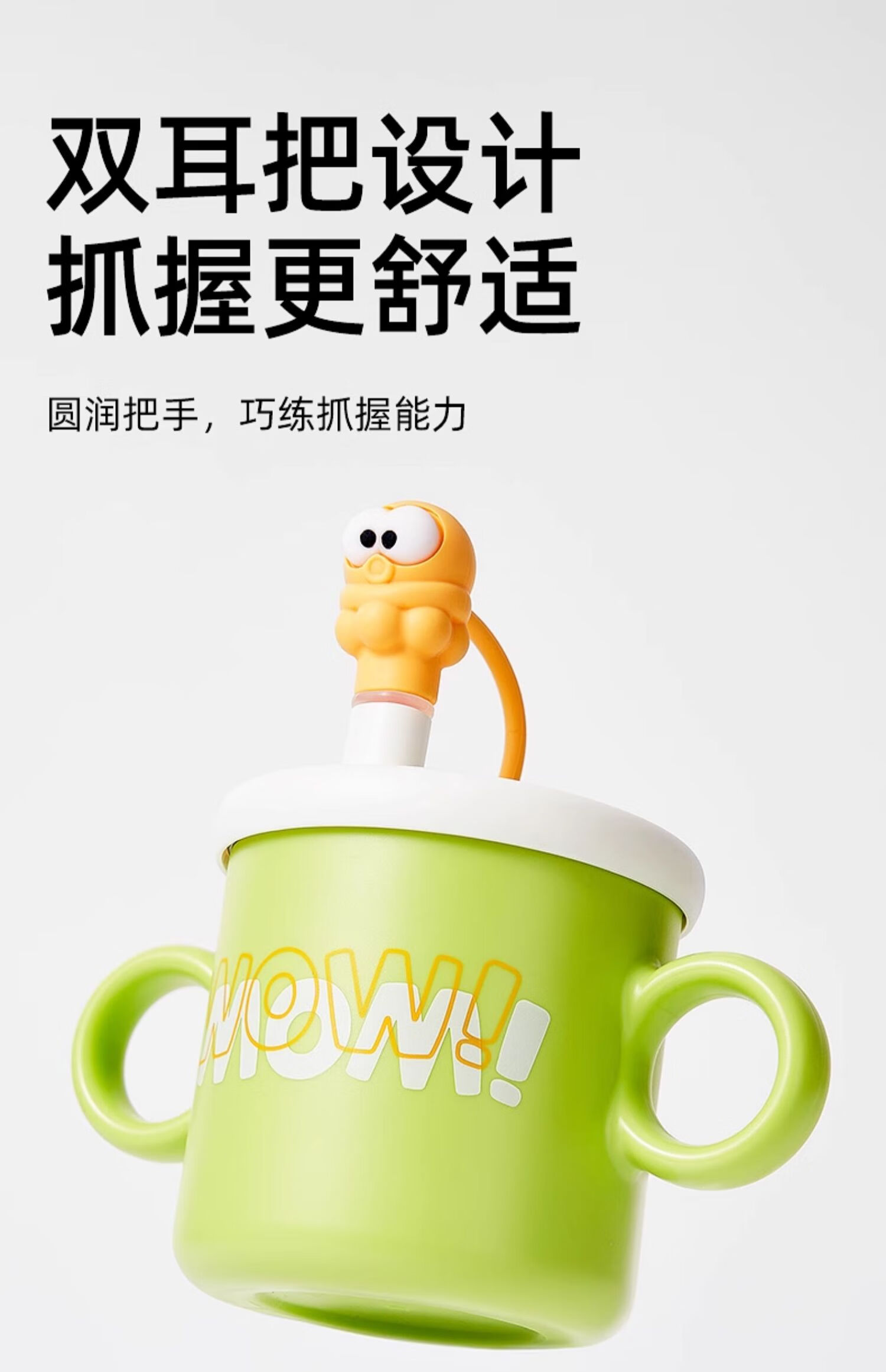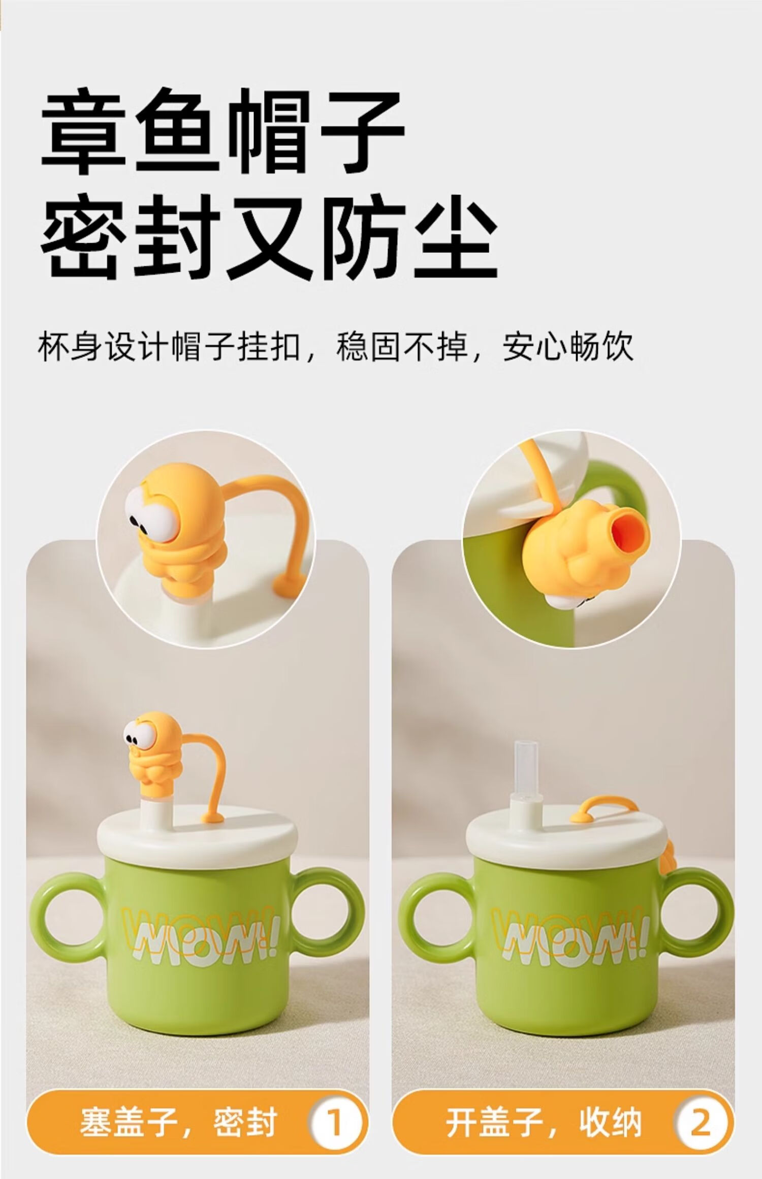 樱舒儿童水杯牛奶杯不锈带钢刻度吸管保温杯宝宝家用喝奶学饮水杯 【316L材质】青芥绿双层保温
