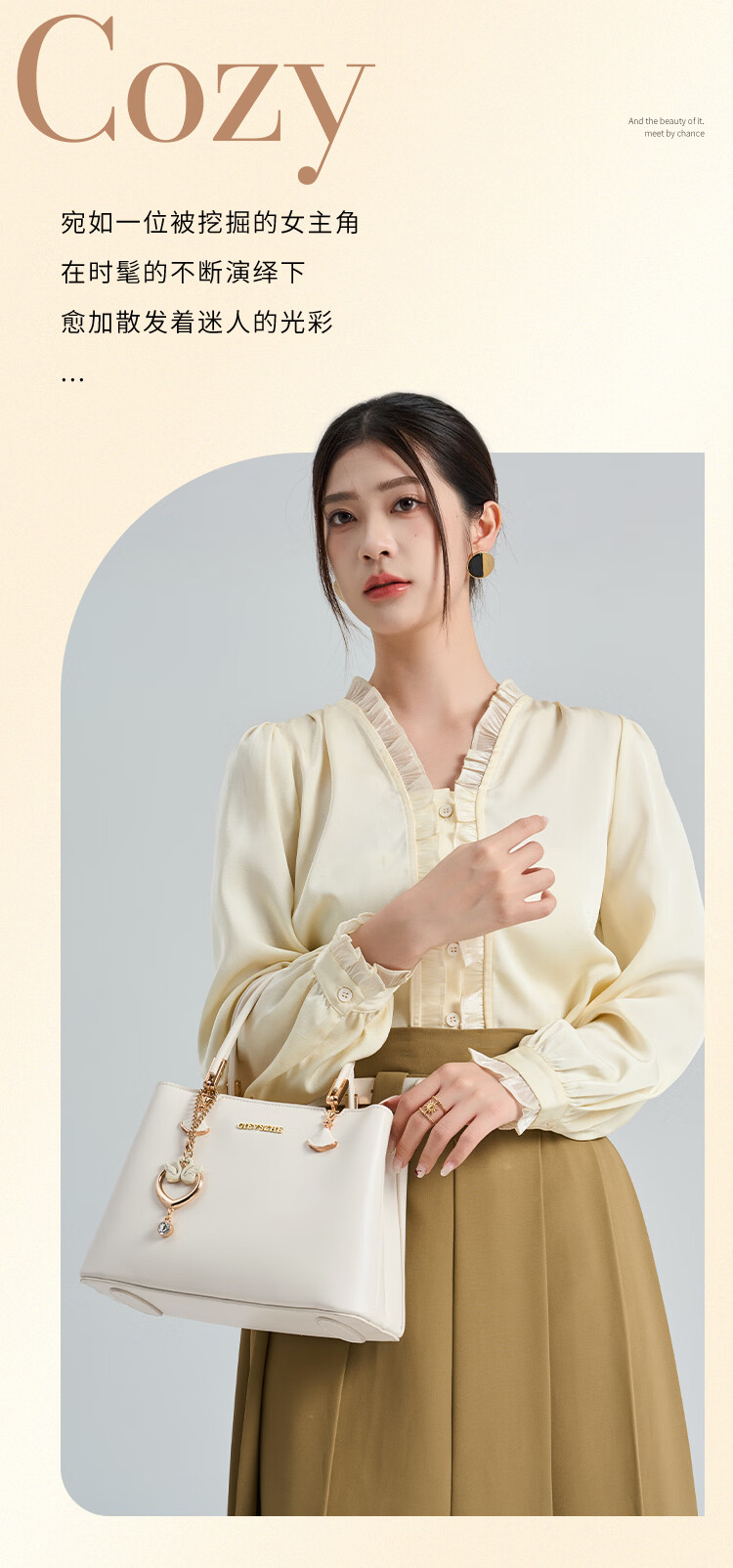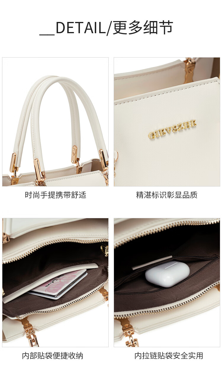纪诗哲(GIEVSZHE)轻奢女包2026新款包包斜挎包单肩手提包三八女神妇女节礼物送老婆 米白色