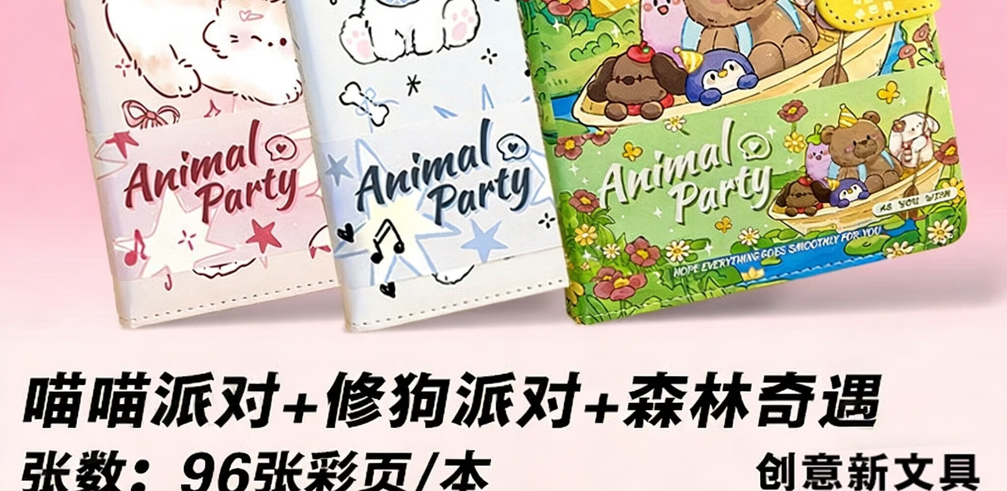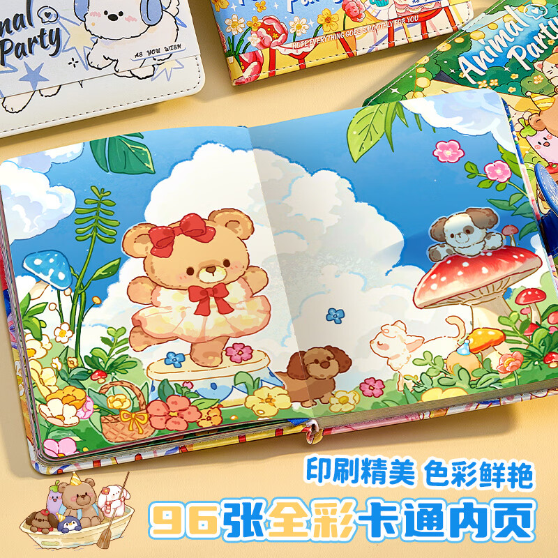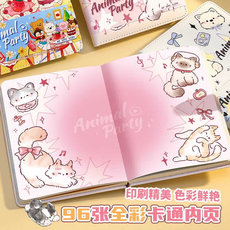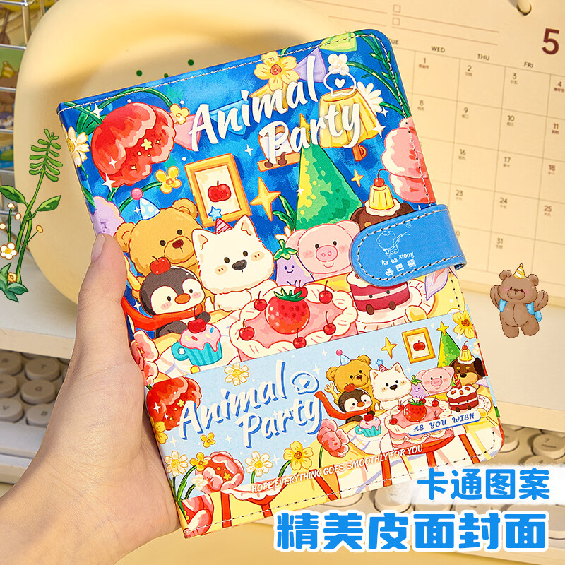 梓霖社笔记本手账本儿童女孩卡通皮面磁扣本记事本日记本高颜值女生礼物小学生初中生本子加厚横线记录本 磁扣【生日派对+修狗派对】2本装