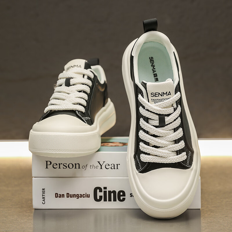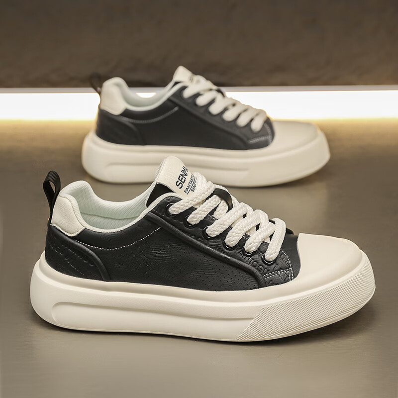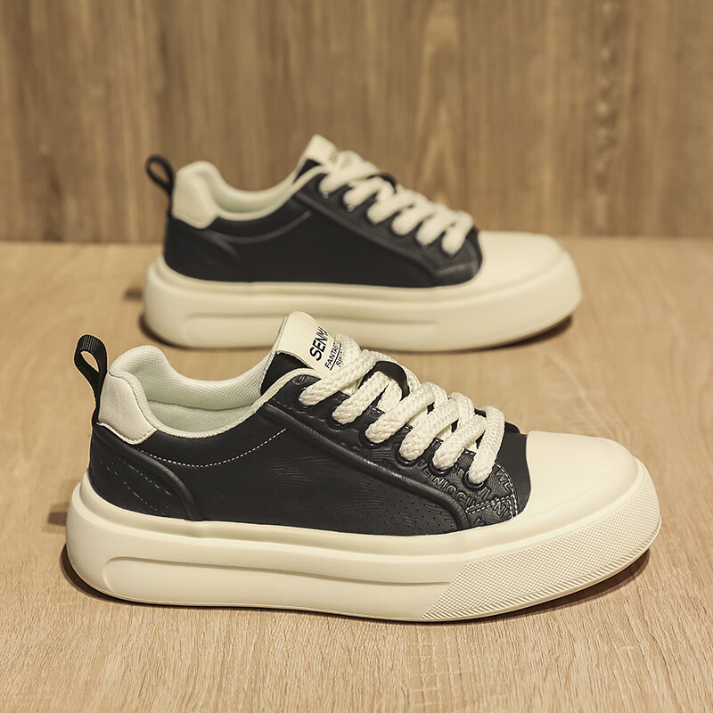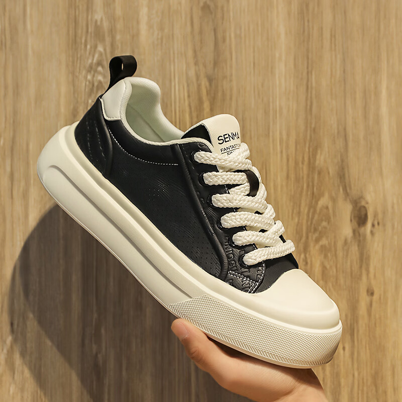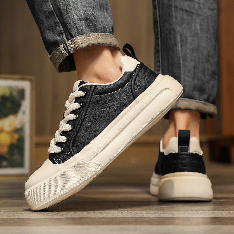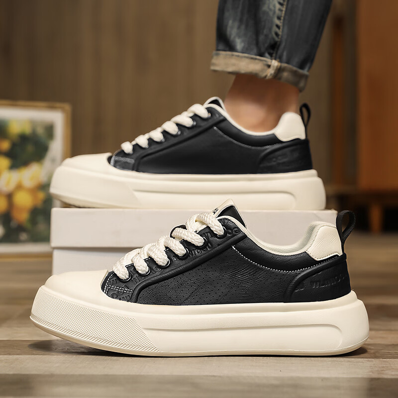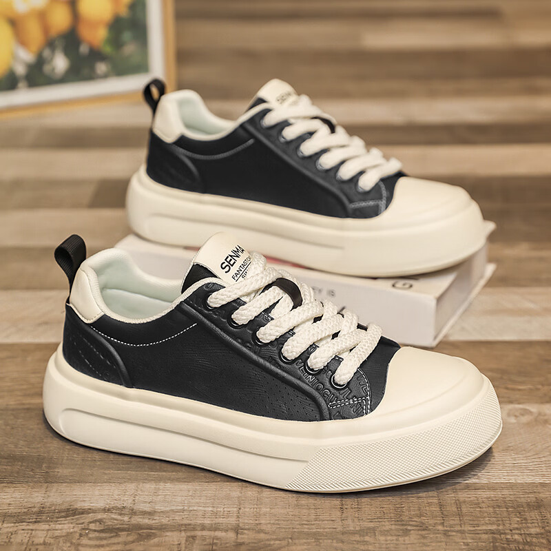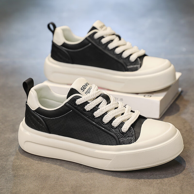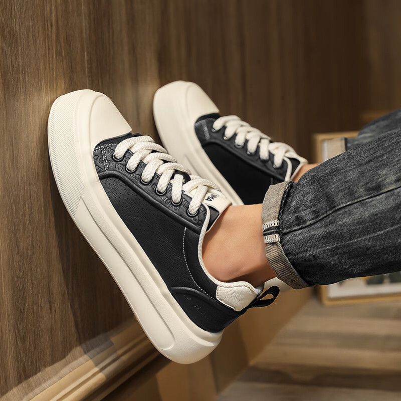 森馬男鞋2026夏季爆款潮流港风透气休闲板鞋学生轻奢百搭增高小白板鞋 黑色【基础款】 39 标准码数/现货秒发