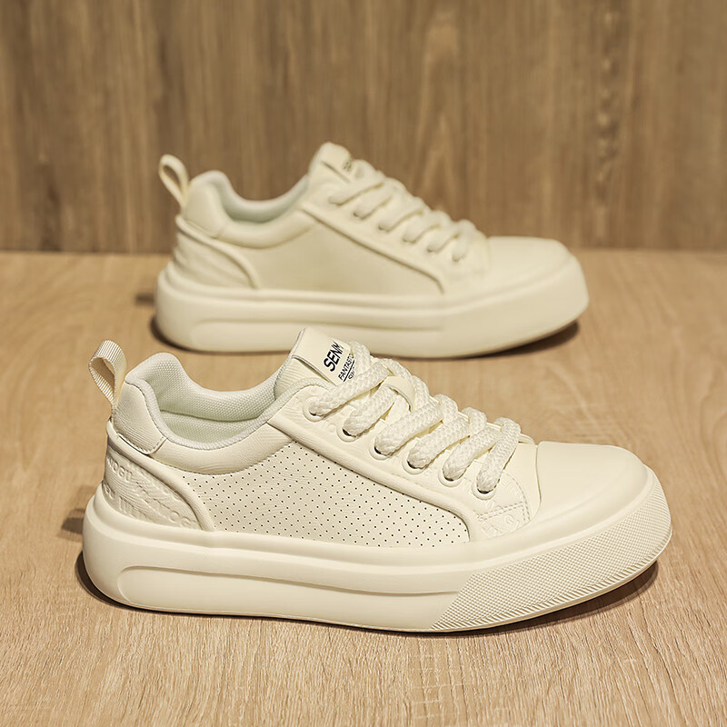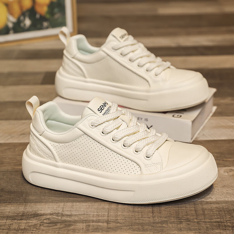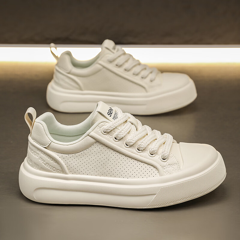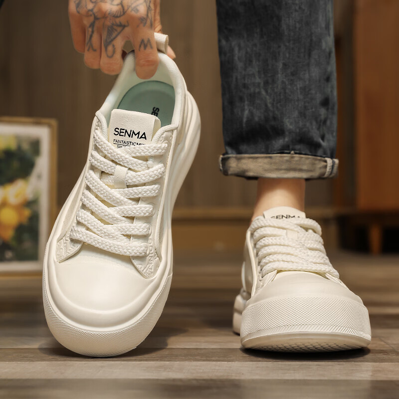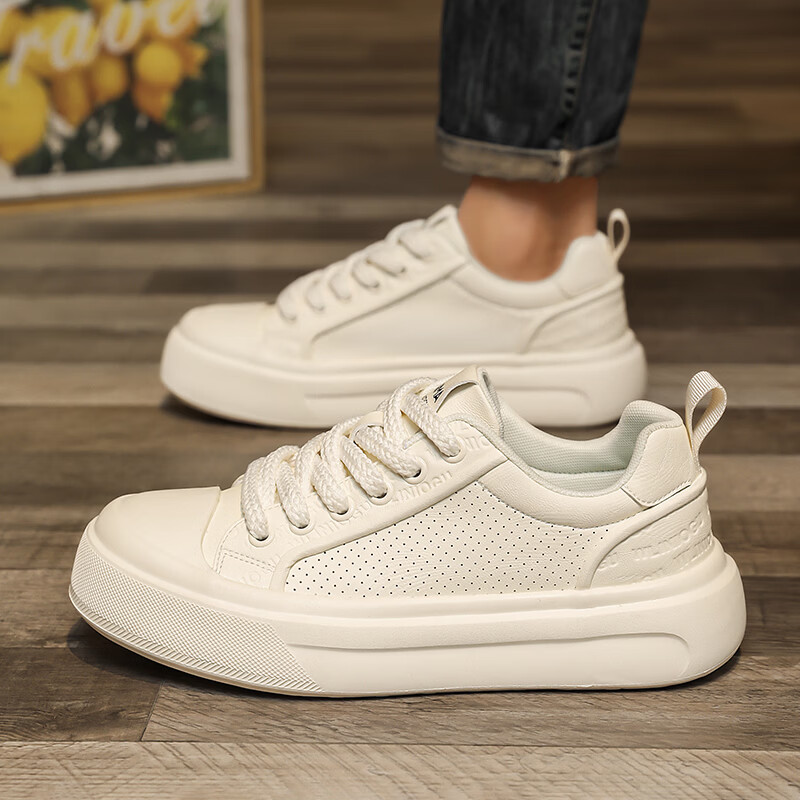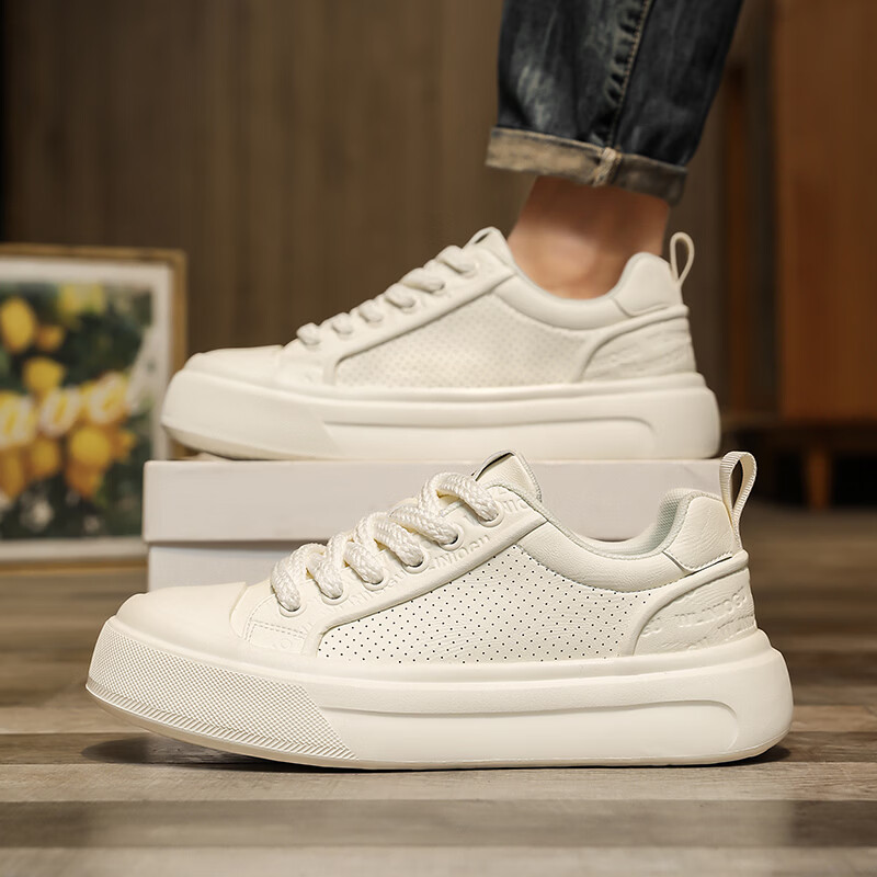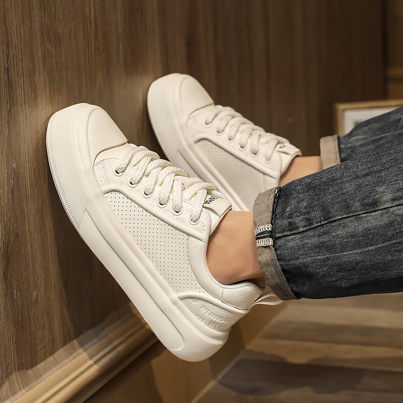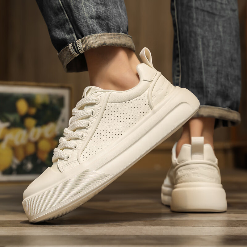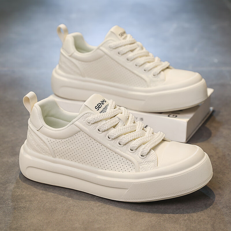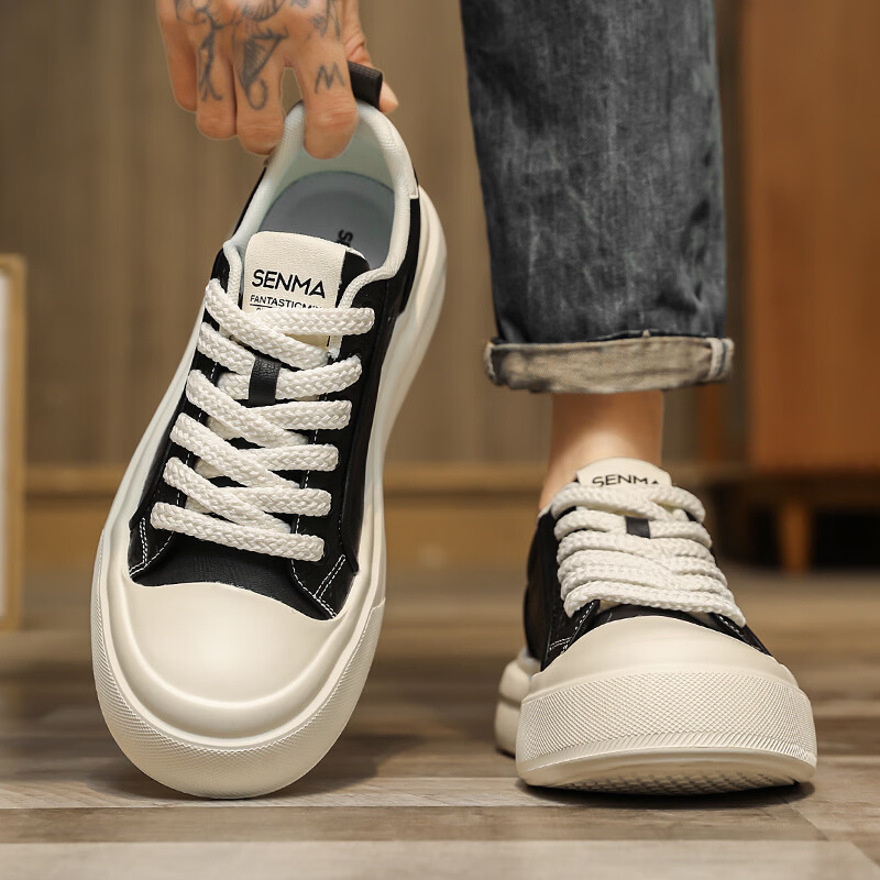 森馬男鞋2026夏季爆款潮流港风透气休闲板鞋学生轻奢百搭增高小白板鞋 黑色【基础款】 39 标准码数/现货秒发