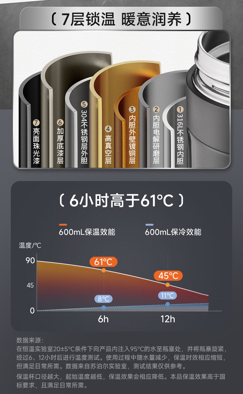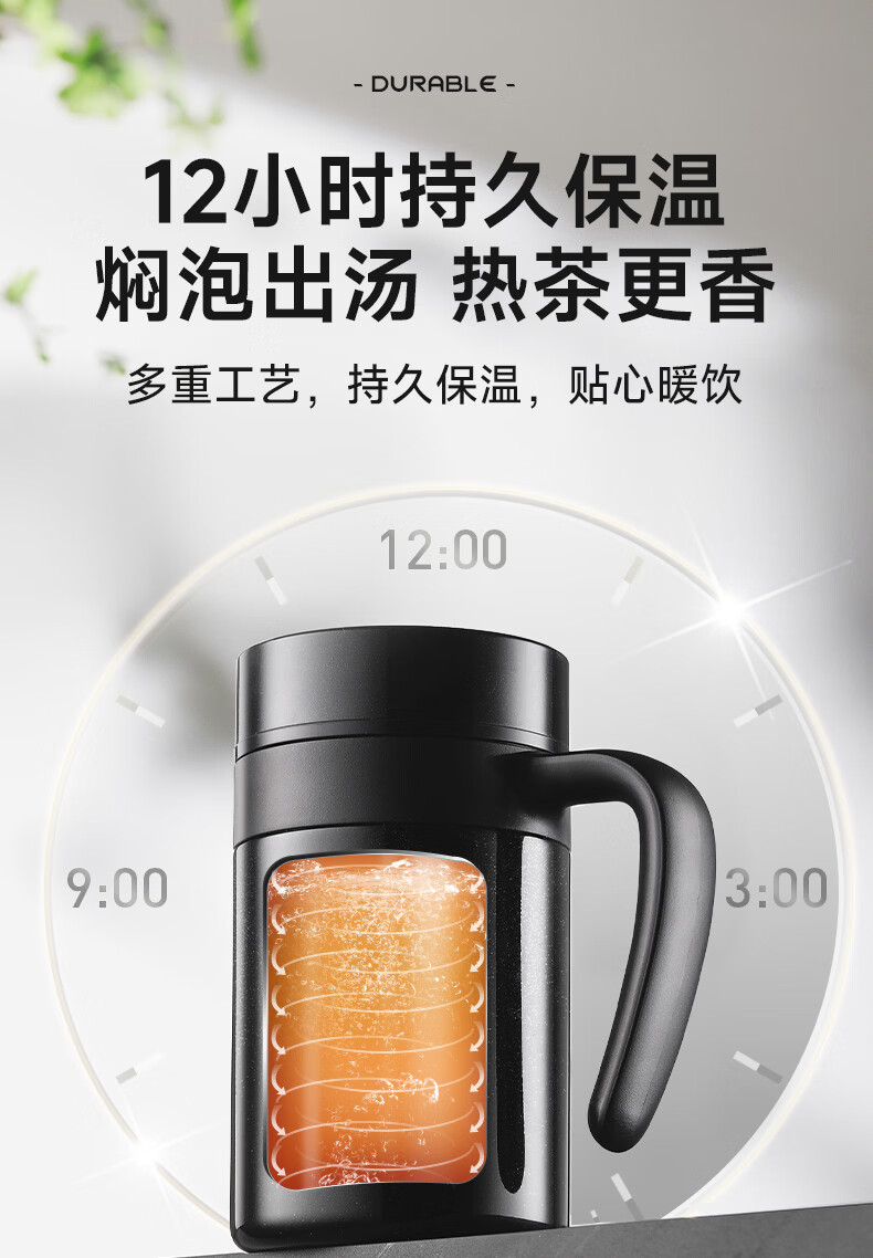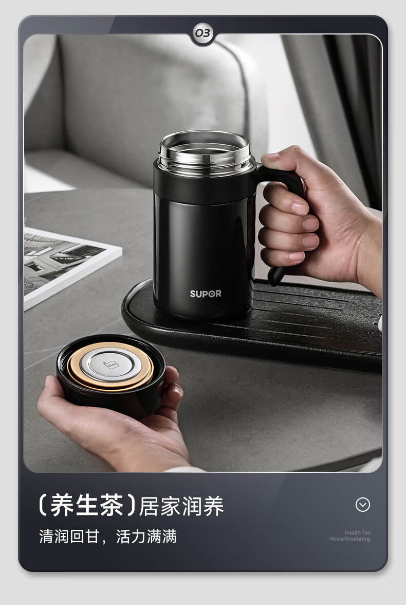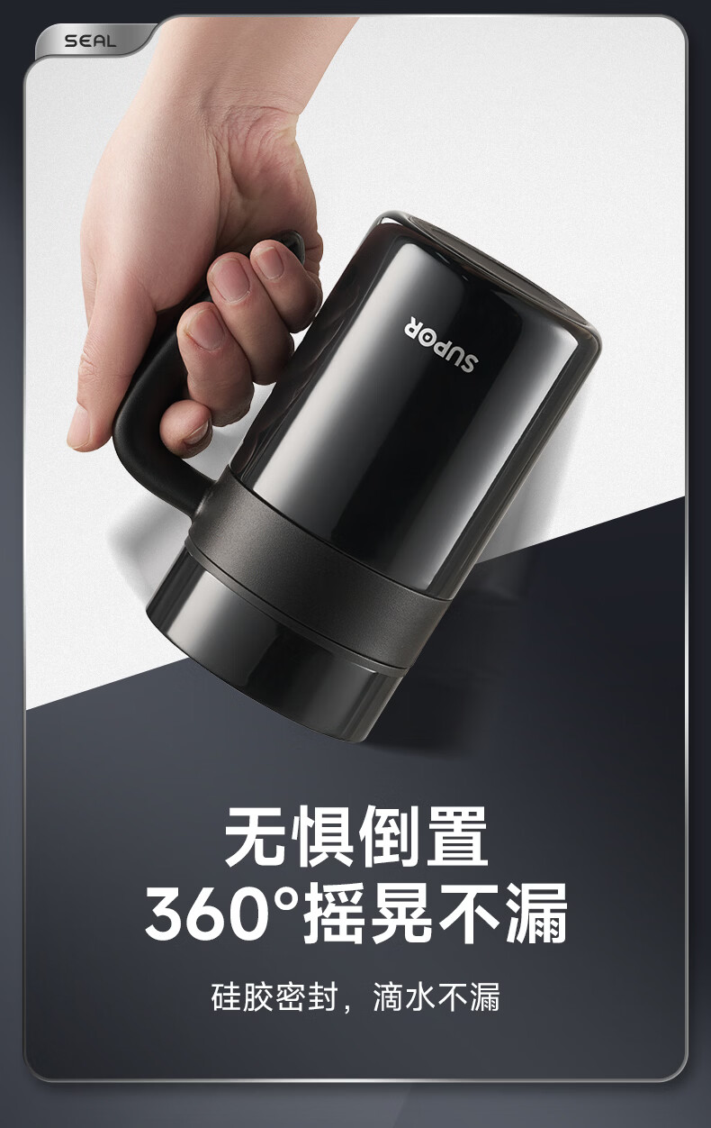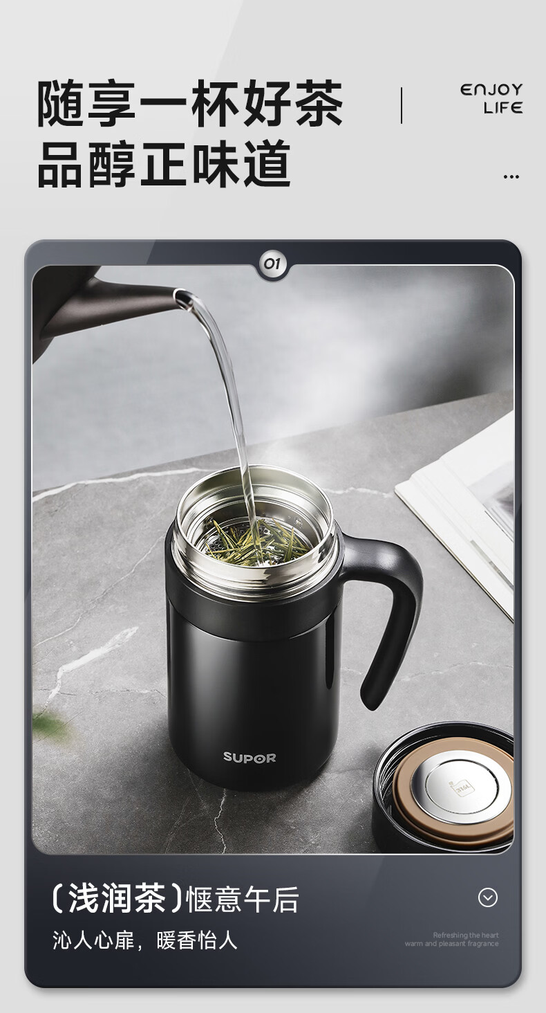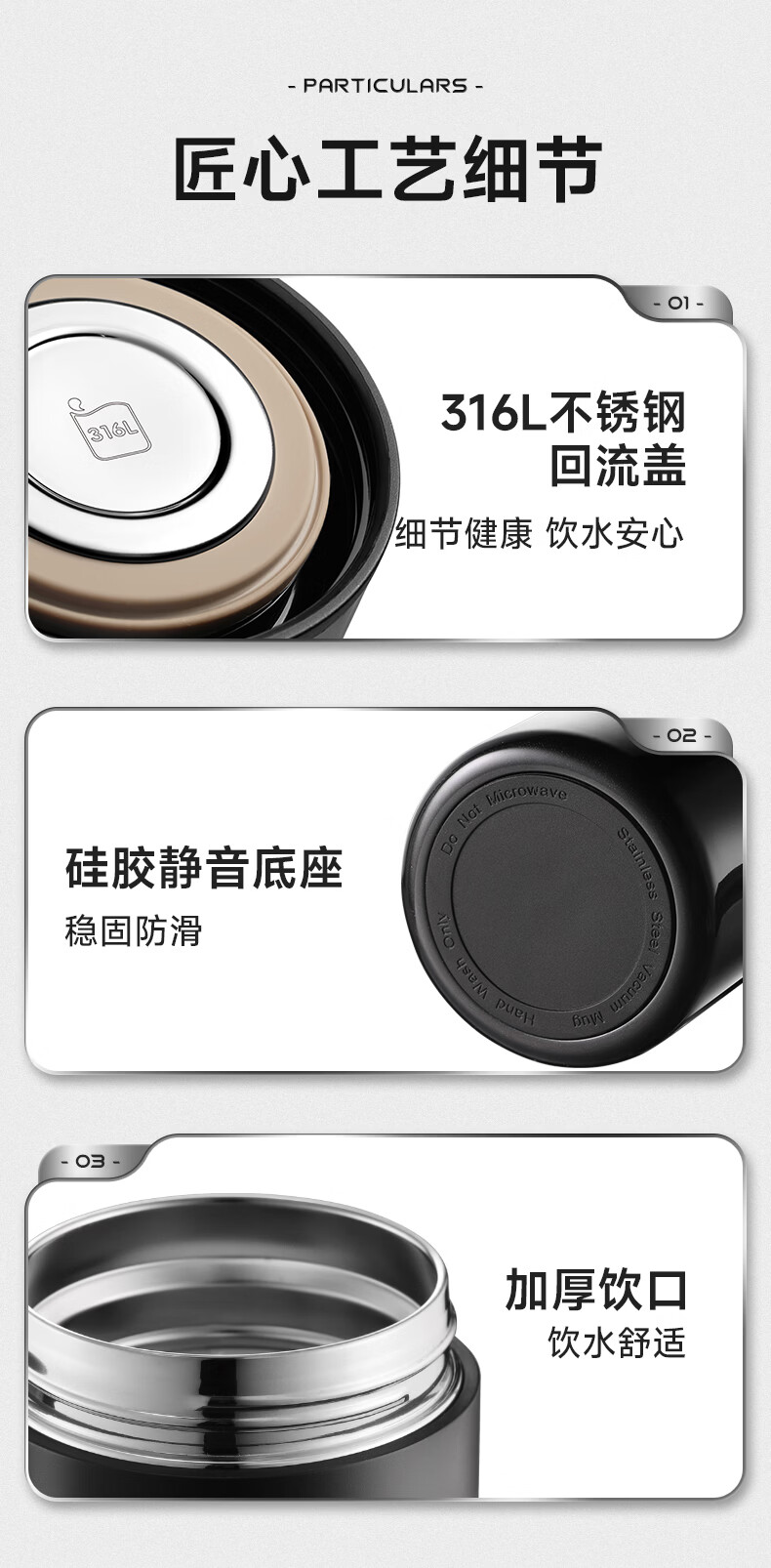 苏泊尔(SUPOR)保温杯男士桌面不锈钢办公室泡茶水杯子大容量定制长辈礼物伴手礼 儒雅黑600ml【316L不锈钢】