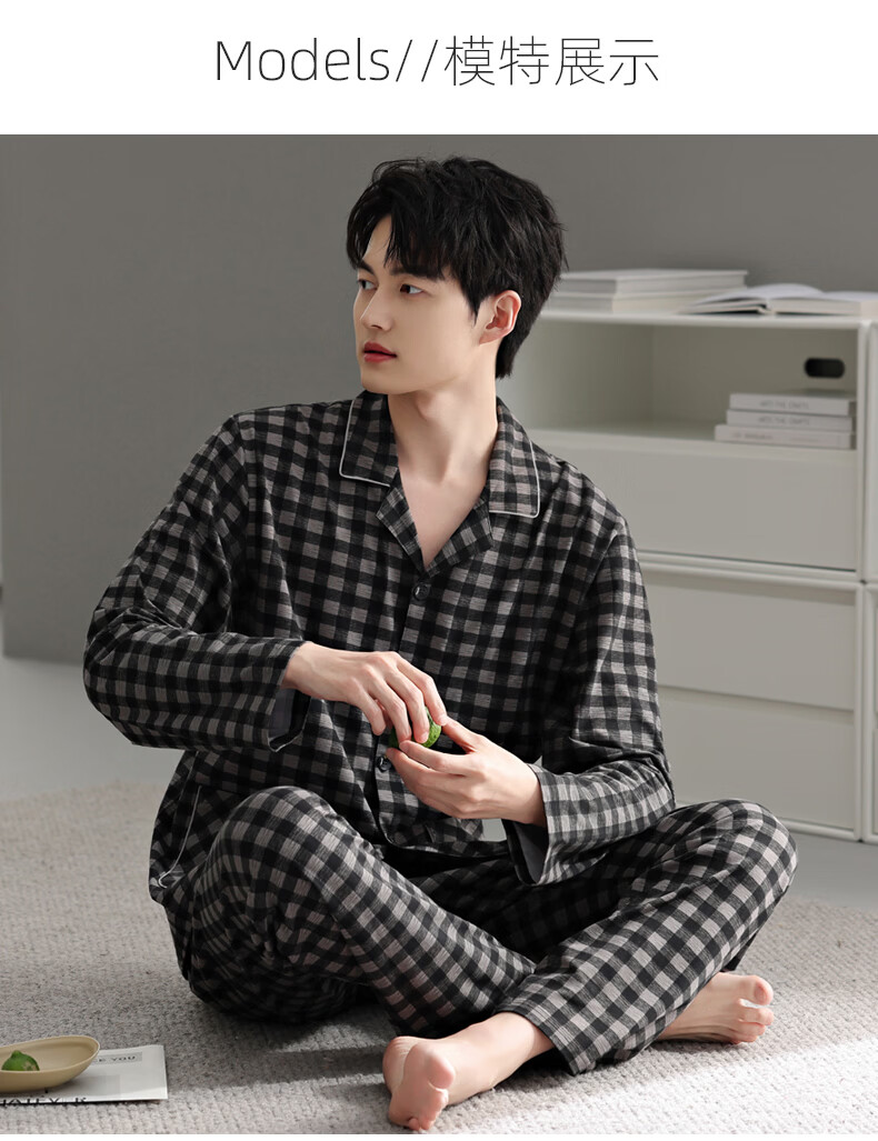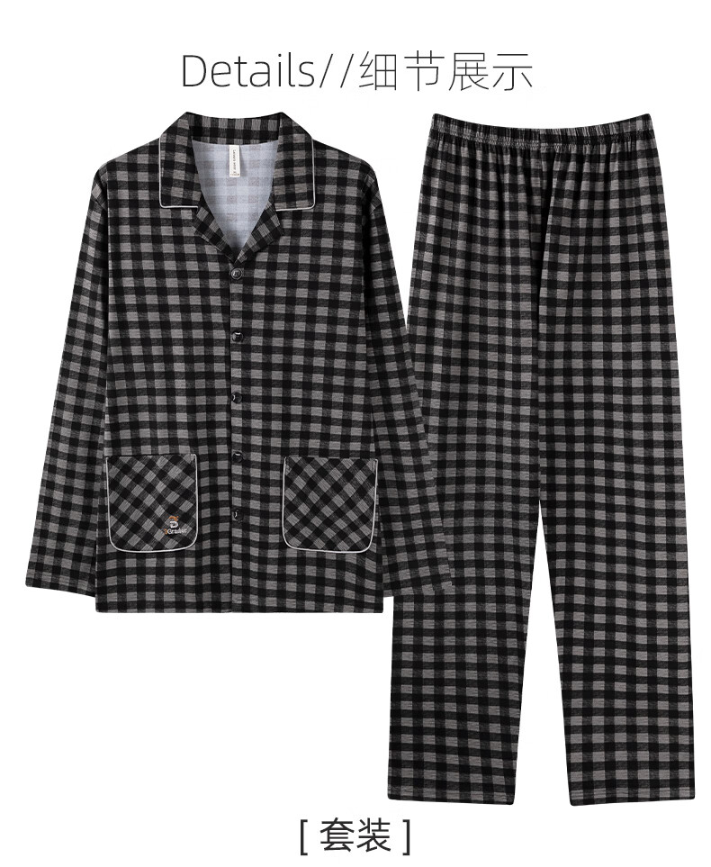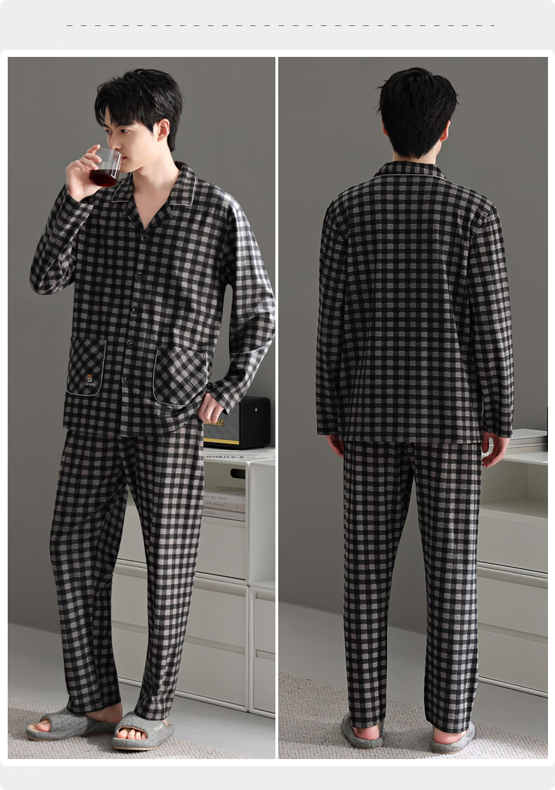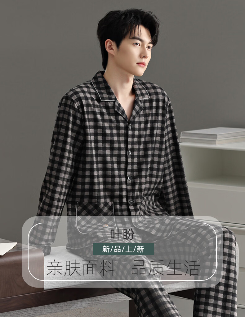 叶盼(yepan)【柔软】睡衣男春秋季纯棉宽松长袖开衫男款高级感男士家居服套装 91112-曜石黑 M (165) :建议100-120斤穿着