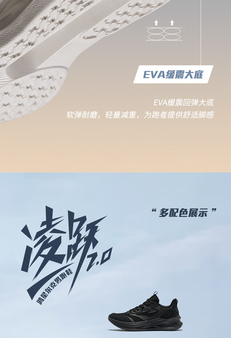 鸿星尔克男鞋凌跃2跑鞋春夏季新款软底减震跑步鞋网面透气黑色运动鞋子男 【热卖推荐款】正黑 42