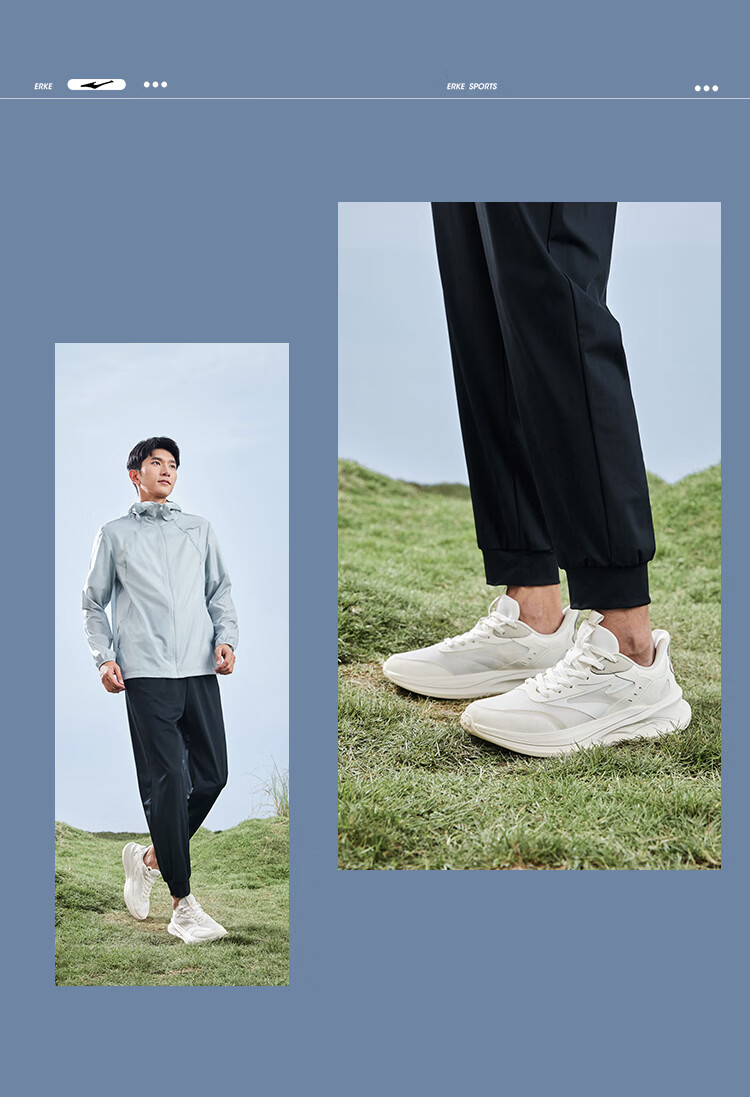 鸿星尔克跑步鞋春季透气男鞋轻便网面通勤休闲跑鞋户外慢跑运动鞋子经典款 正黑/正白-2123【网面透气】 42