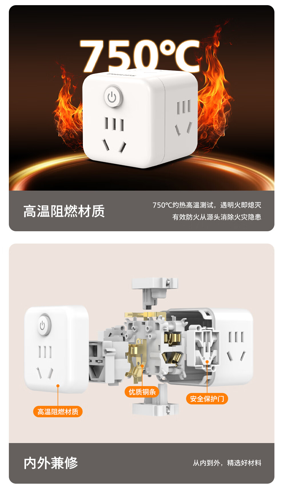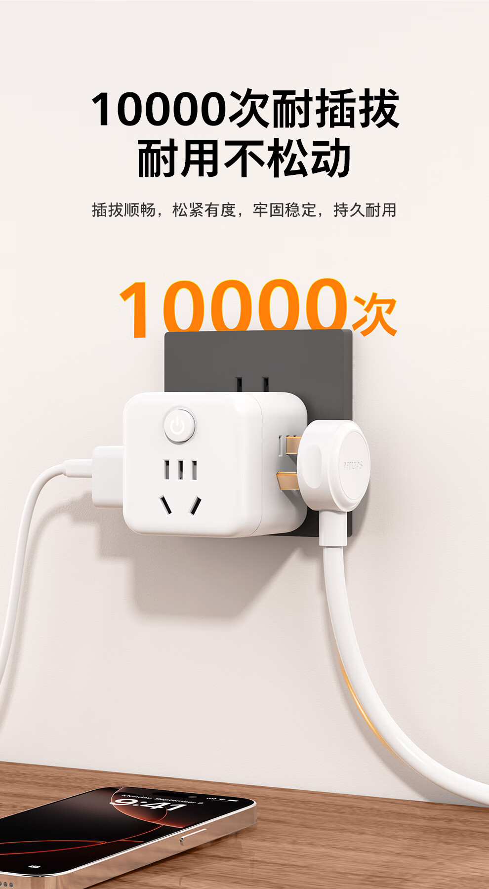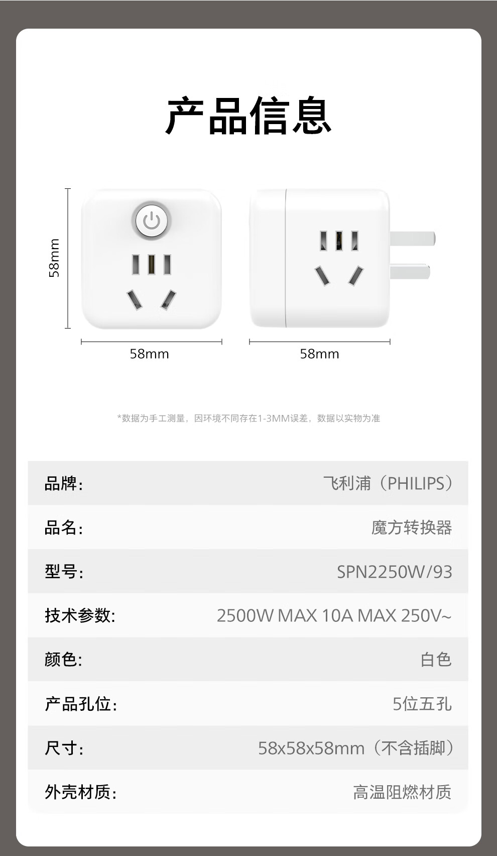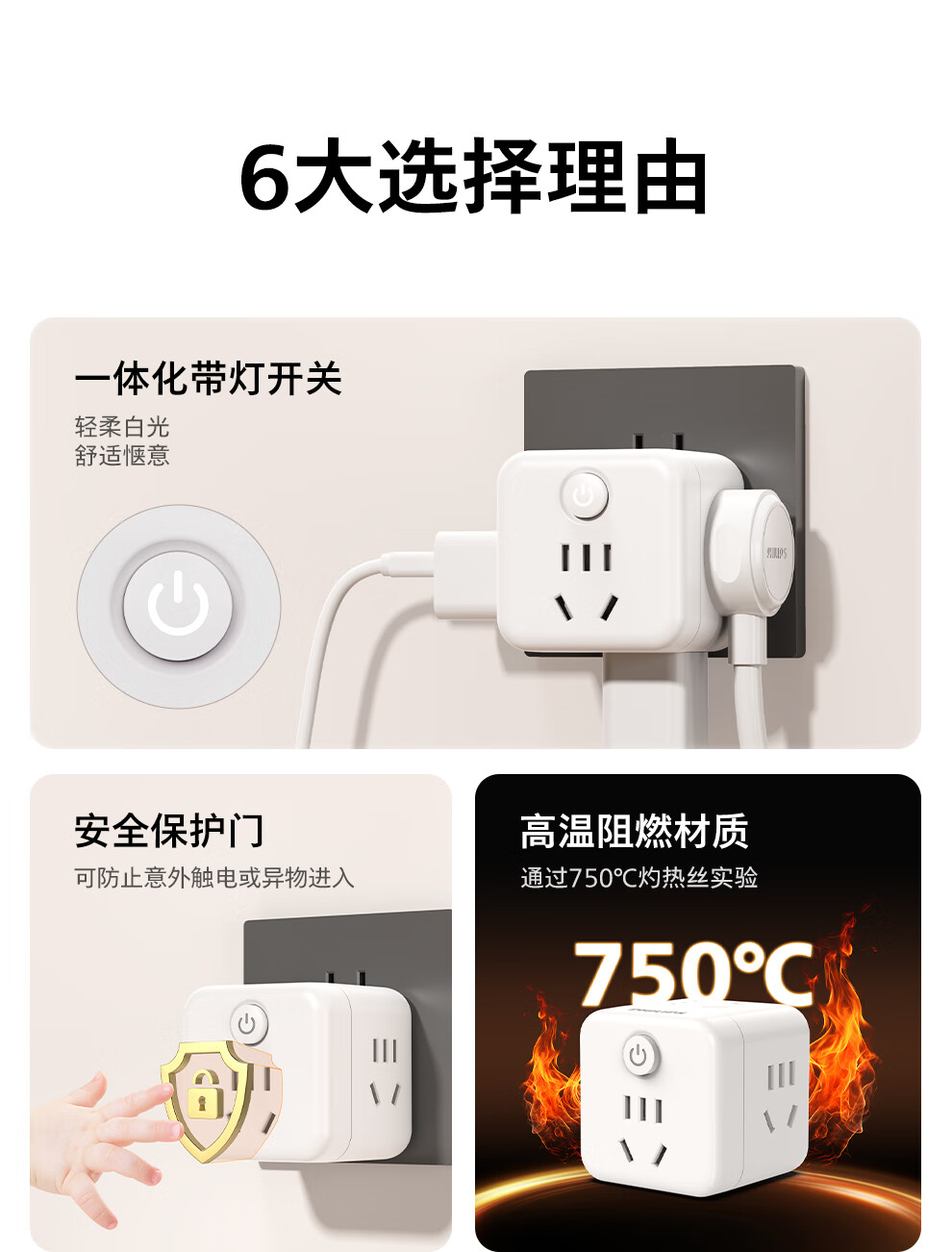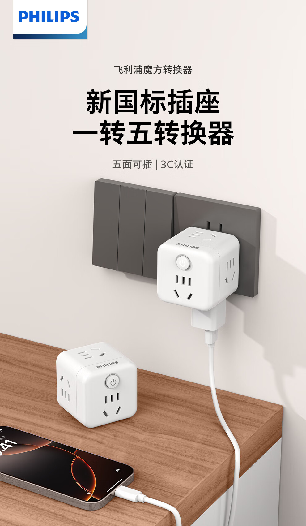 飞利浦(PHILIPS)魔方插座/插头转换器/转换插头插座/一转多插座扩展/多功能插座/无线插排/插线板