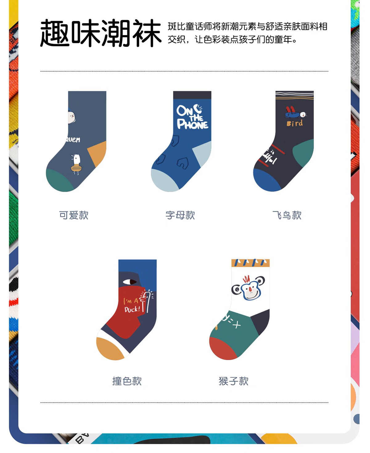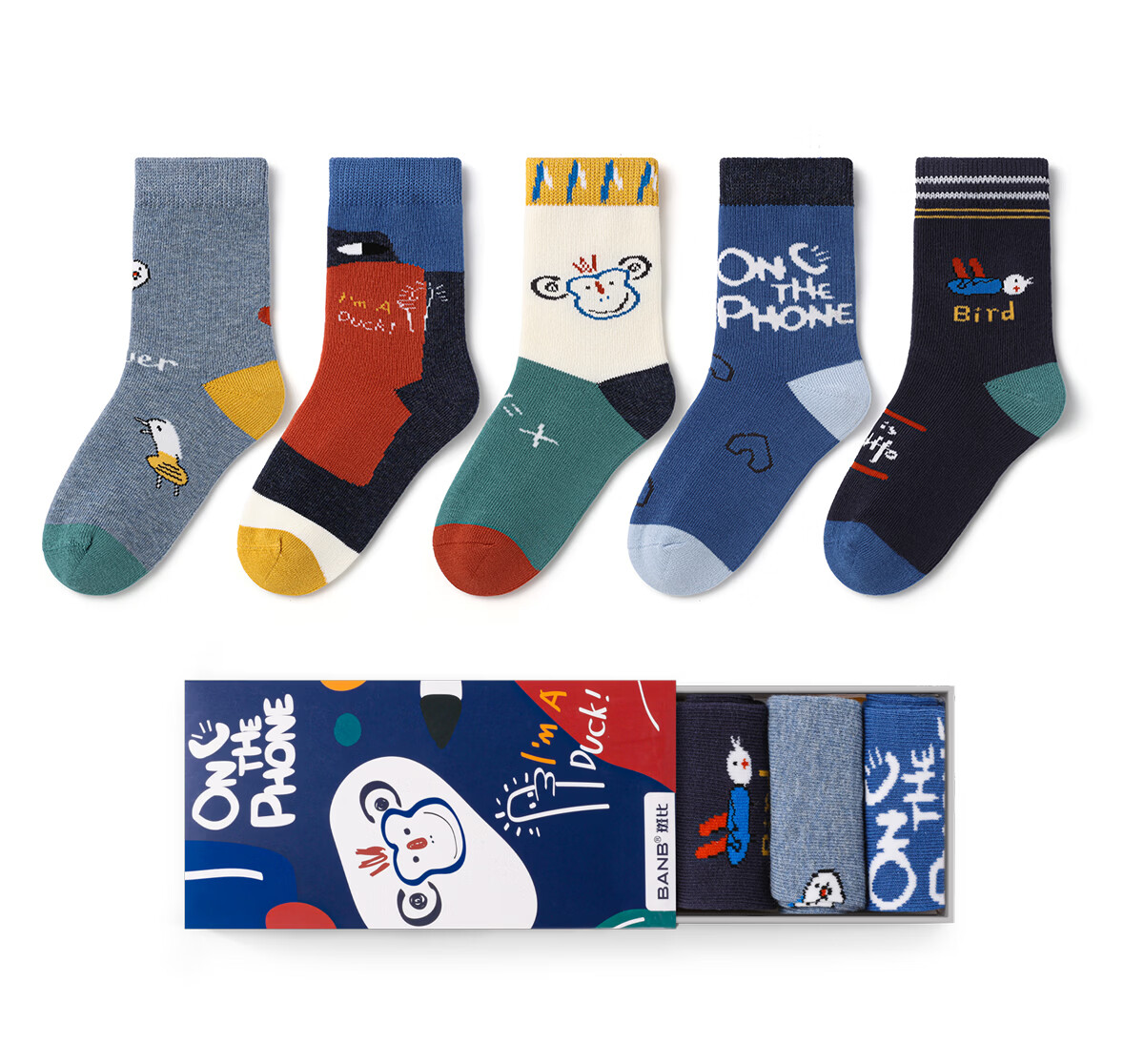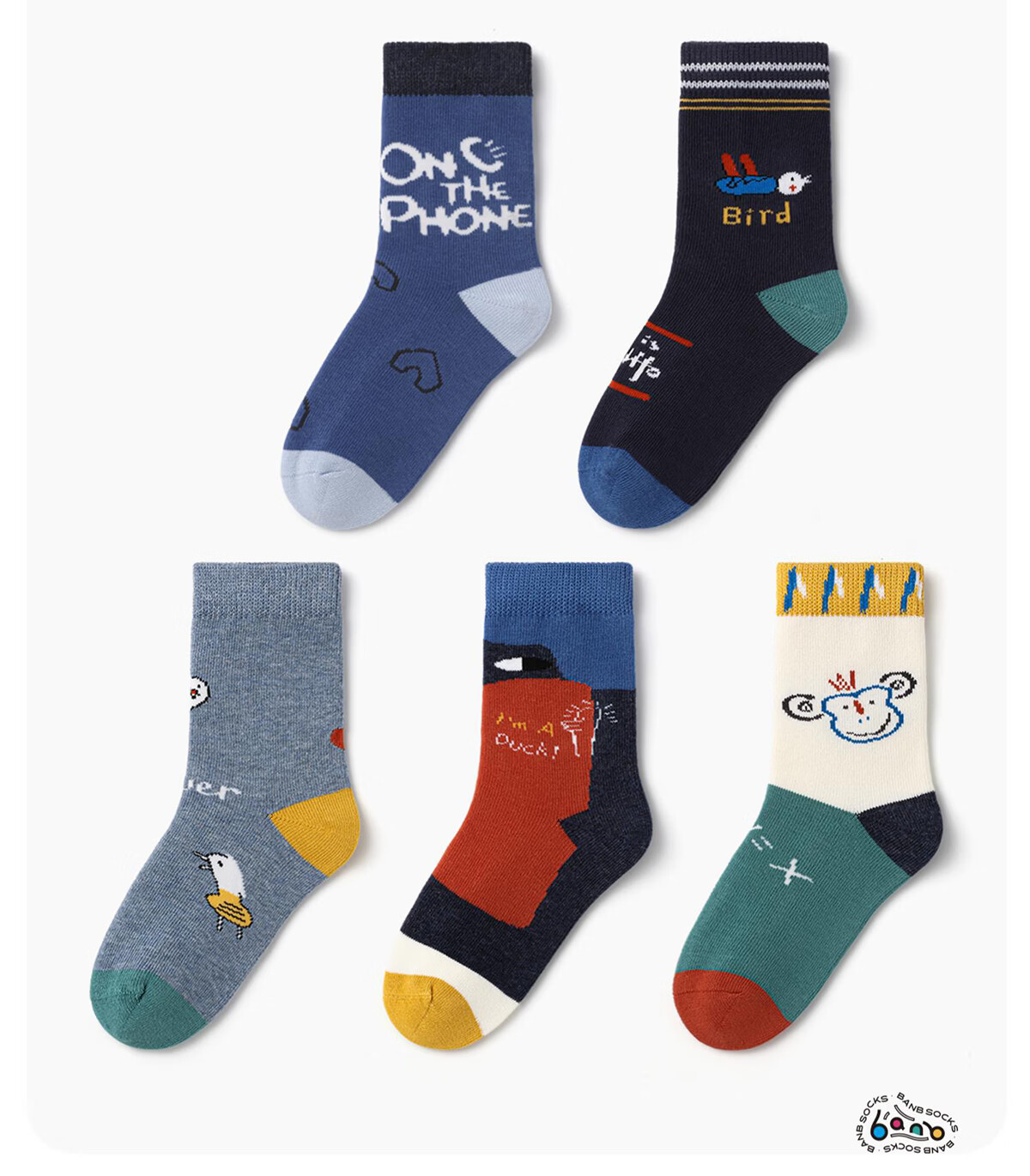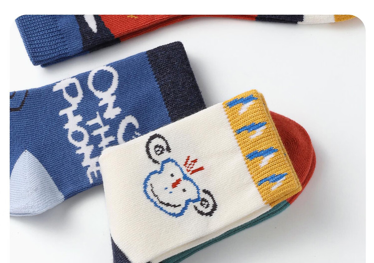 斑比儿童袜子潮春秋款大童宝宝秋冬季男女童袜无骨中筒棉袜 BB2251 春秋儿童趣味个性袜 5双 0-1岁 建议脚码16码以内【12-14】