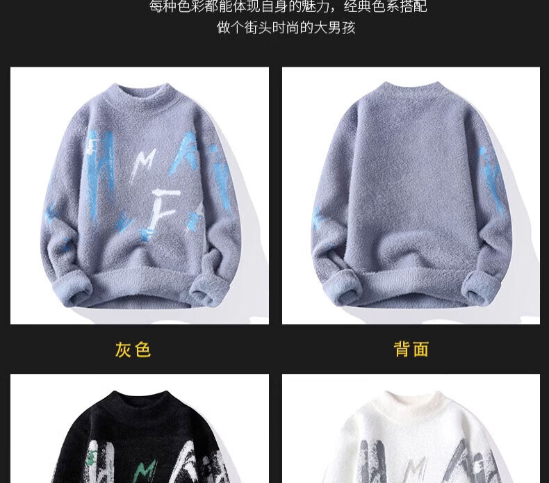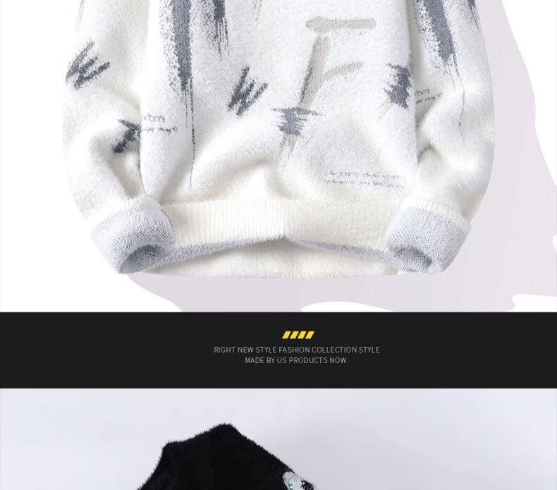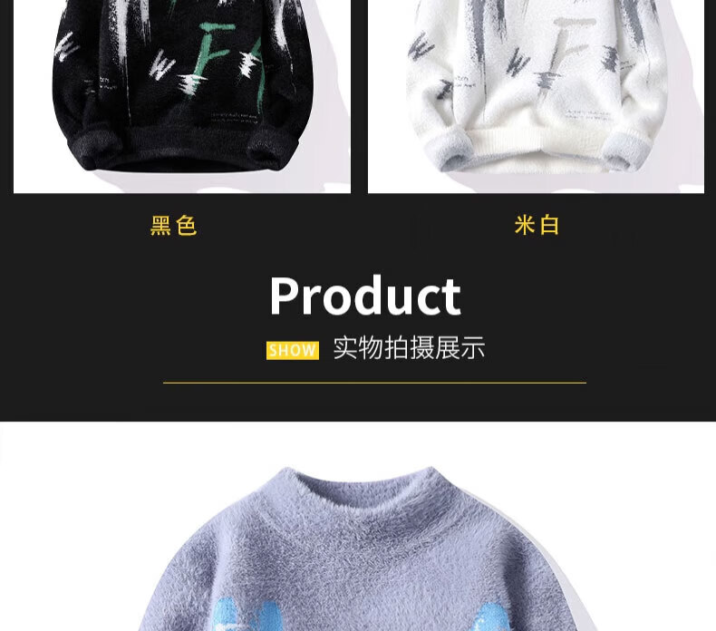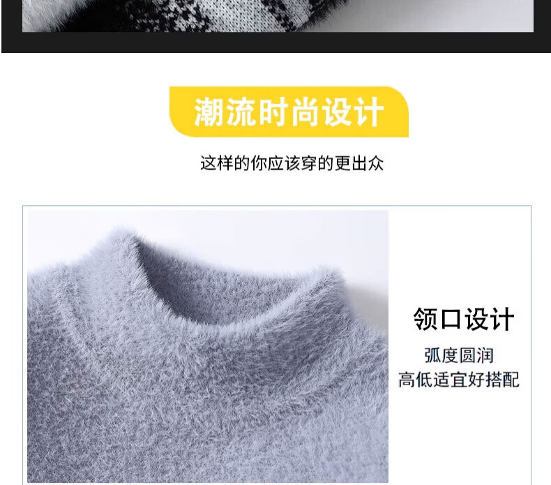 啄木鸟毛衣男秋冬季新款仿水貂绒针织打底衫男加绒加厚上衣保暖线衣服男 白色 M (建议90-110斤)