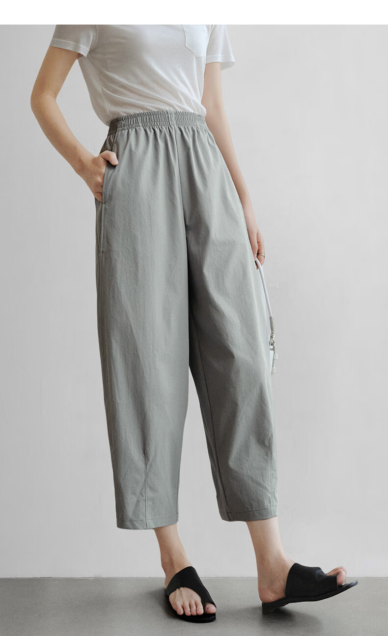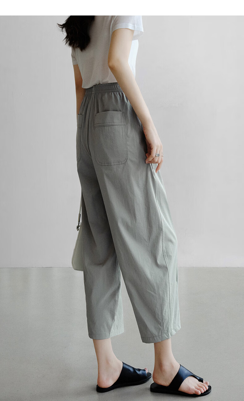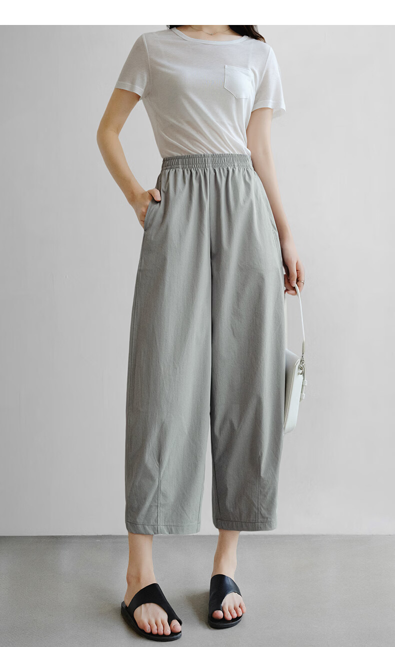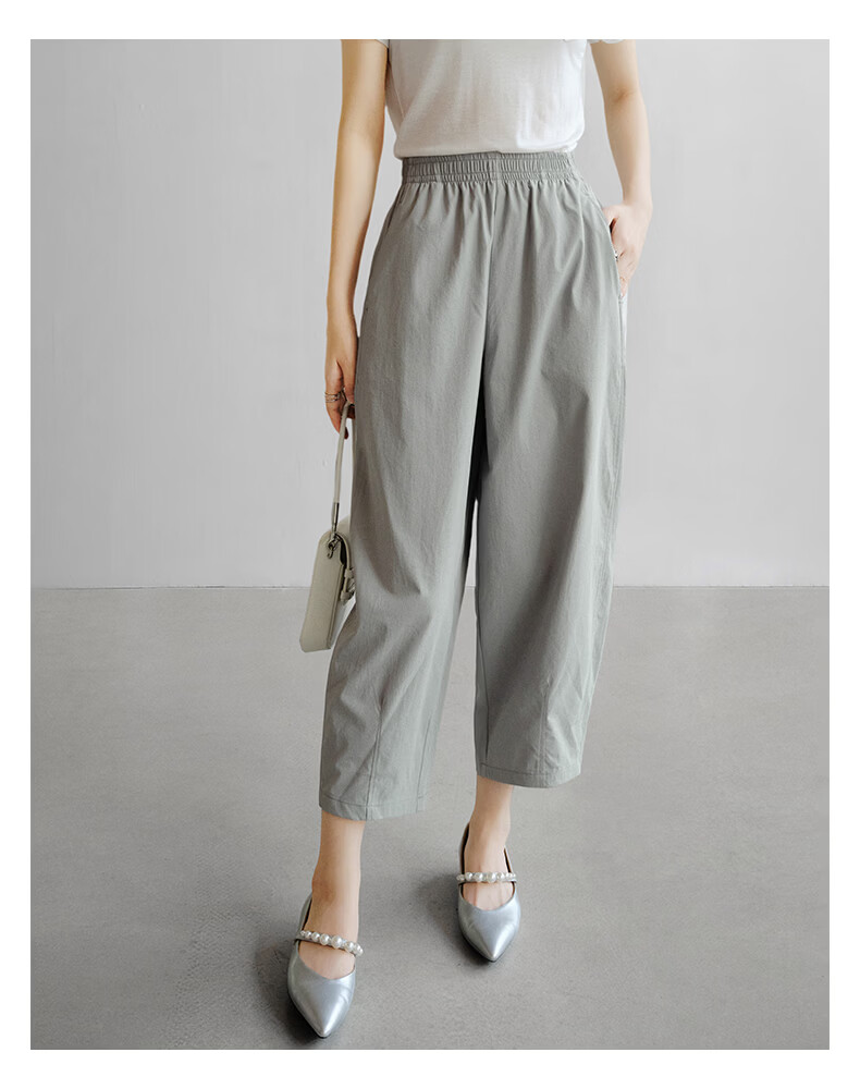 晚白【新品】2026年春款休闲舒适松紧腰裤子遮胯显瘦日常通勤直筒裤女 灰绿色 29