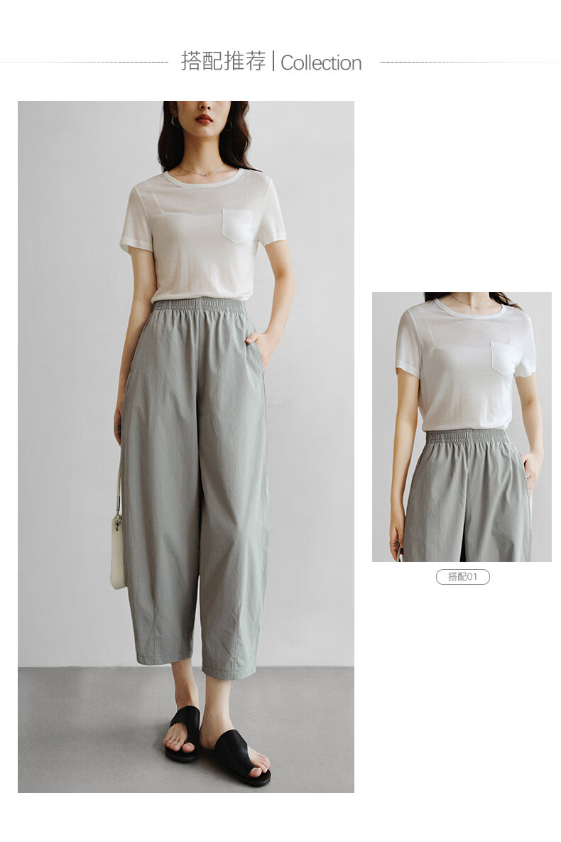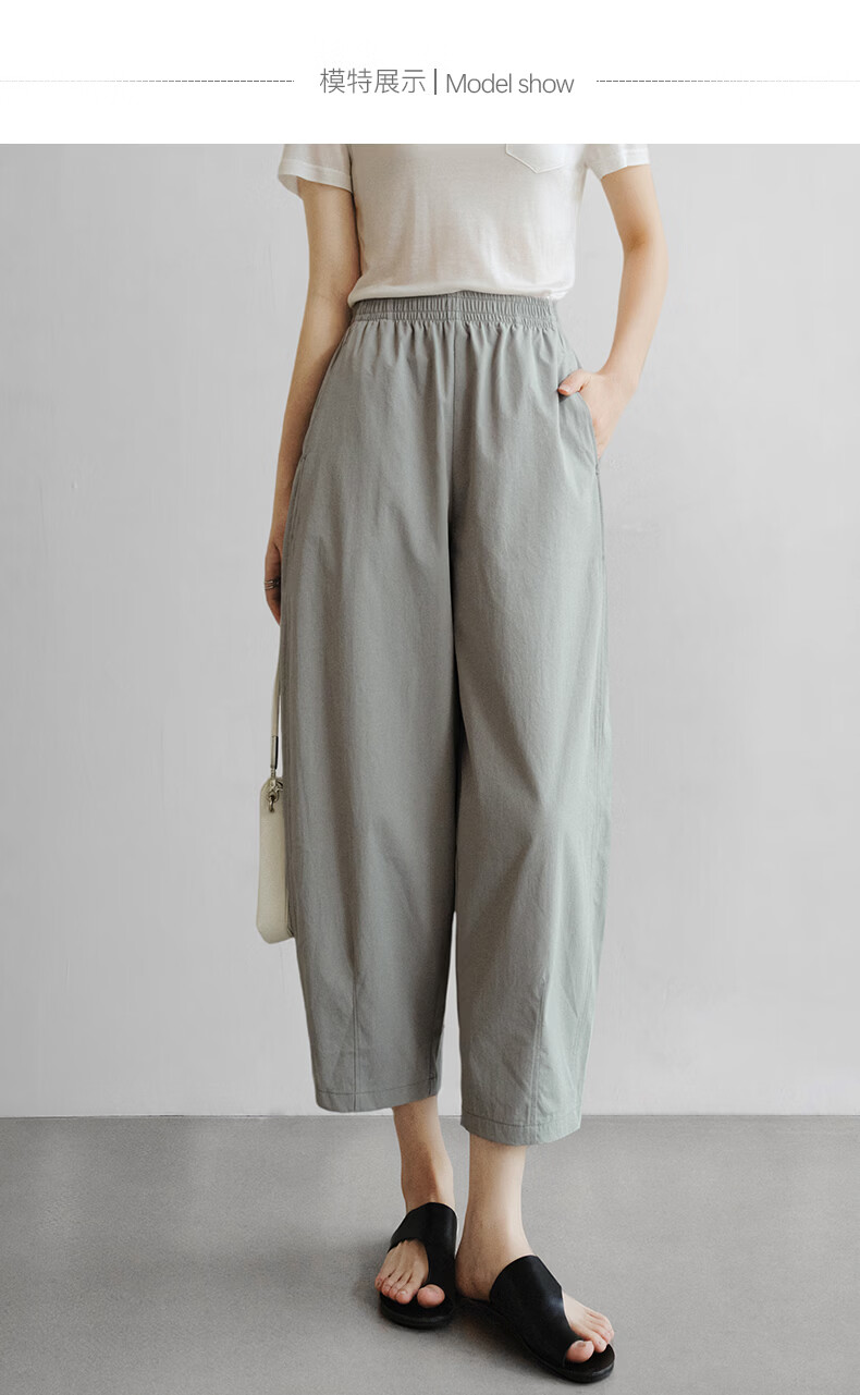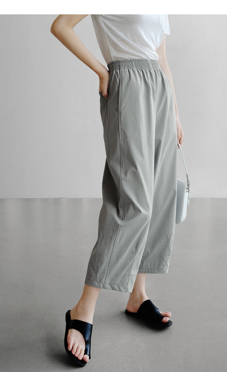 晚白【新品】2026年春款休闲舒适松紧腰裤子遮胯显瘦日常通勤直筒裤女 灰绿色 29