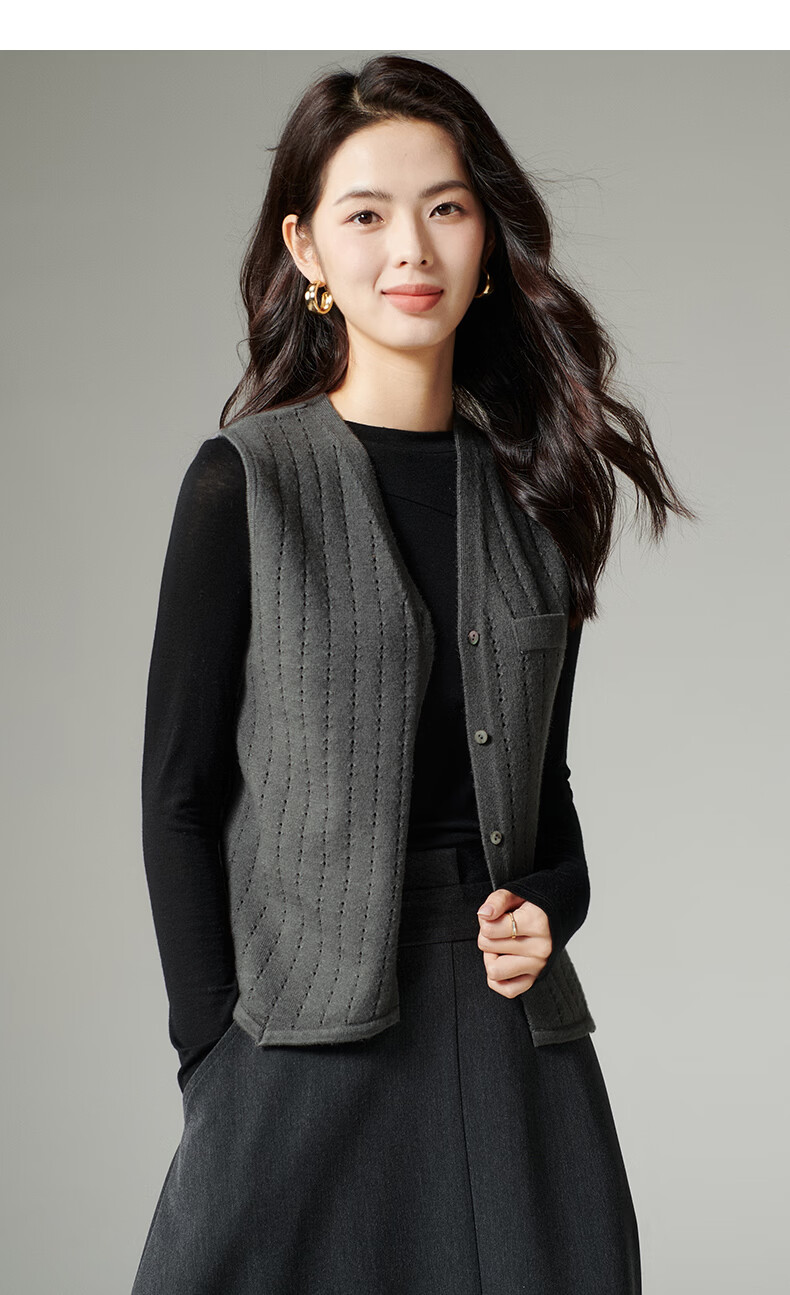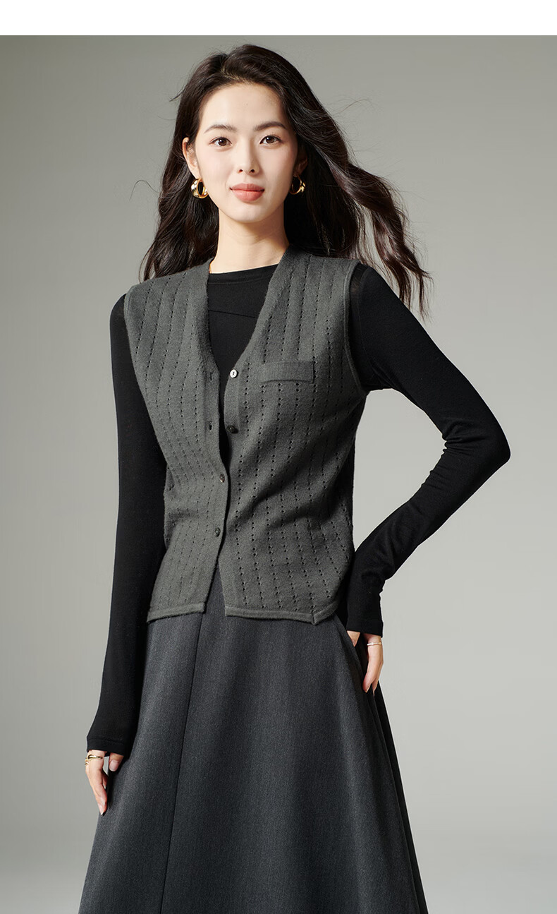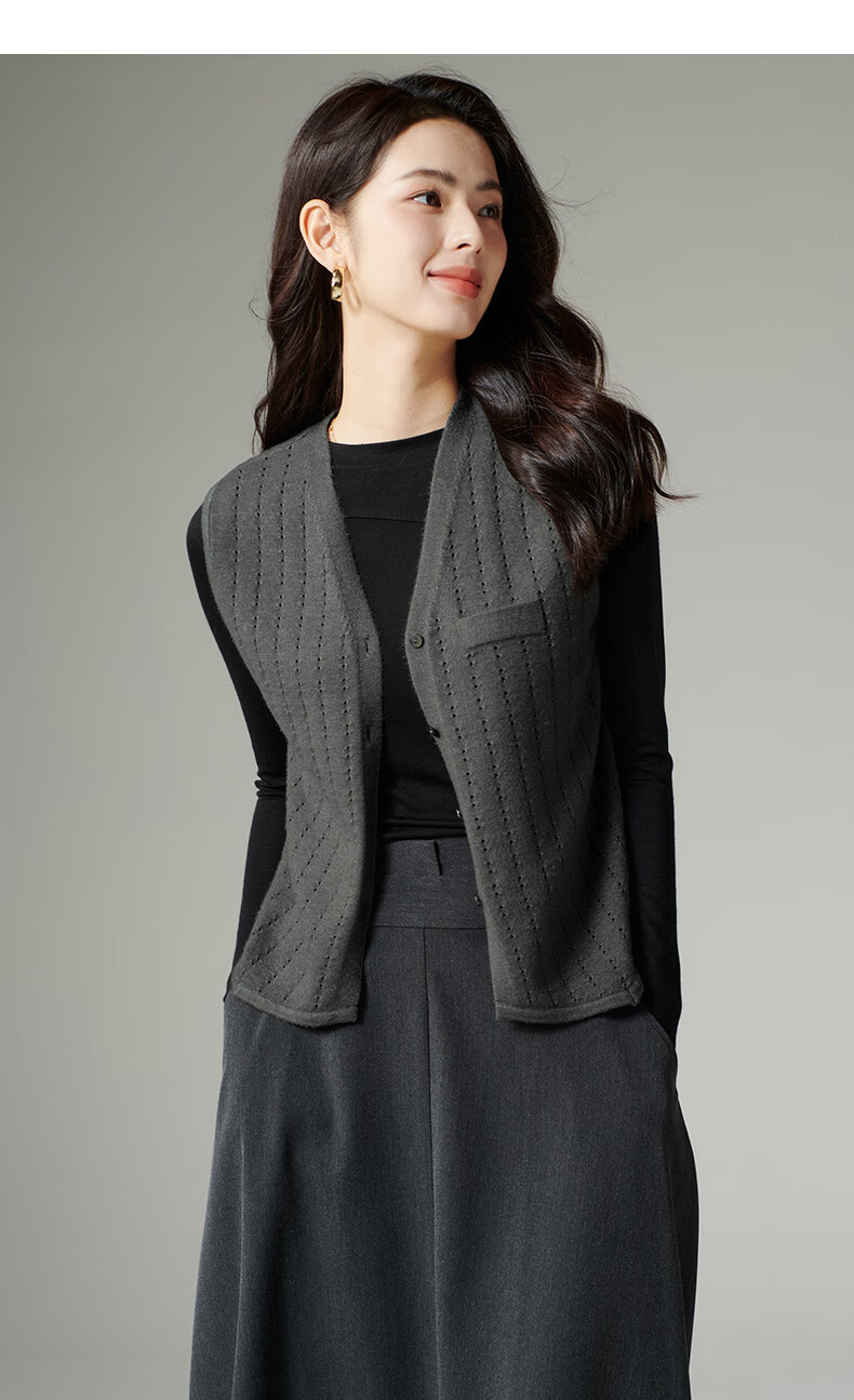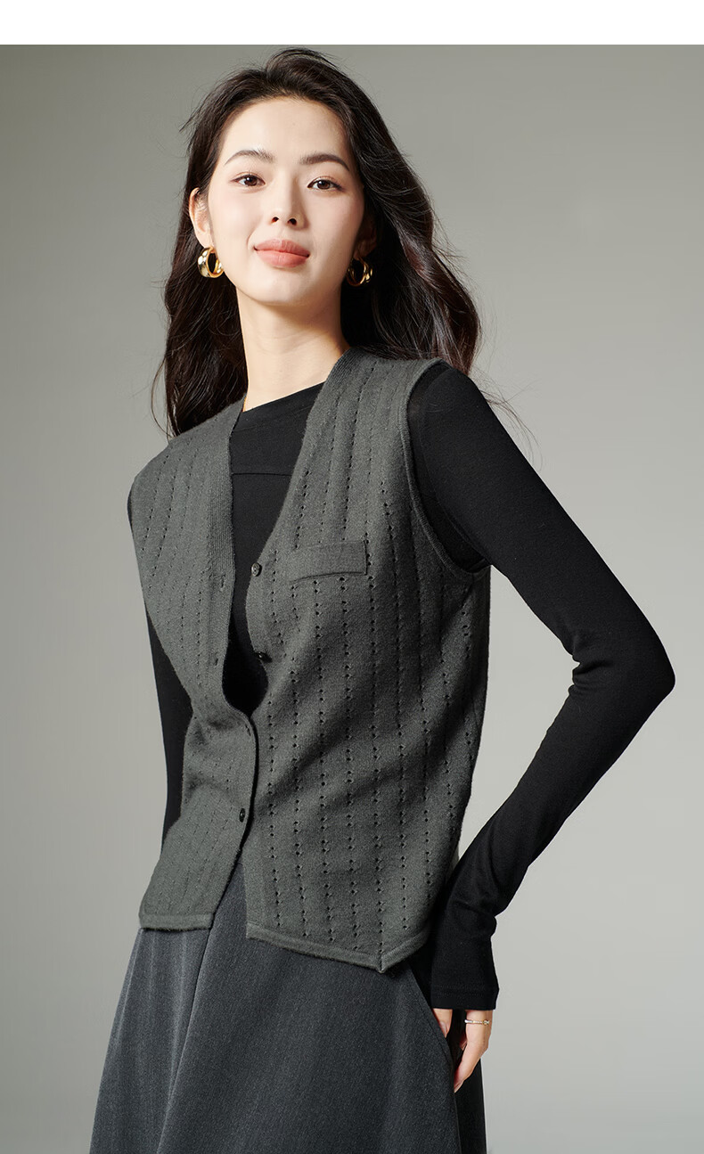 晚白【断码清仓】2026春季气质百搭上衣亲肤宽松透气针织马甲女 深灰色 M
