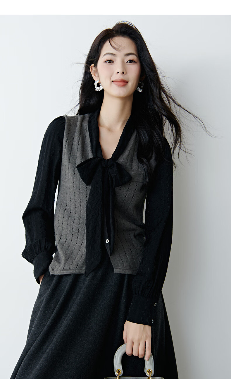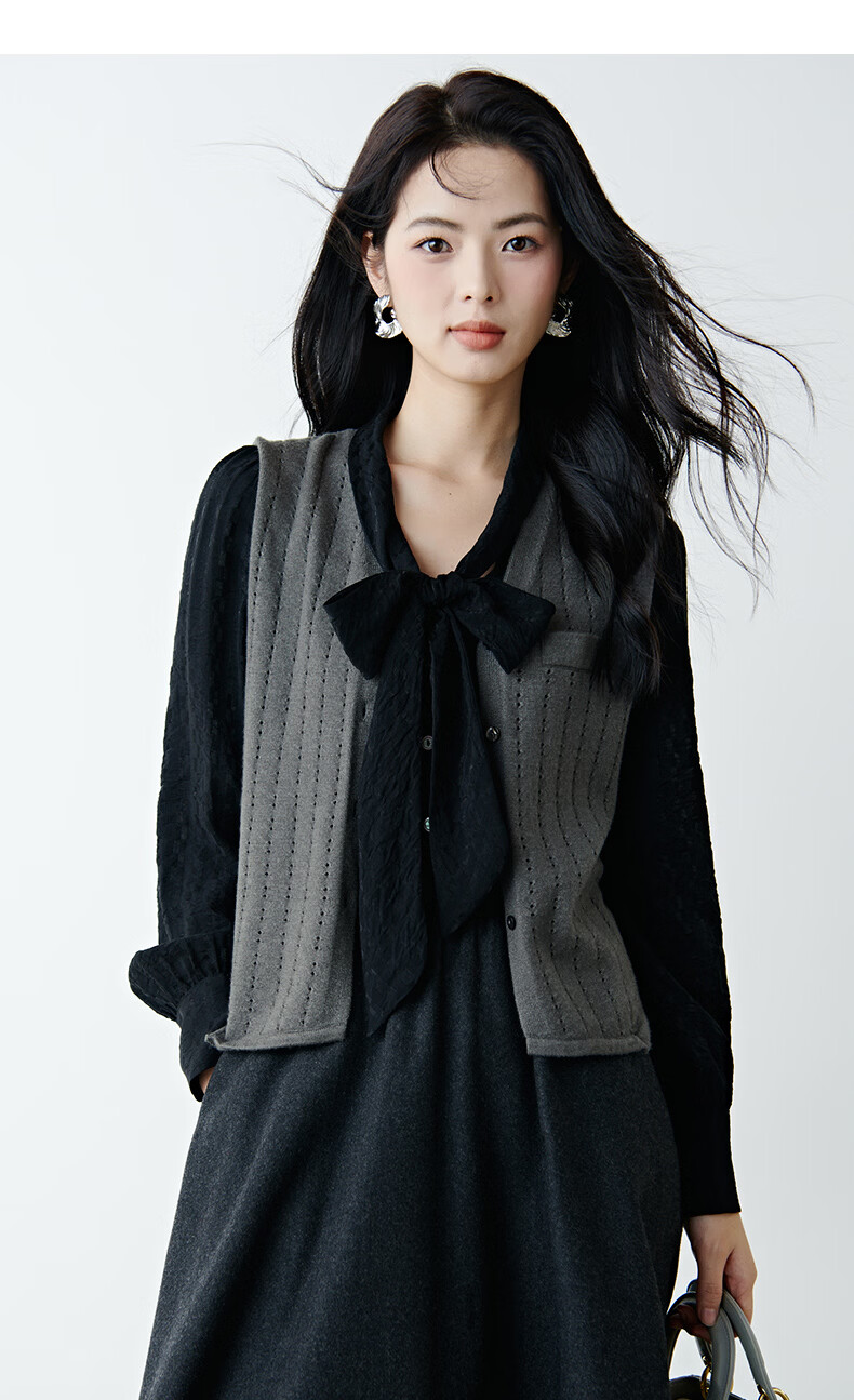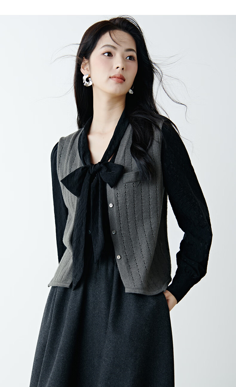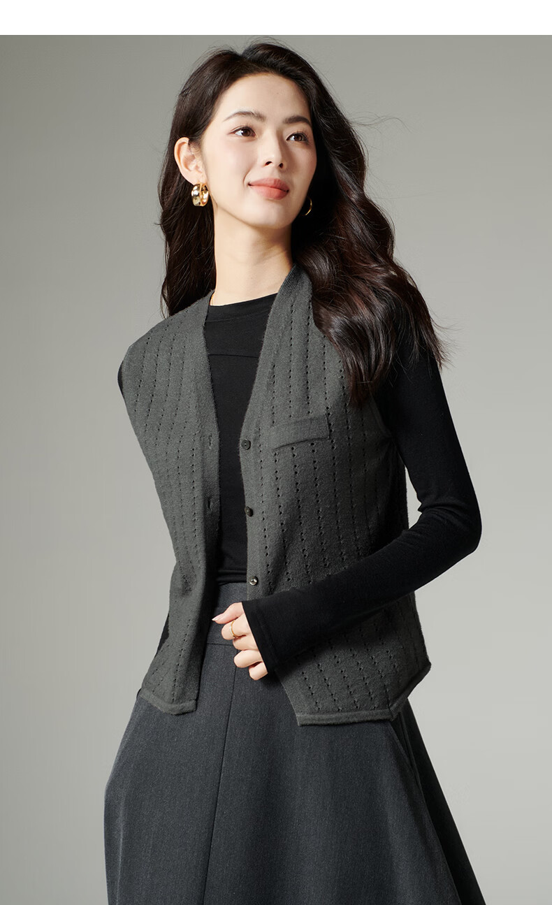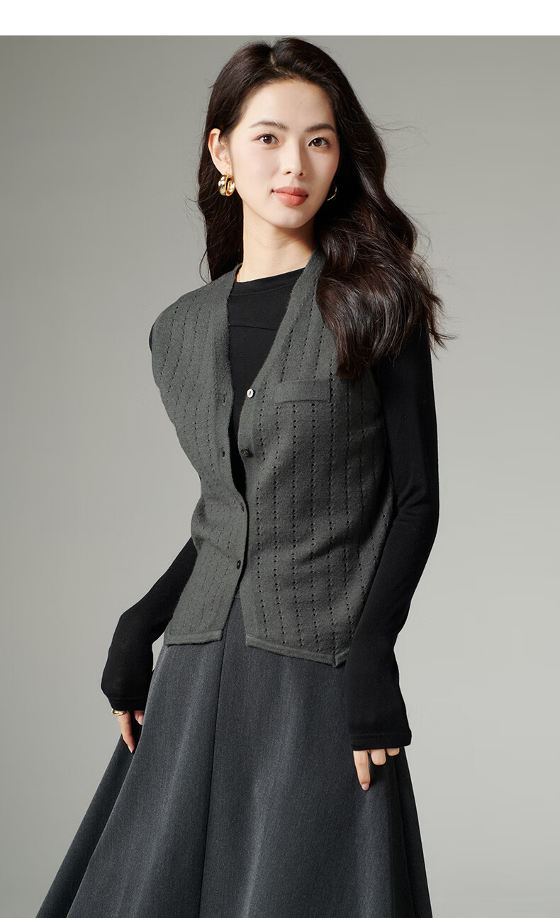 晚白【断码清仓】2026春季气质百搭上衣亲肤宽松透气针织马甲女 深灰色 M
