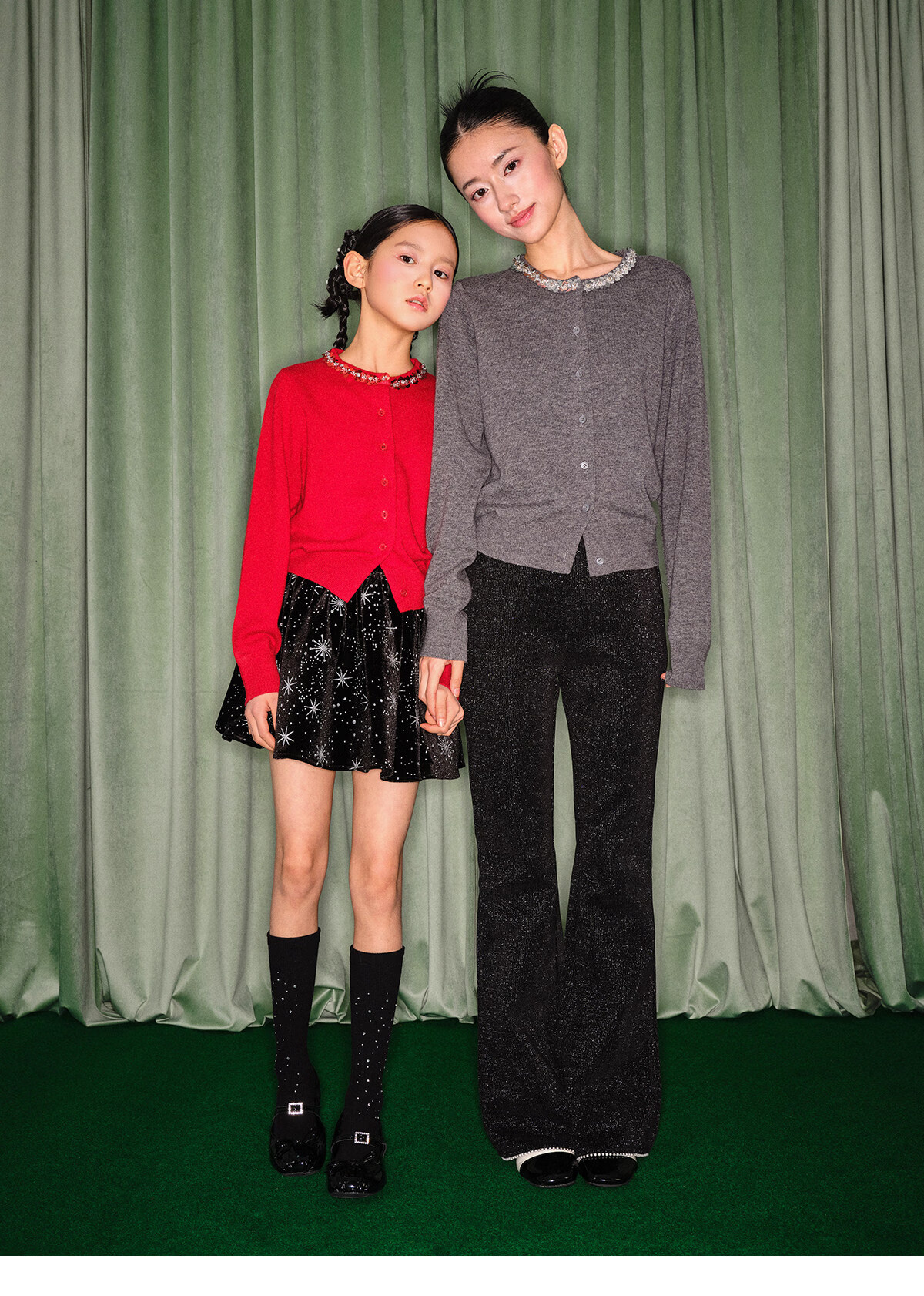 栀了成长记童装女童红色可爱亮片套装2025冬季儿童新年加绒两件套 红色 套装 100 cm