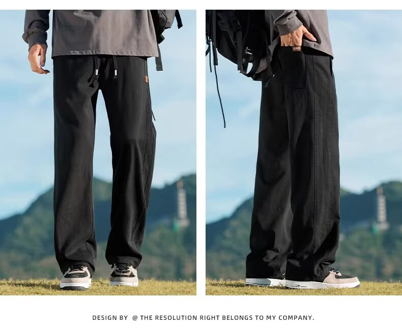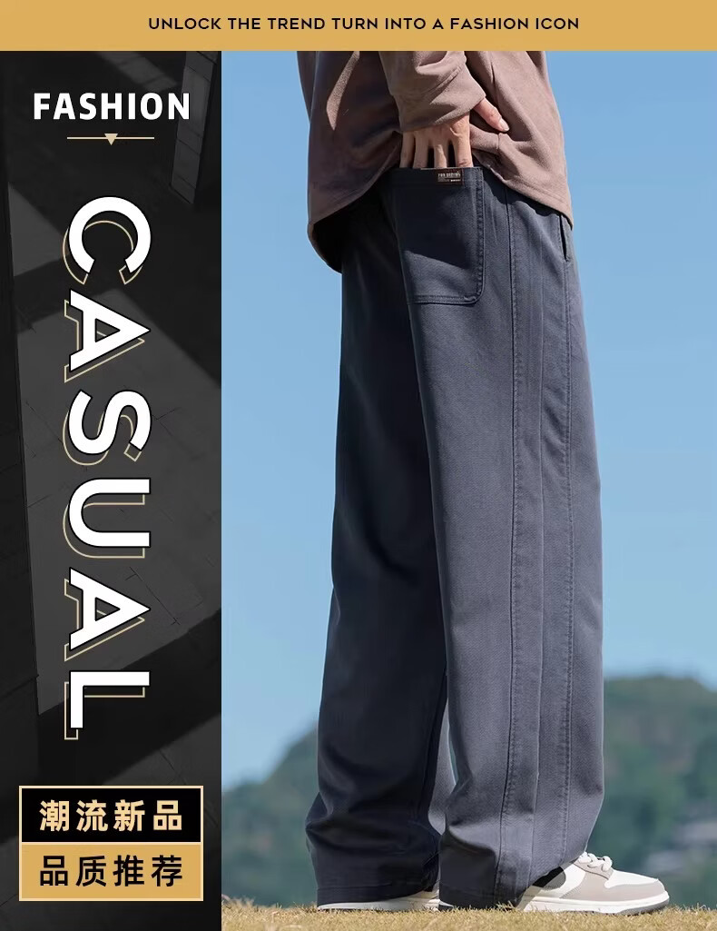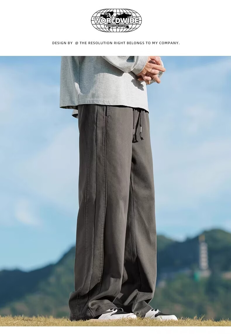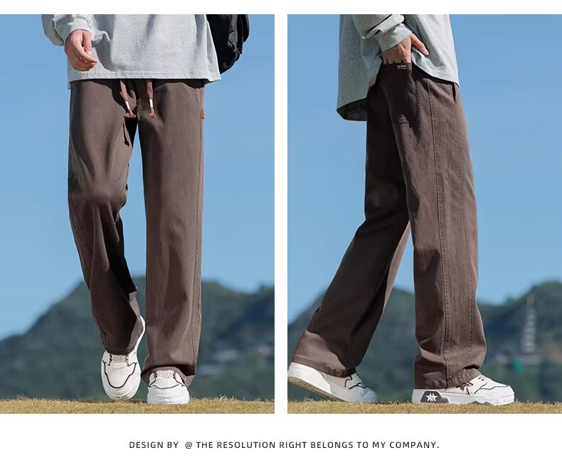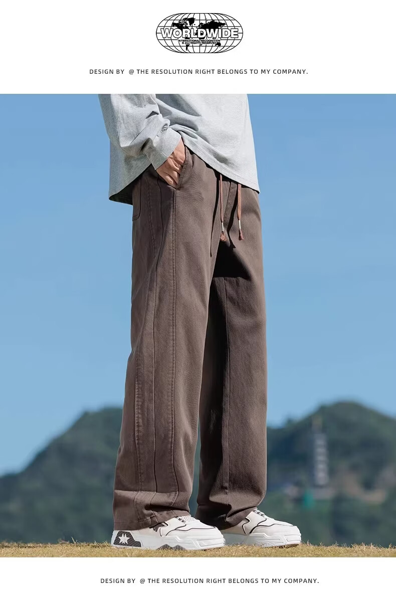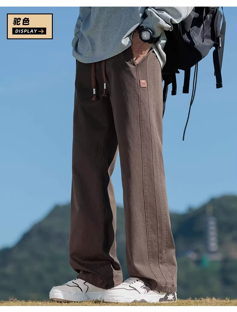 真维斯2026新款春夏季美式微喇简约男士工装裤宽松阔腿男生休闲长裤子 驼色 M