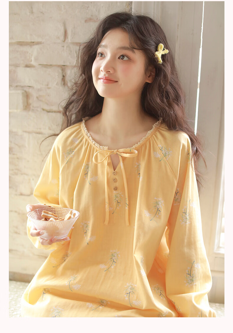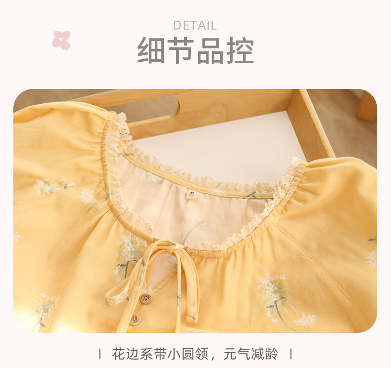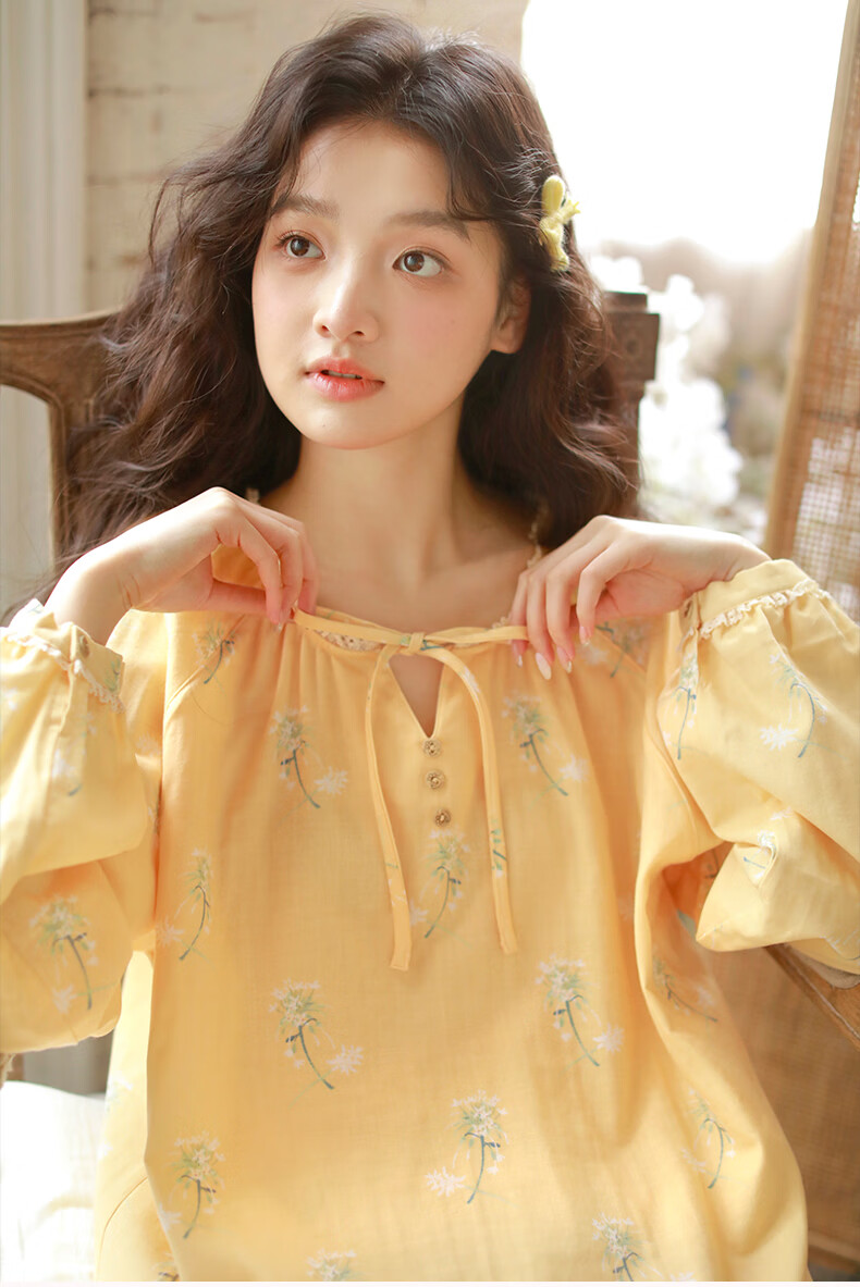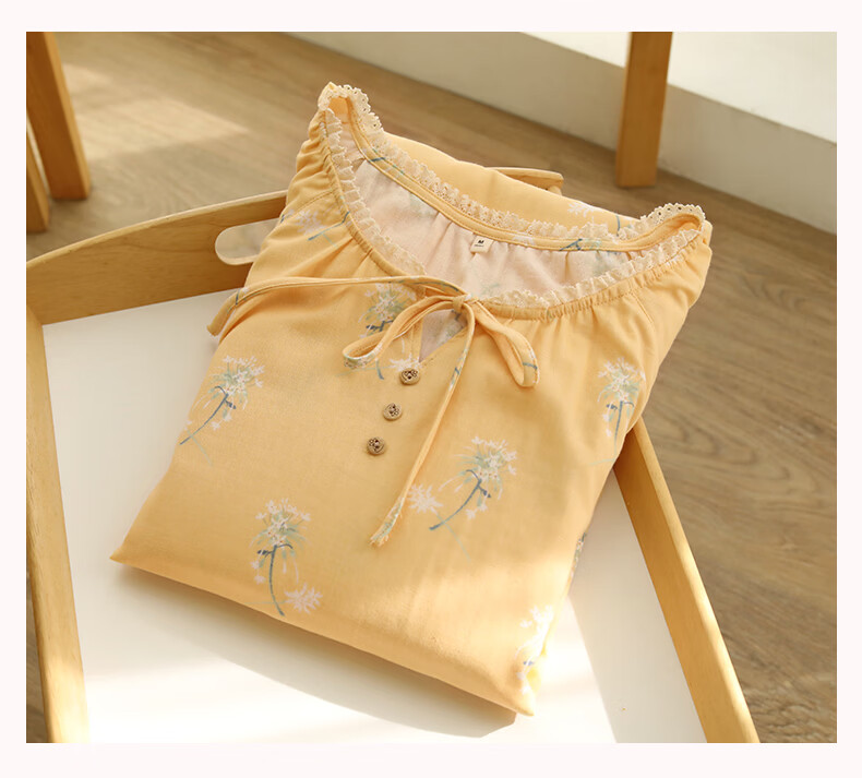 蔓秋 MEJU《蒲公英》圆领长袖女士家居服套装 黄色 M 110斤以内