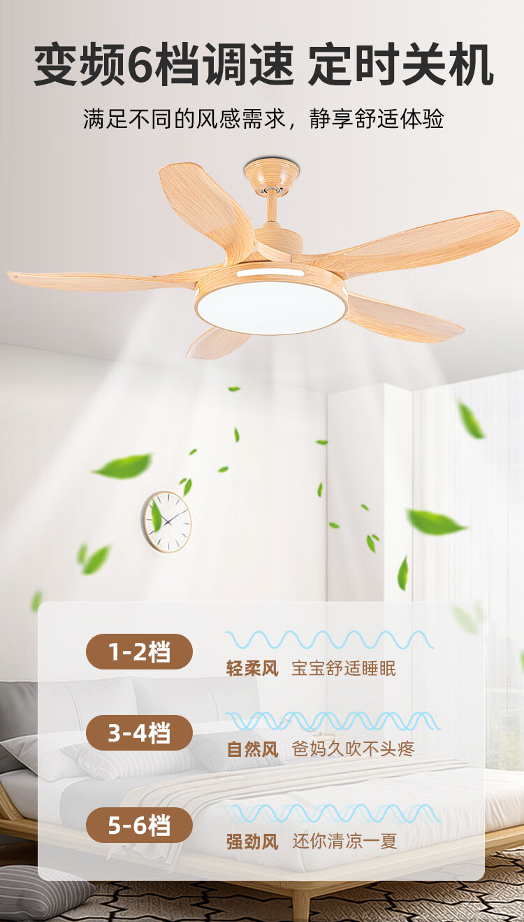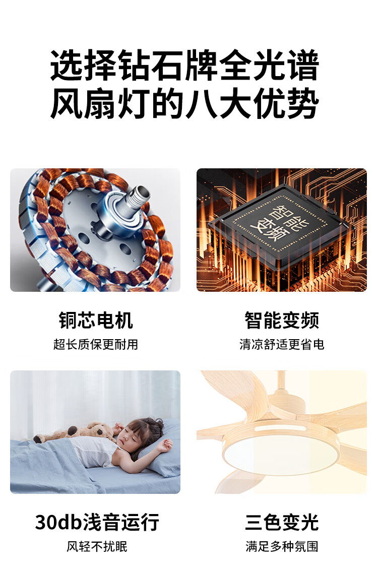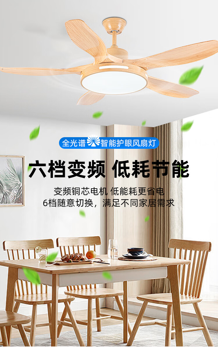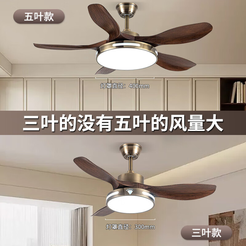 钻石牌(DIAMOND)风扇灯餐厅吊扇客厅吊灯带风扇卧室吸顶吊顶电扇灯直叶扇一体 古铜色吊杆款【变频纯铜电机】 42寸三叶+36W灯6档风速遥控