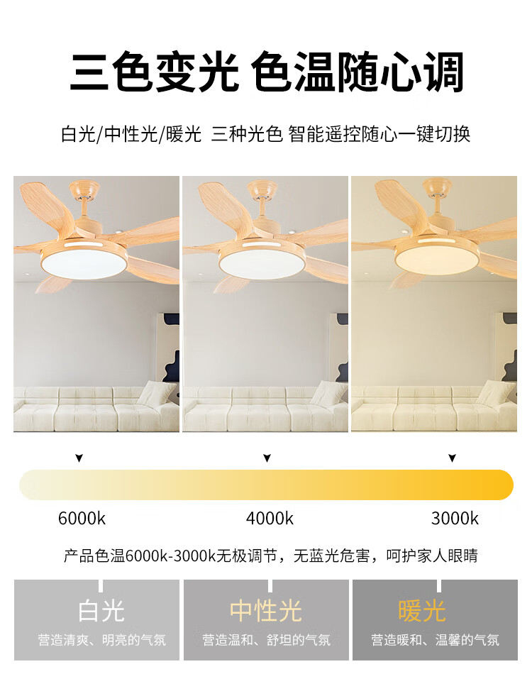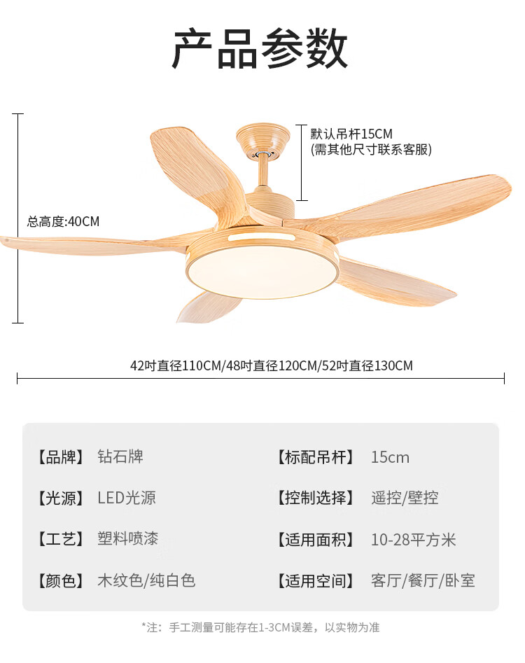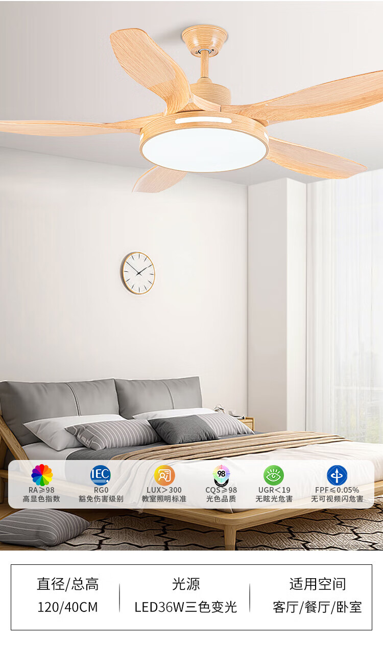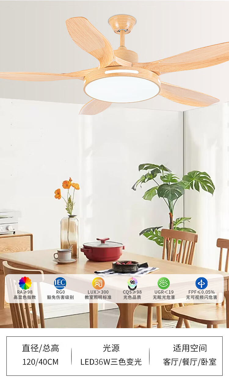 钻石牌(DIAMOND)风扇灯餐厅吊扇客厅吊灯带风扇卧室吸顶吊顶电扇灯直叶扇一体 古铜色吊杆款【变频纯铜电机】 42寸三叶+36W灯6档风速遥控