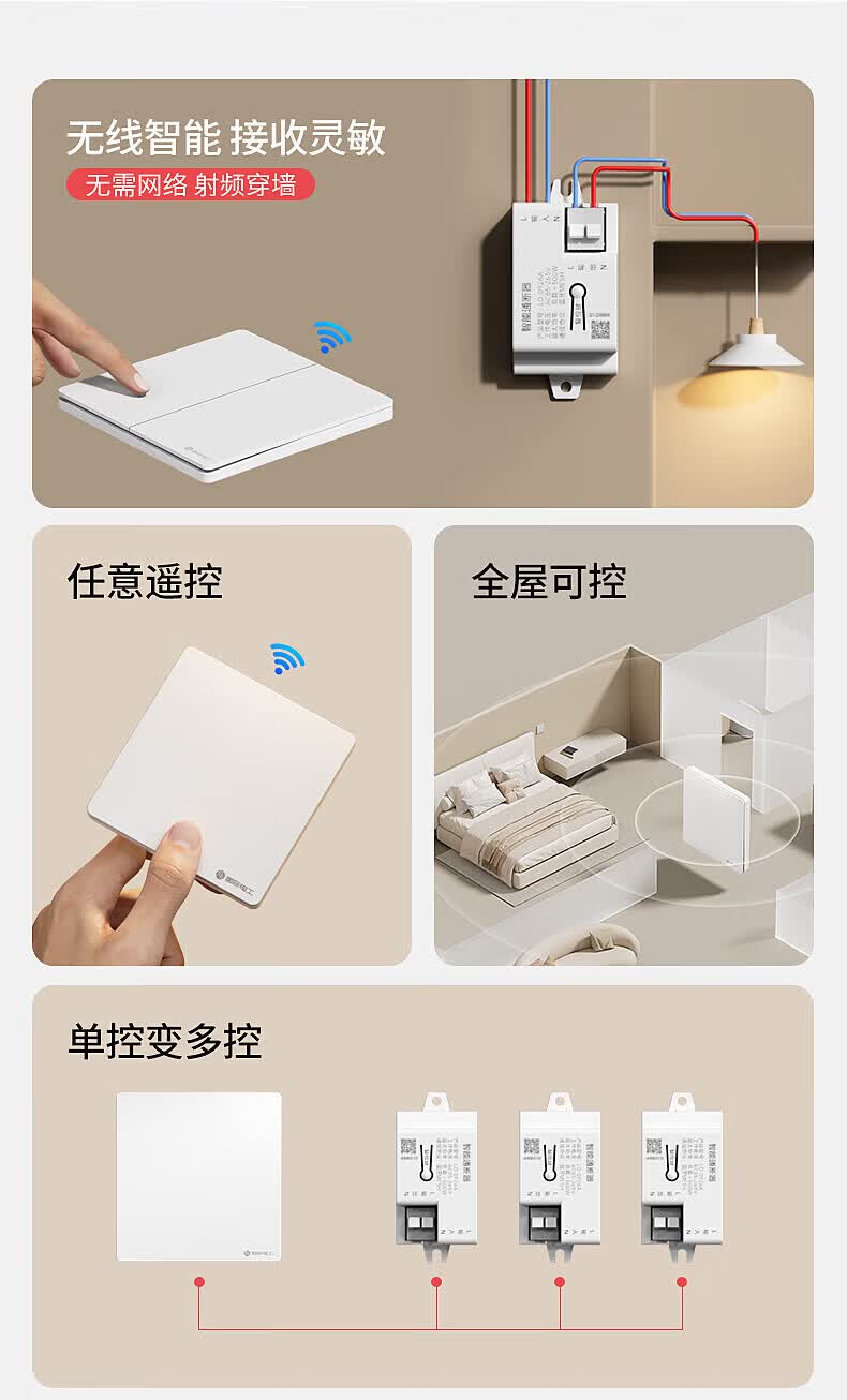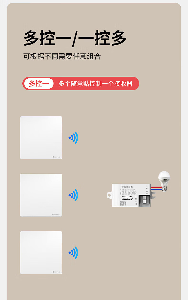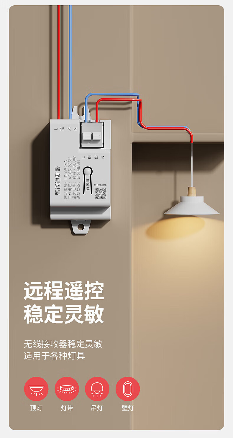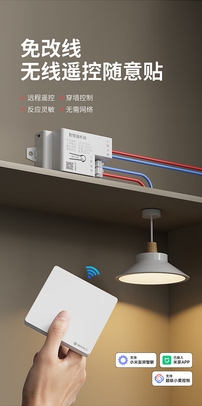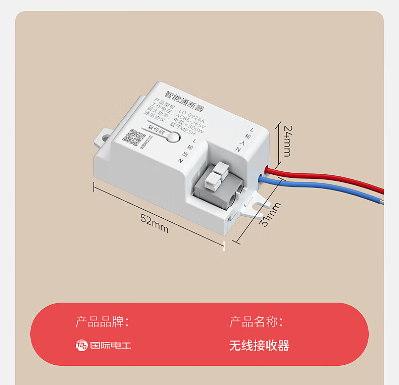 国际电工已接入米家APP无线遥控随意贴开关智能接收器支持小爱同学控制 10A智能通断器(蓝牙mesh)