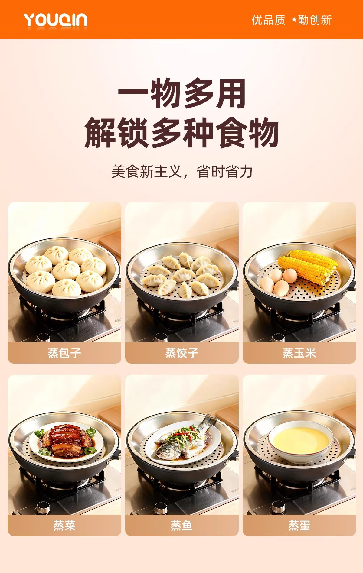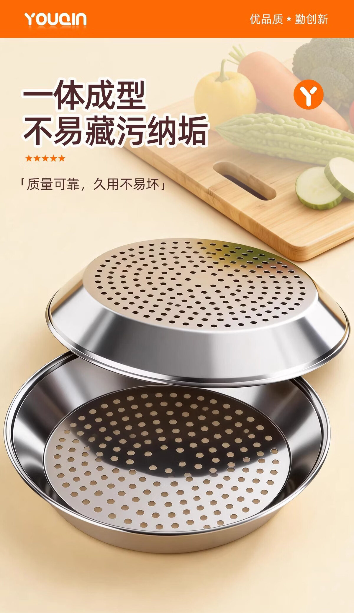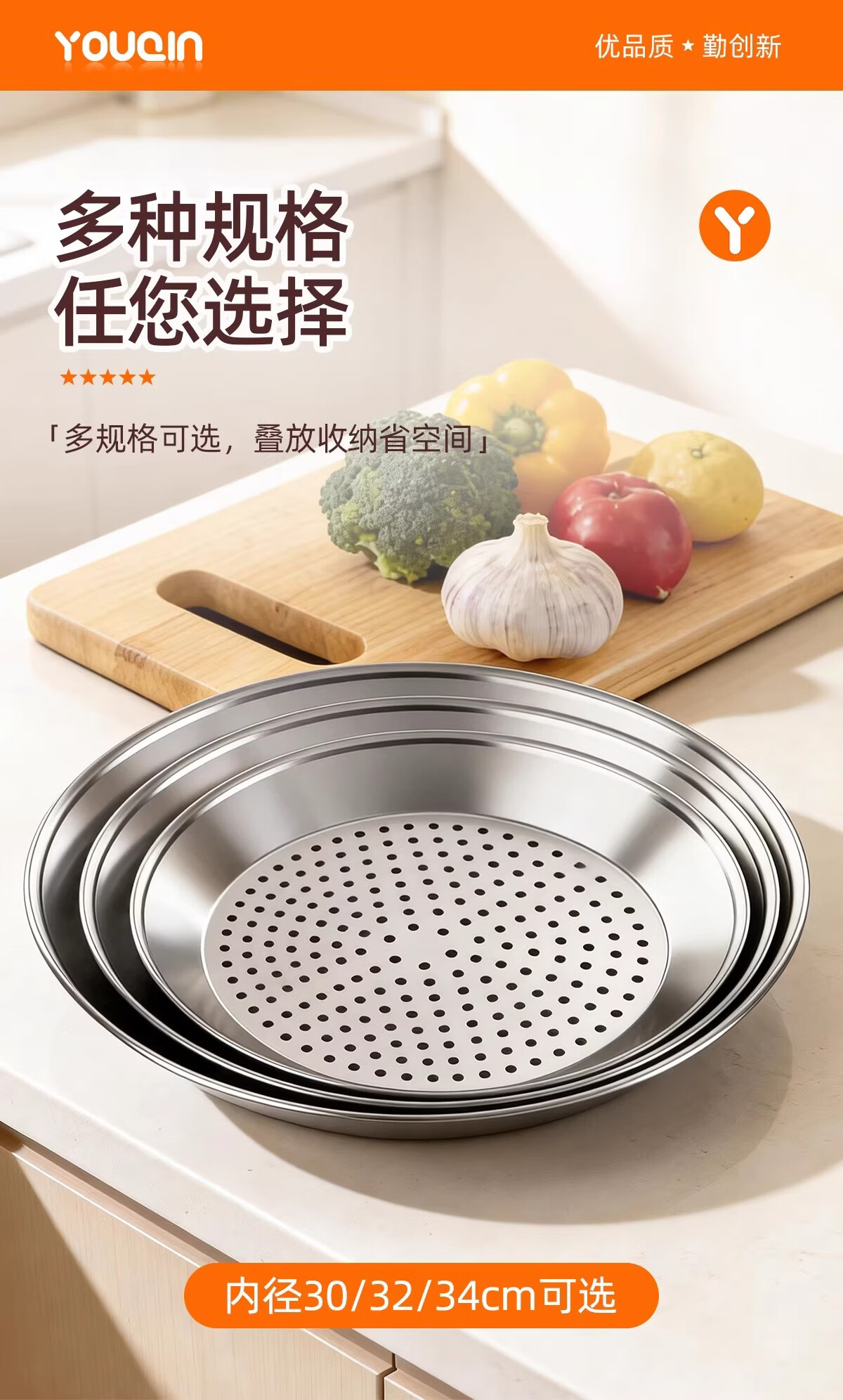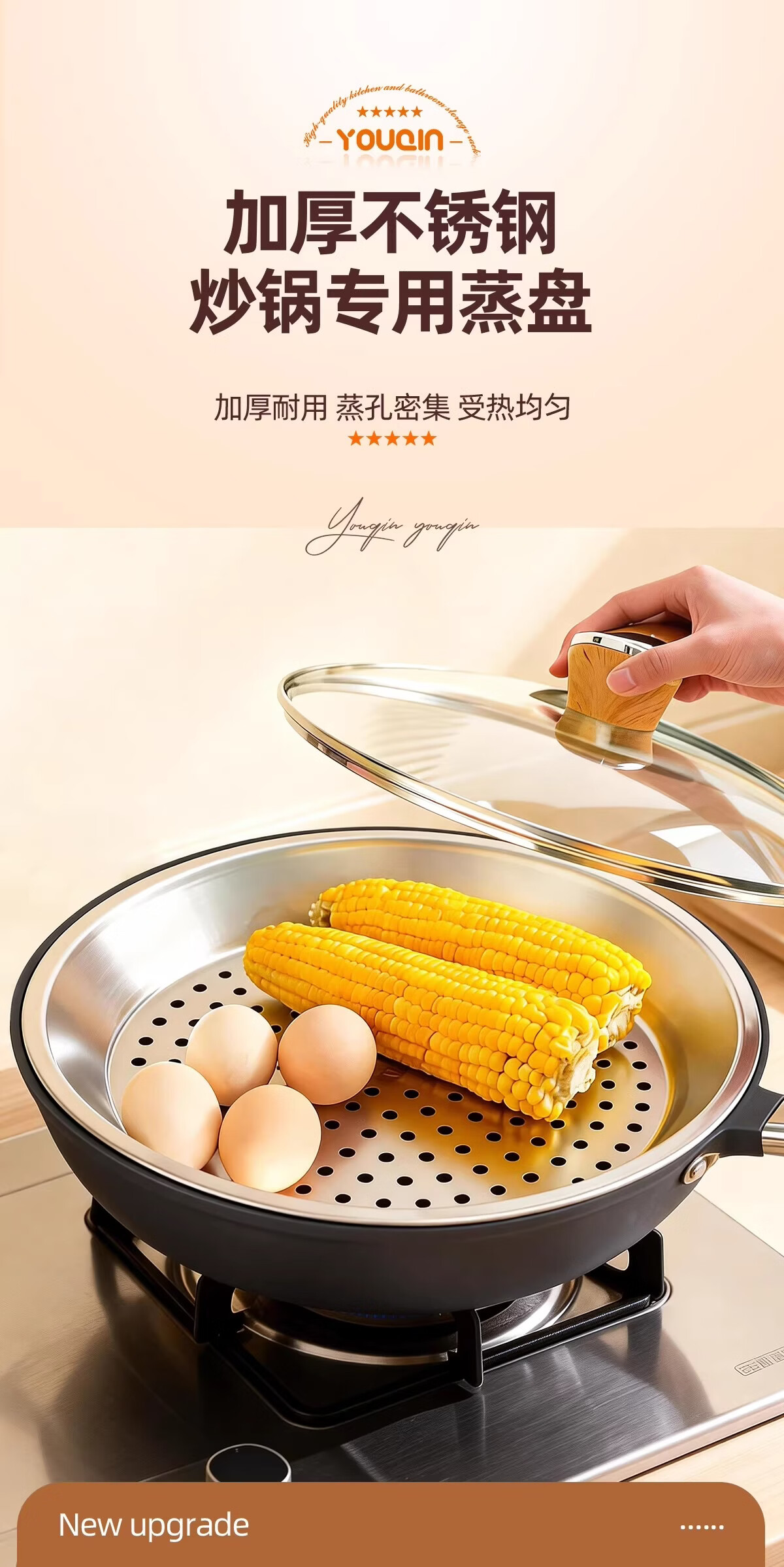 加度 不锈钢蒸盘家用圆形炒锅专用蒸格蒸片蒸屉蒸笼蒸架蒸盒蒸锅架 【电镀不锈钢】 蒸盘30cm【适合30cm炒锅】