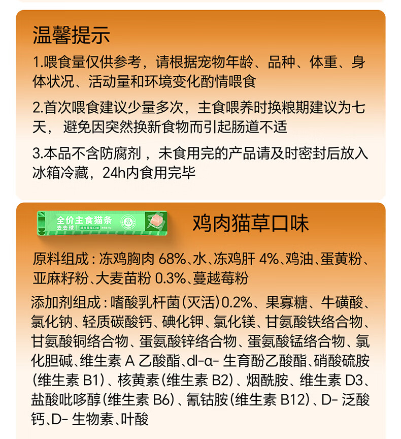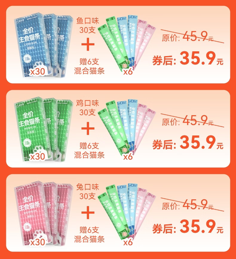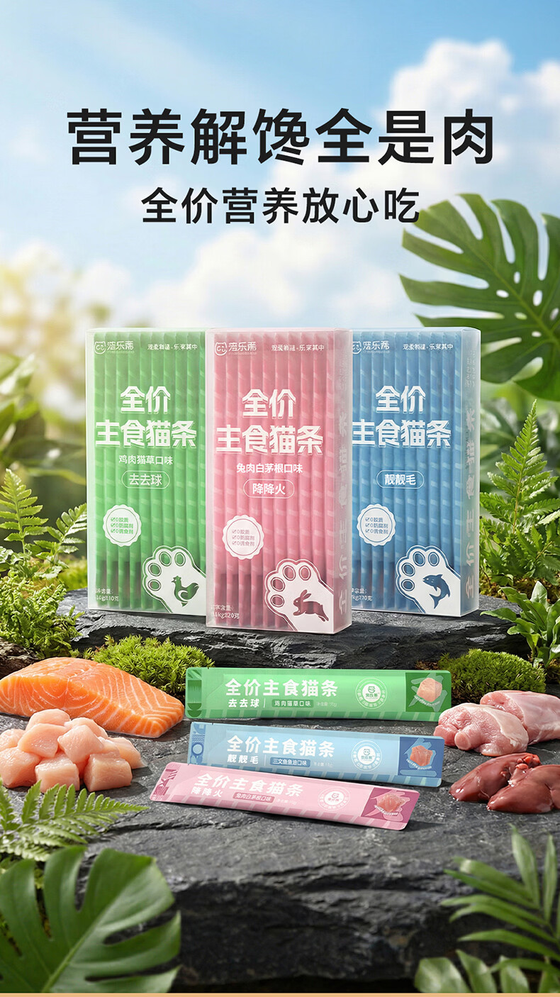 宠乐乖全价主食猫条成猫幼猫湿粮鸡兔肉三文鱼猫草鱼油混合口味15g*60支
