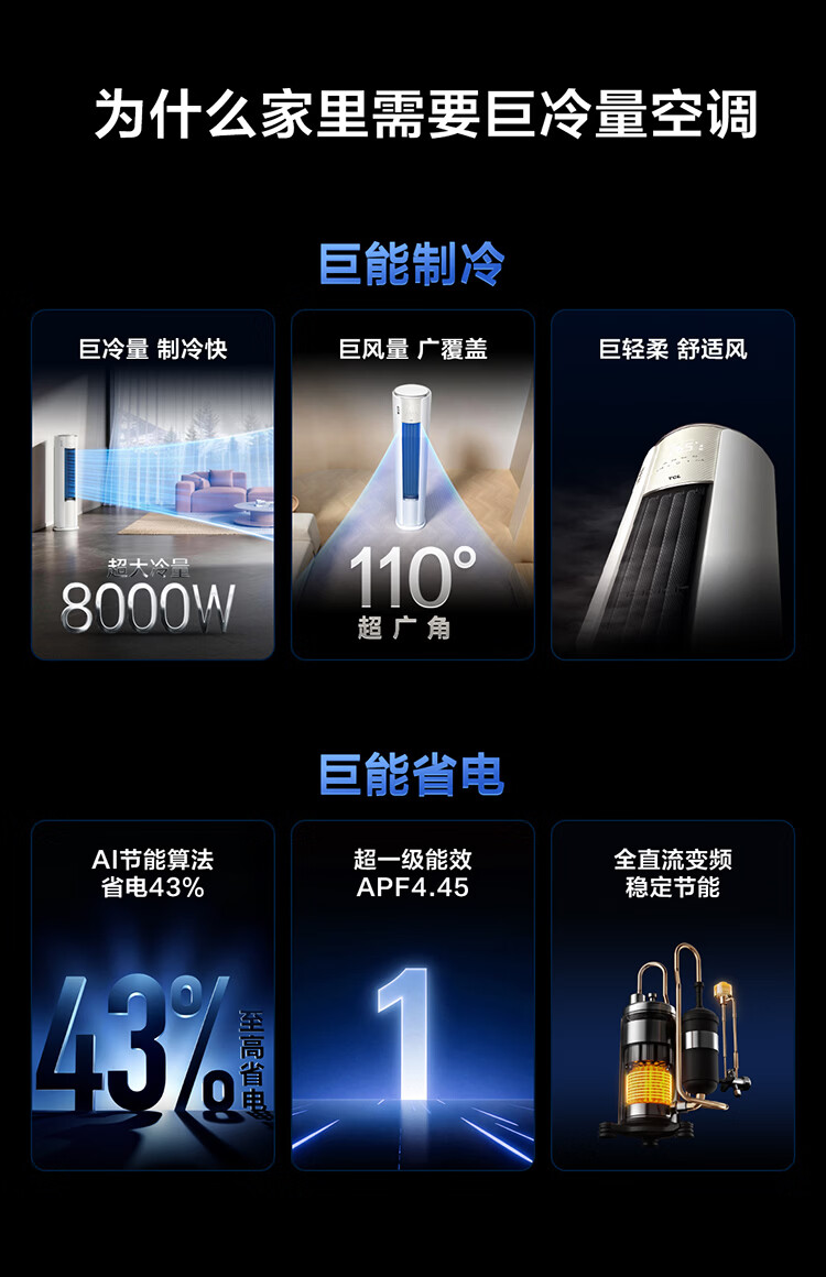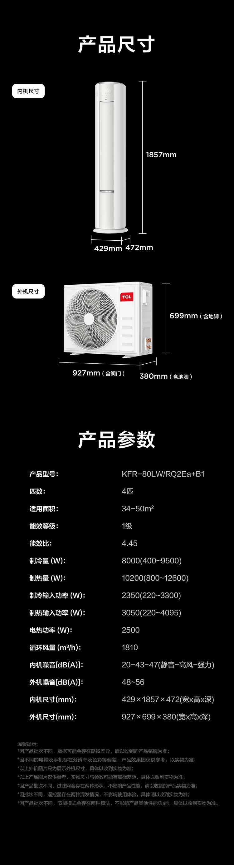TCL空调 巨冷量 4匹柜机 商居两用 新一级能效变频 大风量速冷热KFR-80LW/RQ2Ea+B1