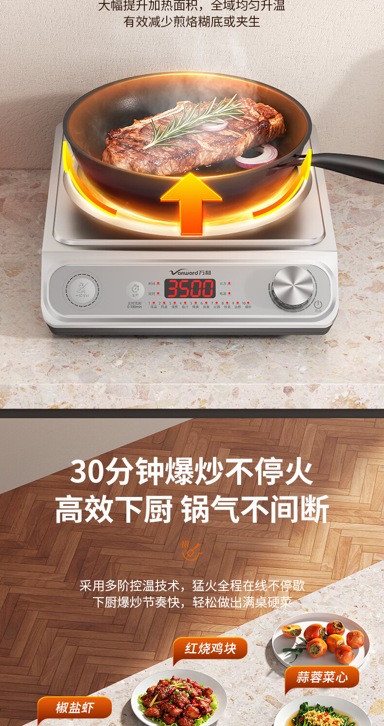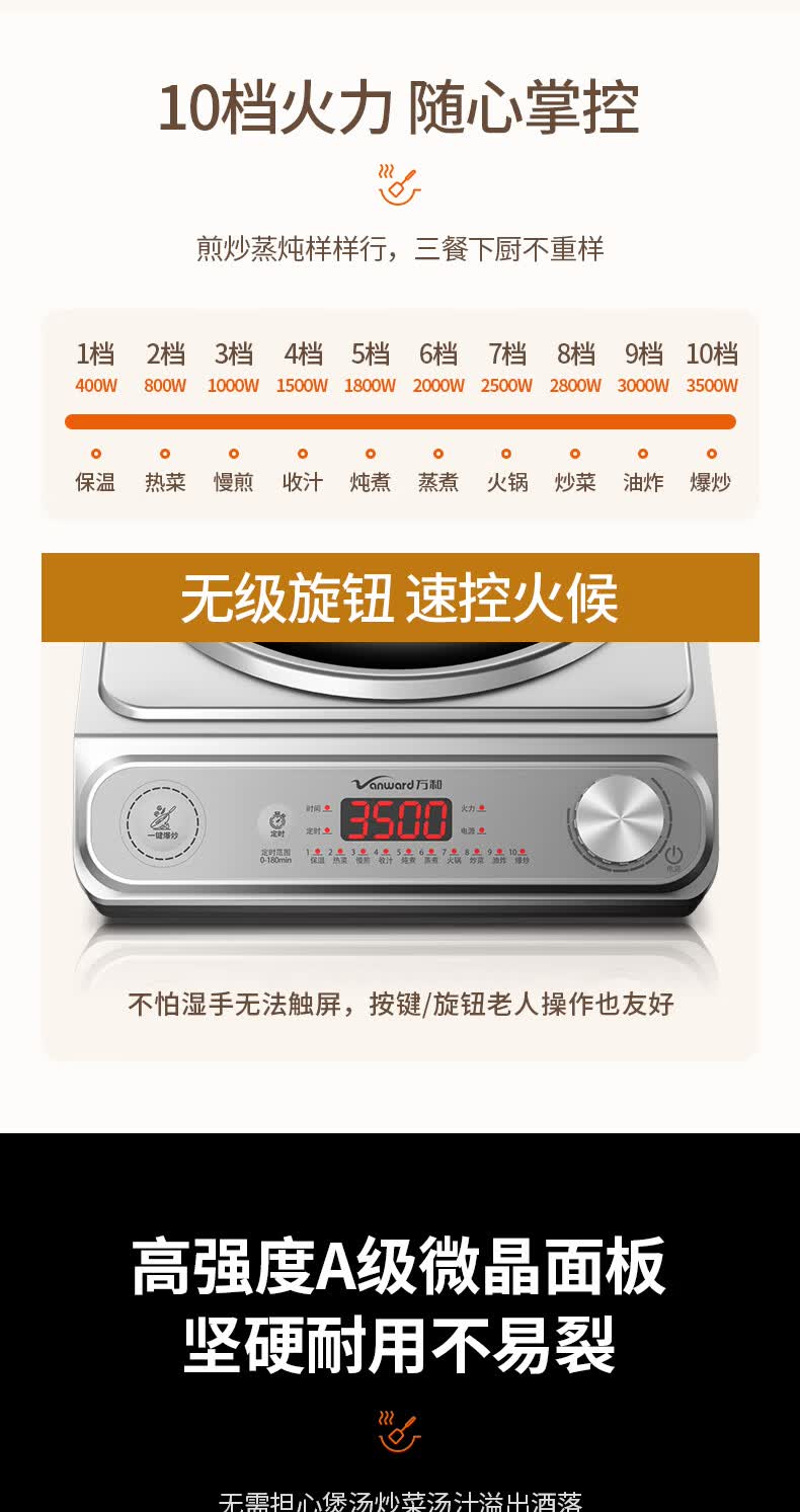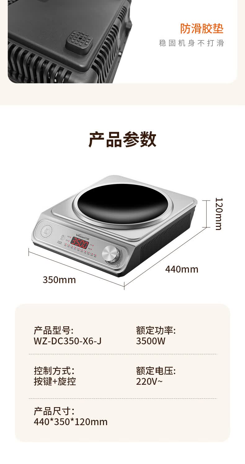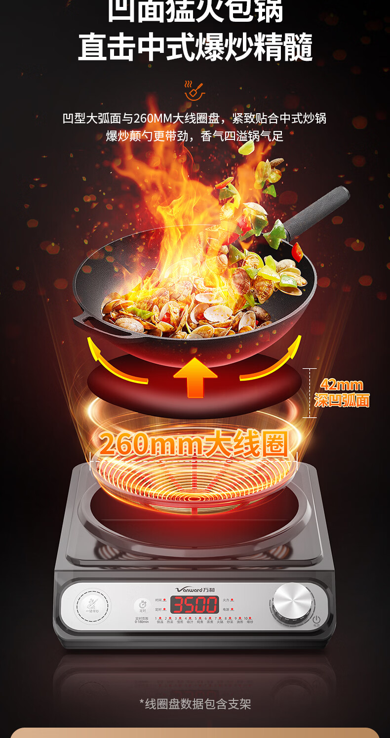万和(Vanward)电磁炉凹面电磁炉电磁灶家用3500W大功率猛火多功能电磁炉深凹弧面凹灶WZ-DC350-X6-J