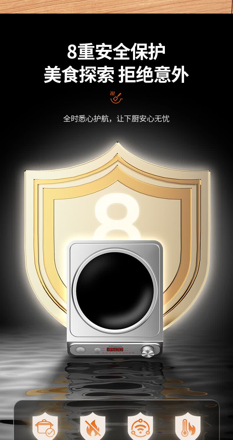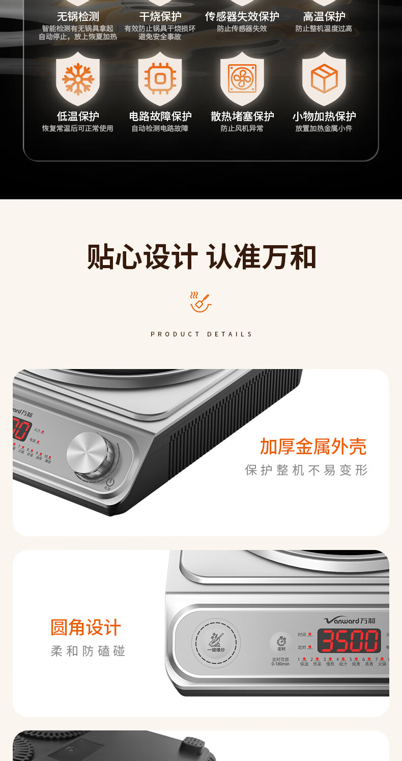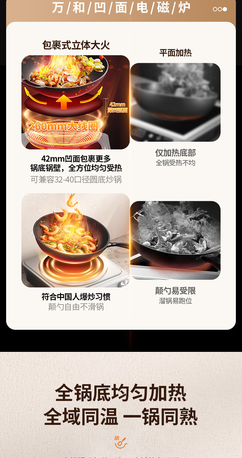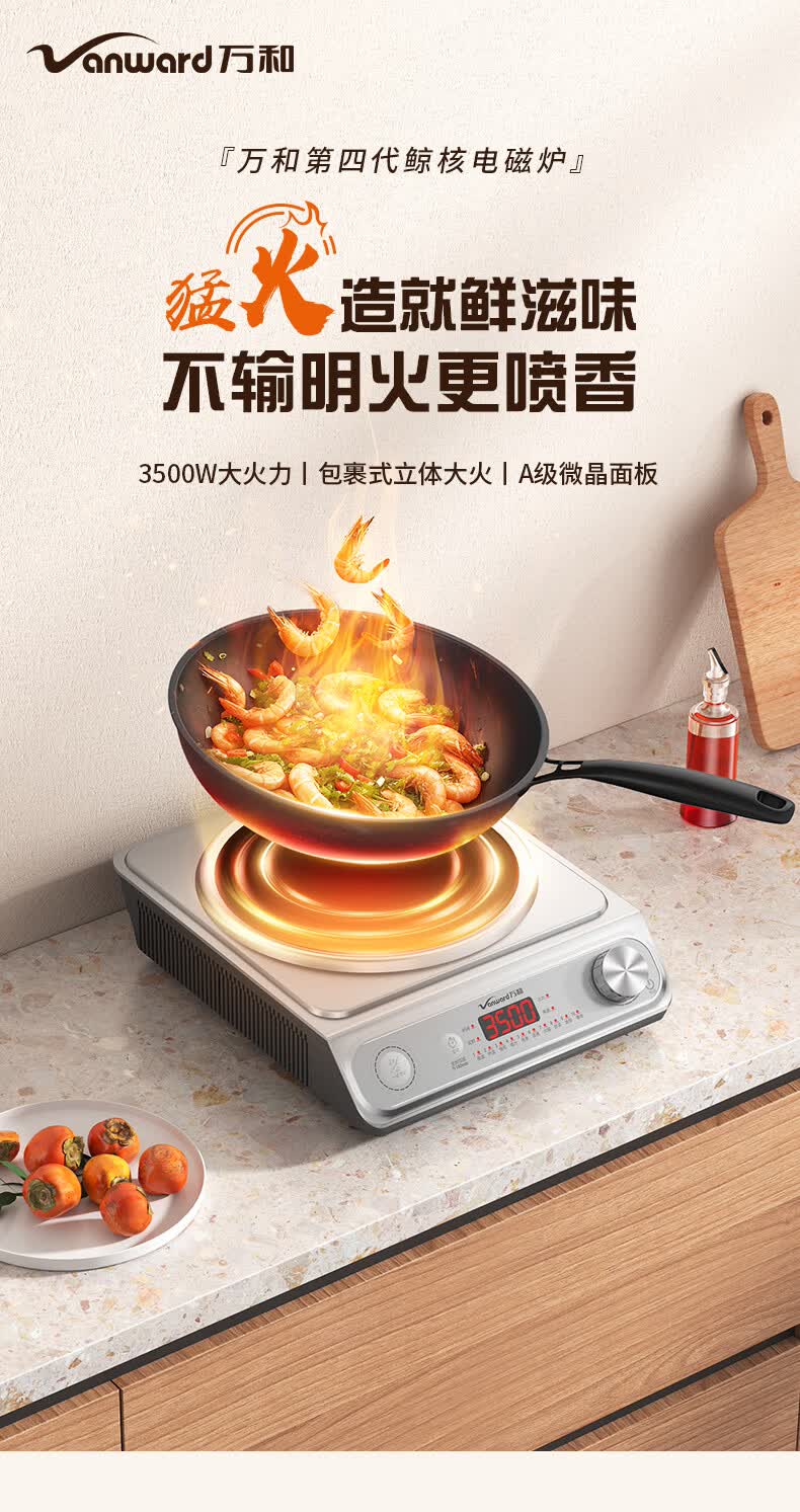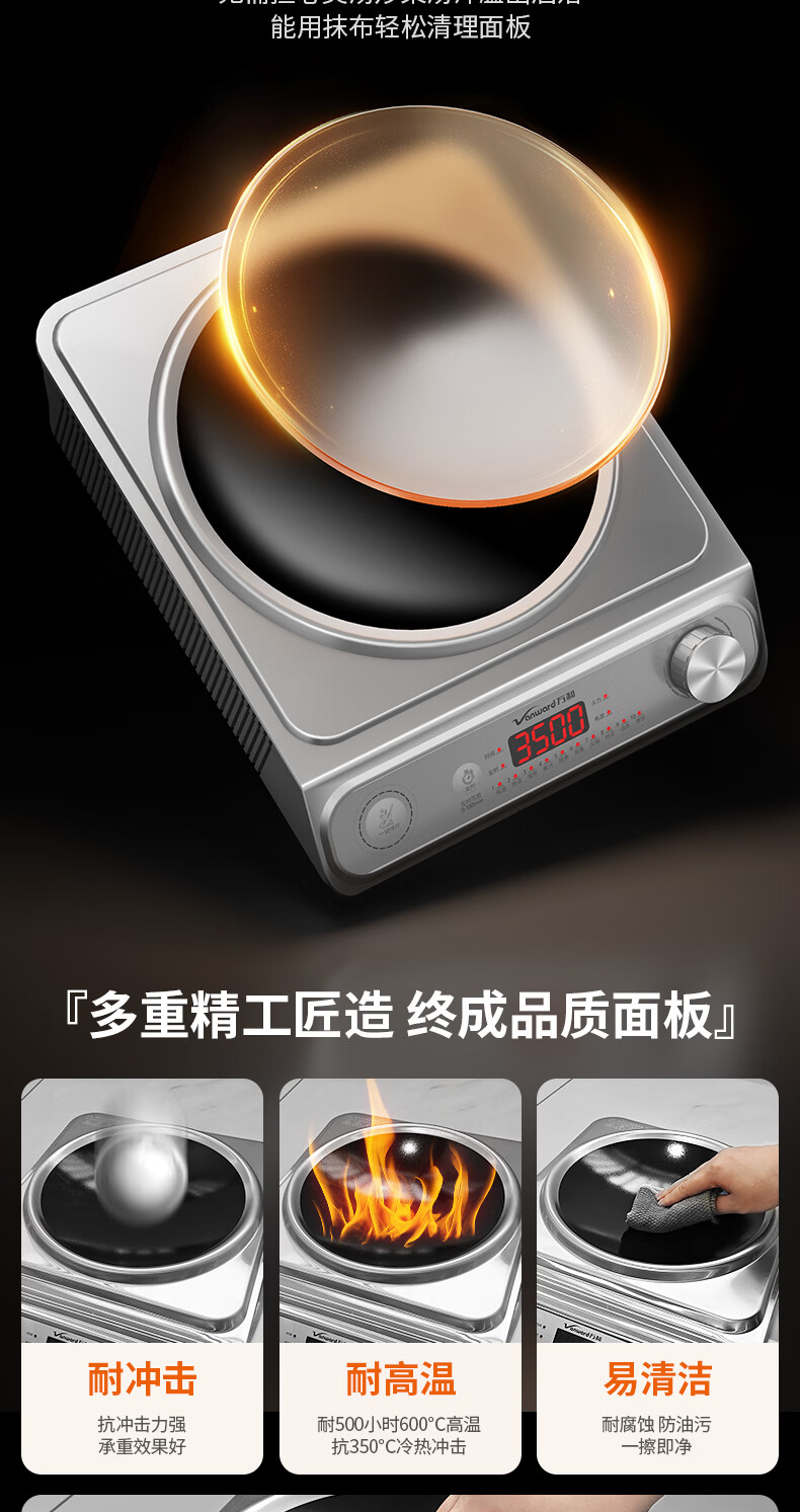 万和(Vanward)电磁炉凹面电磁炉电磁灶家用3500W大功率猛火多功能电磁炉深凹弧面凹灶WZ-DC350-X6-J