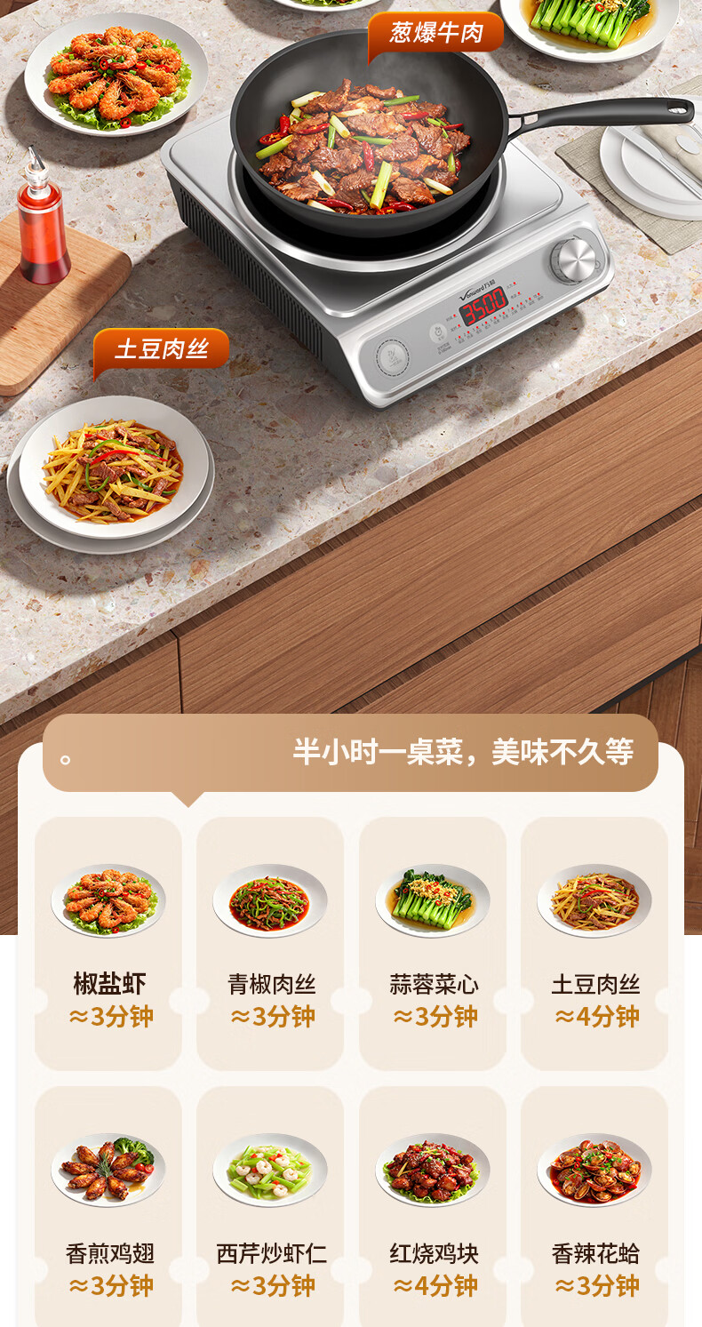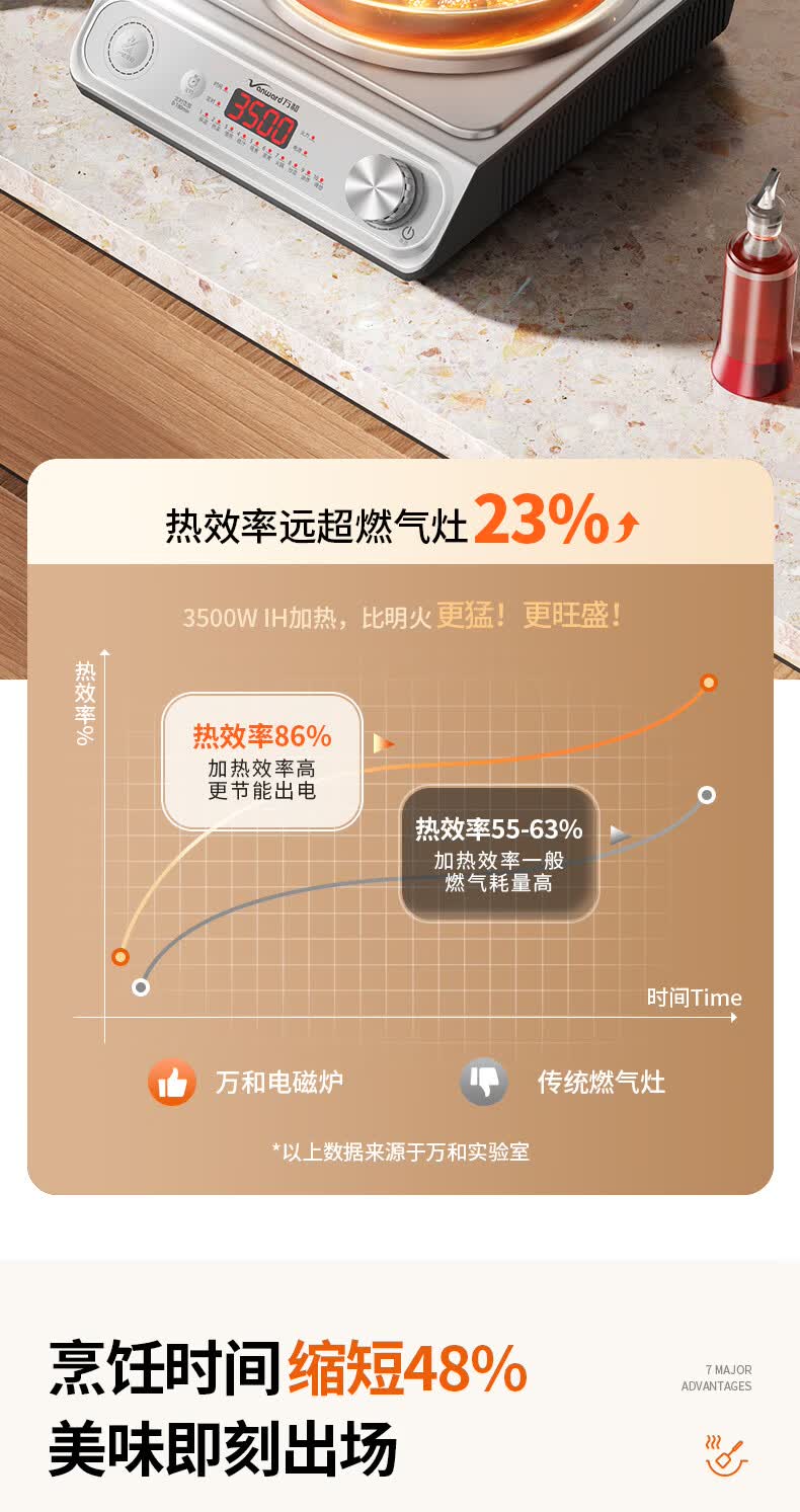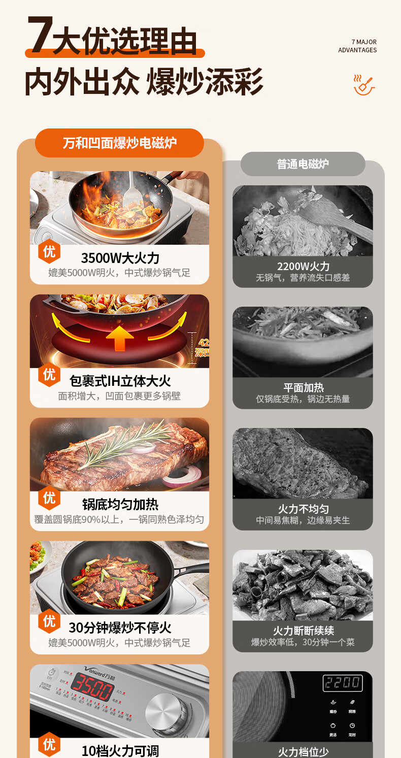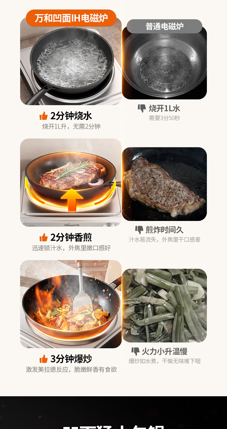 万和(Vanward)电磁炉凹面电磁炉电磁灶家用3500W大功率猛火多功能电磁炉深凹弧面凹灶WZ-DC350-X6-J