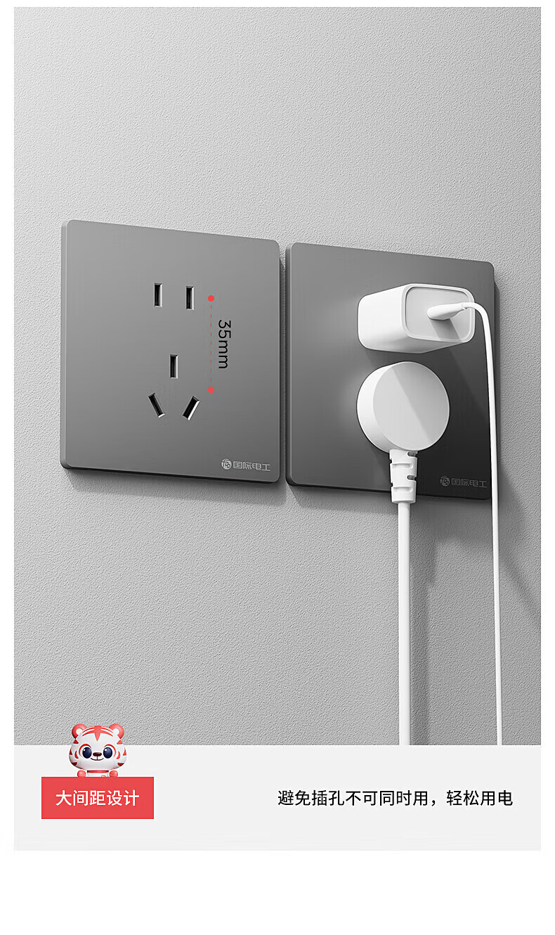国际电工86型开关插座面板暗装经典小板家用一开五孔单双控空调16A电源插 五孔插座