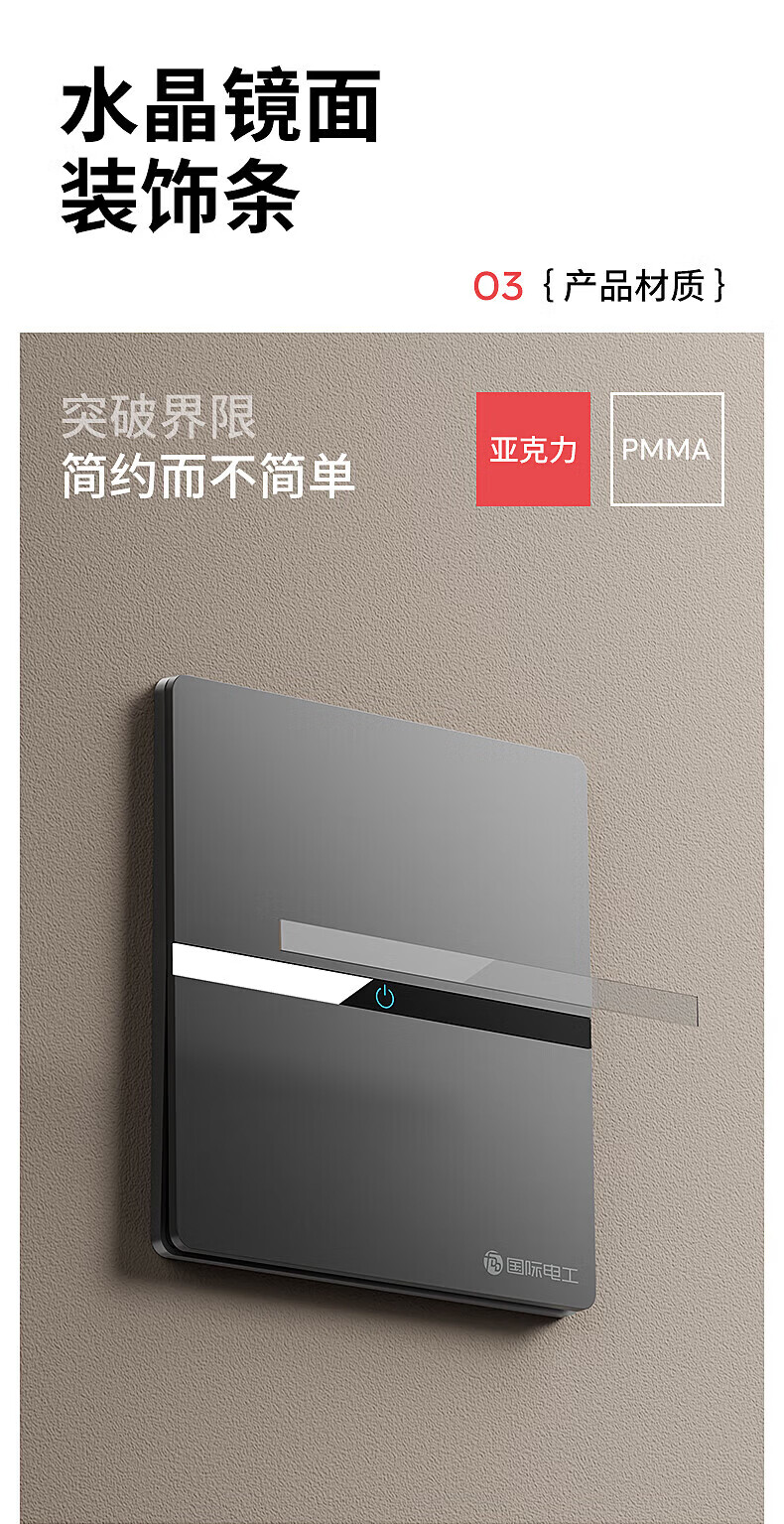 国际电工(FDD)超薄水晶玻璃开关插座面板家用墙壁86型单双控二三插空调电源插座 五孔插座