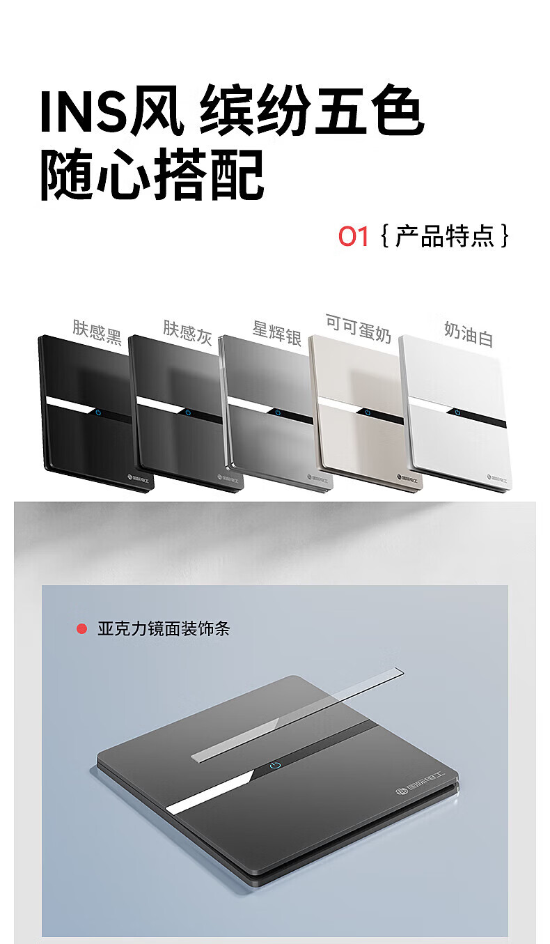 国际电工(FDD)86型开关插座全屋套装超薄面板家用墙壁暗装电源单双控五孔插座 一开单控