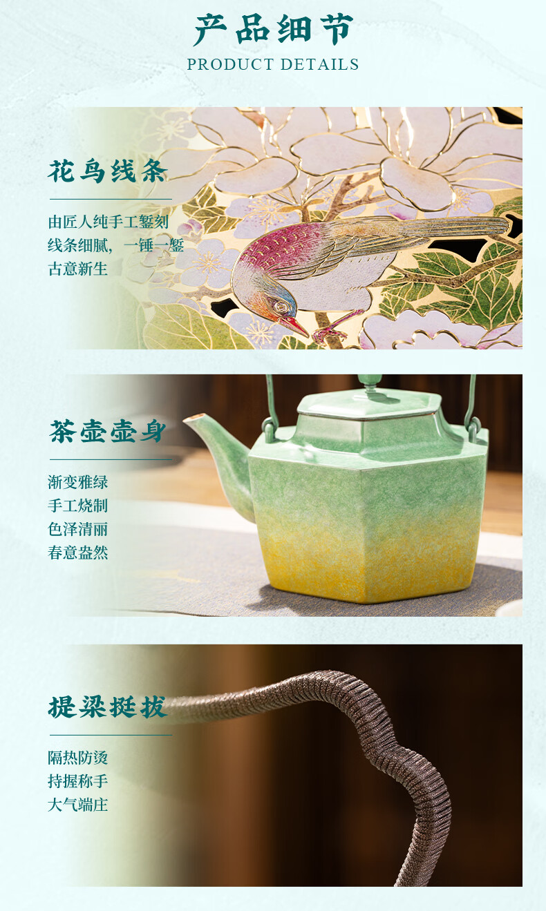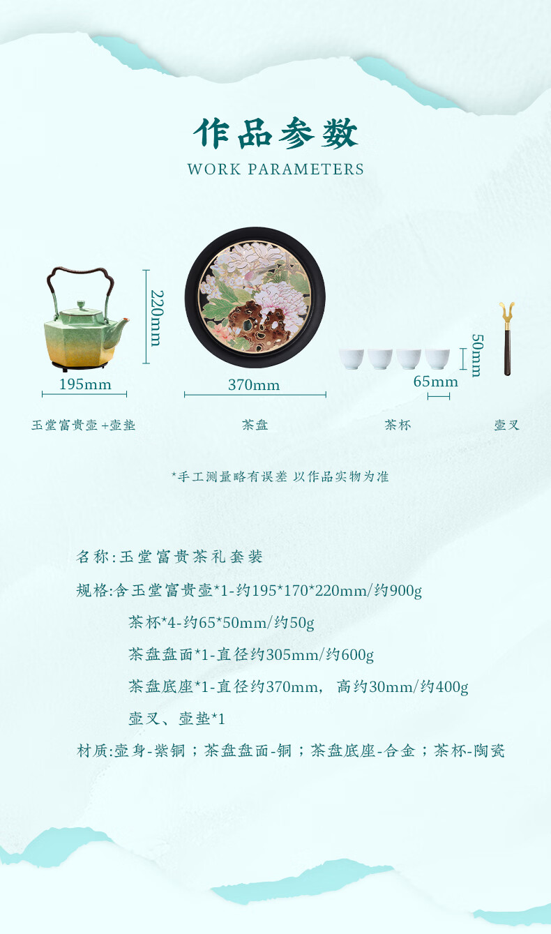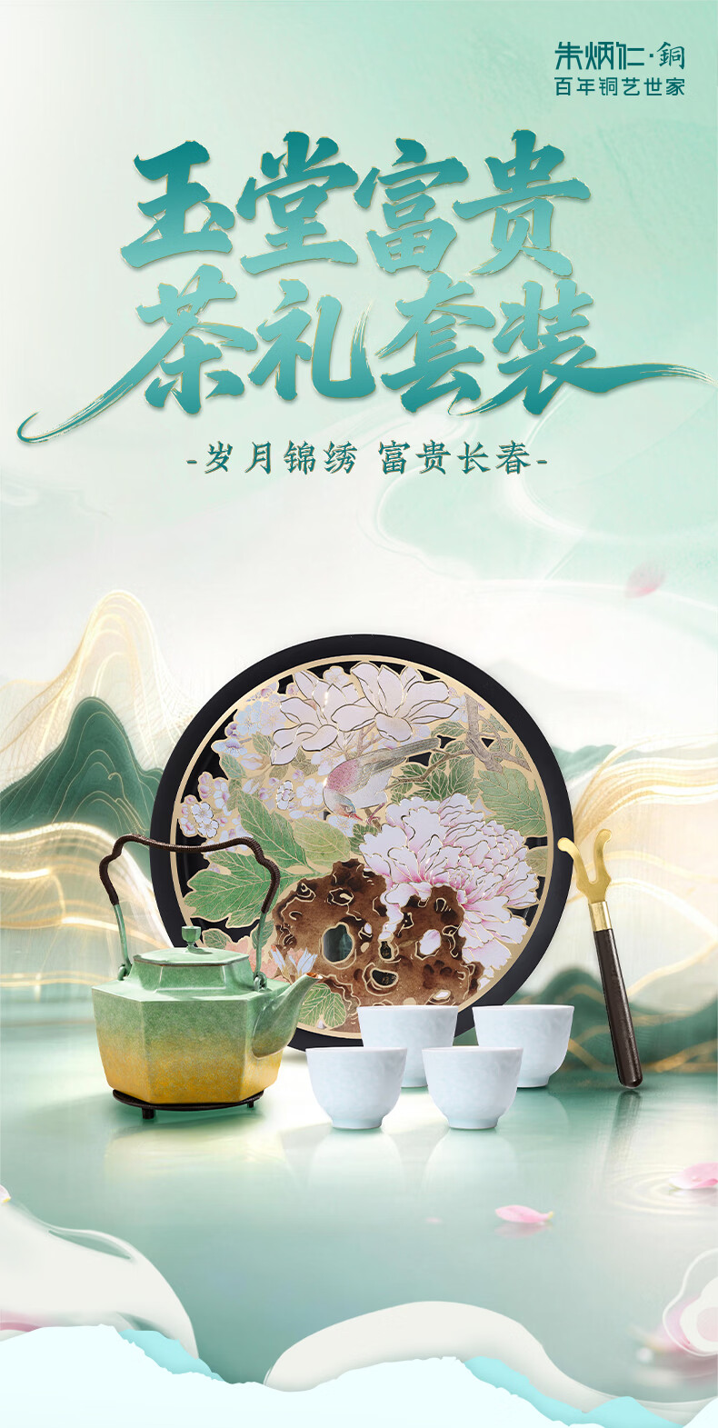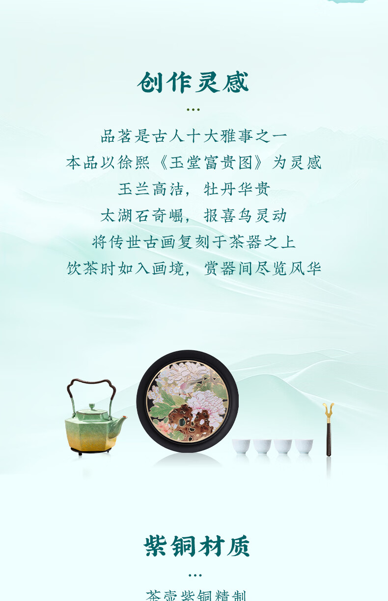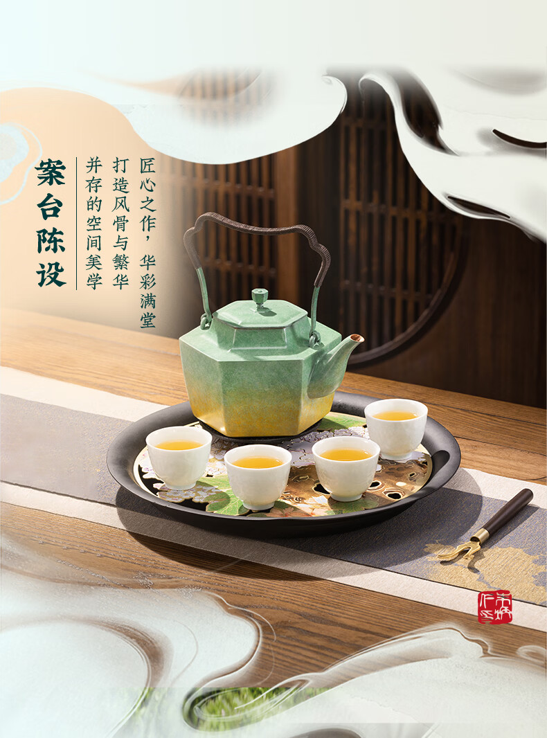 朱炳仁铜 玉堂富贵茶礼套装 铜壶铜茶盘手工铜壶茶杯茶盘养生茶壶茶具 玉堂富贵茶礼套装