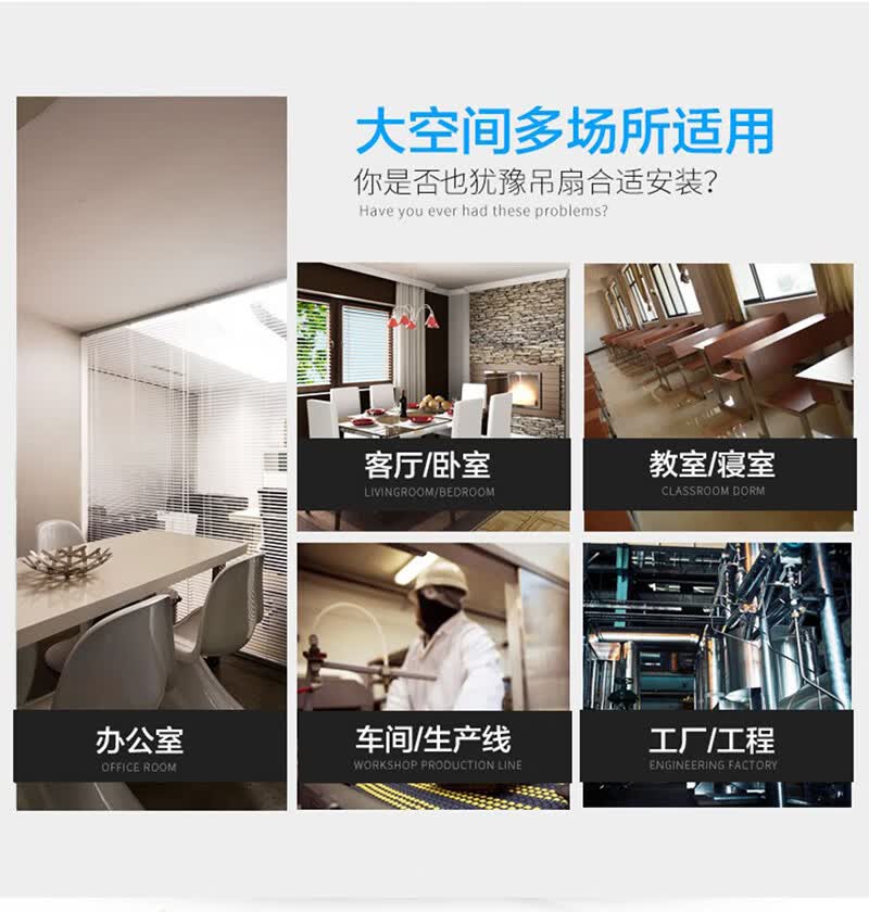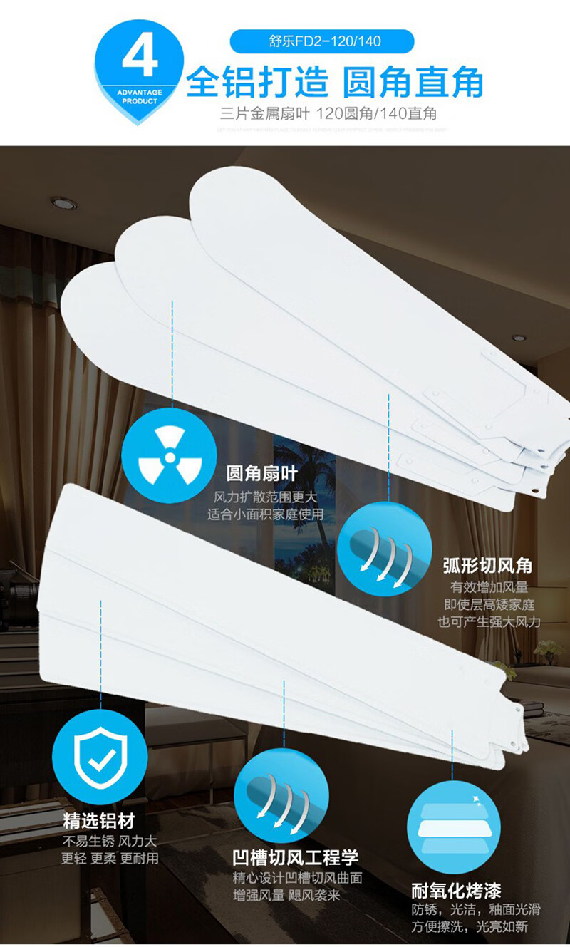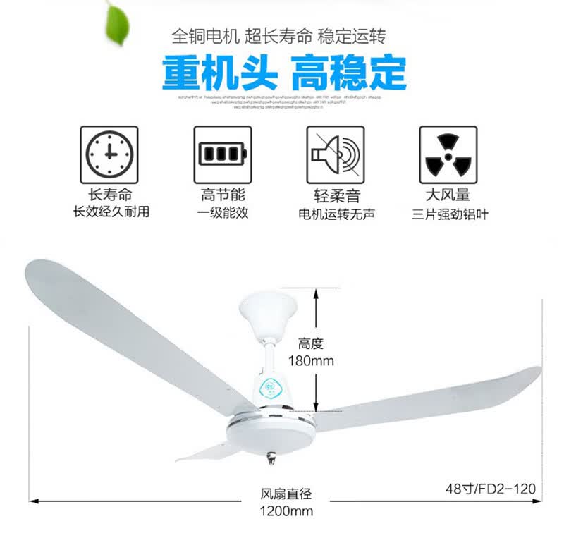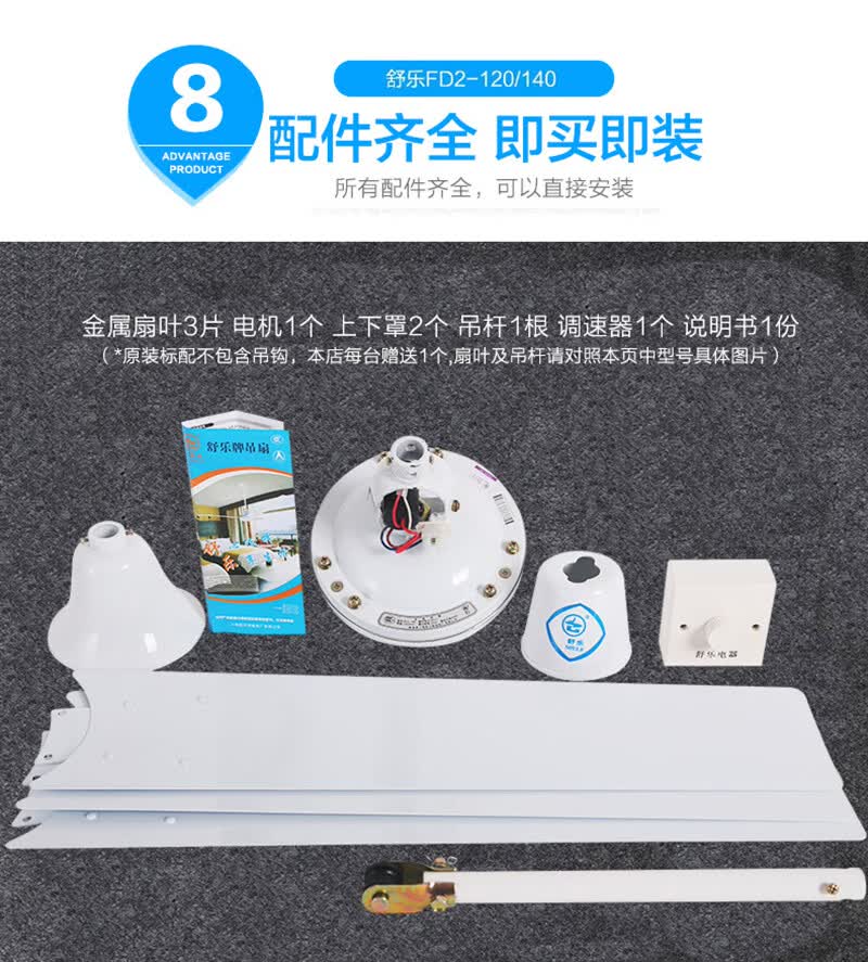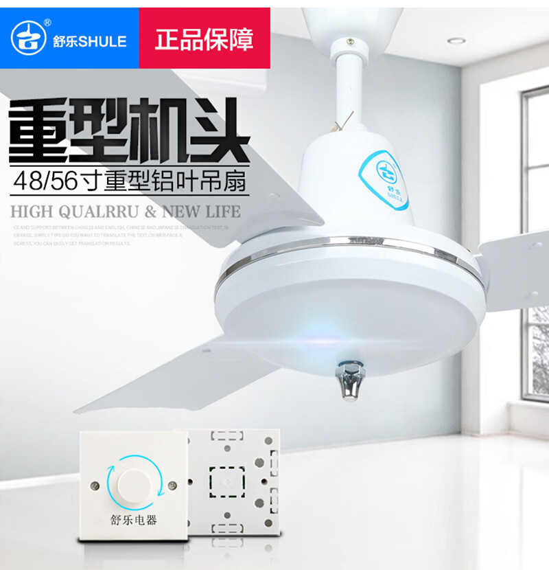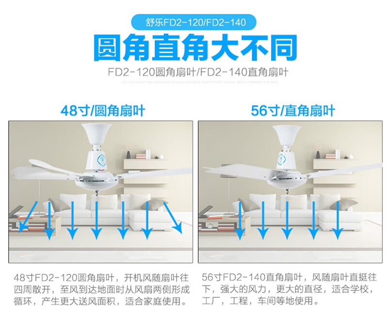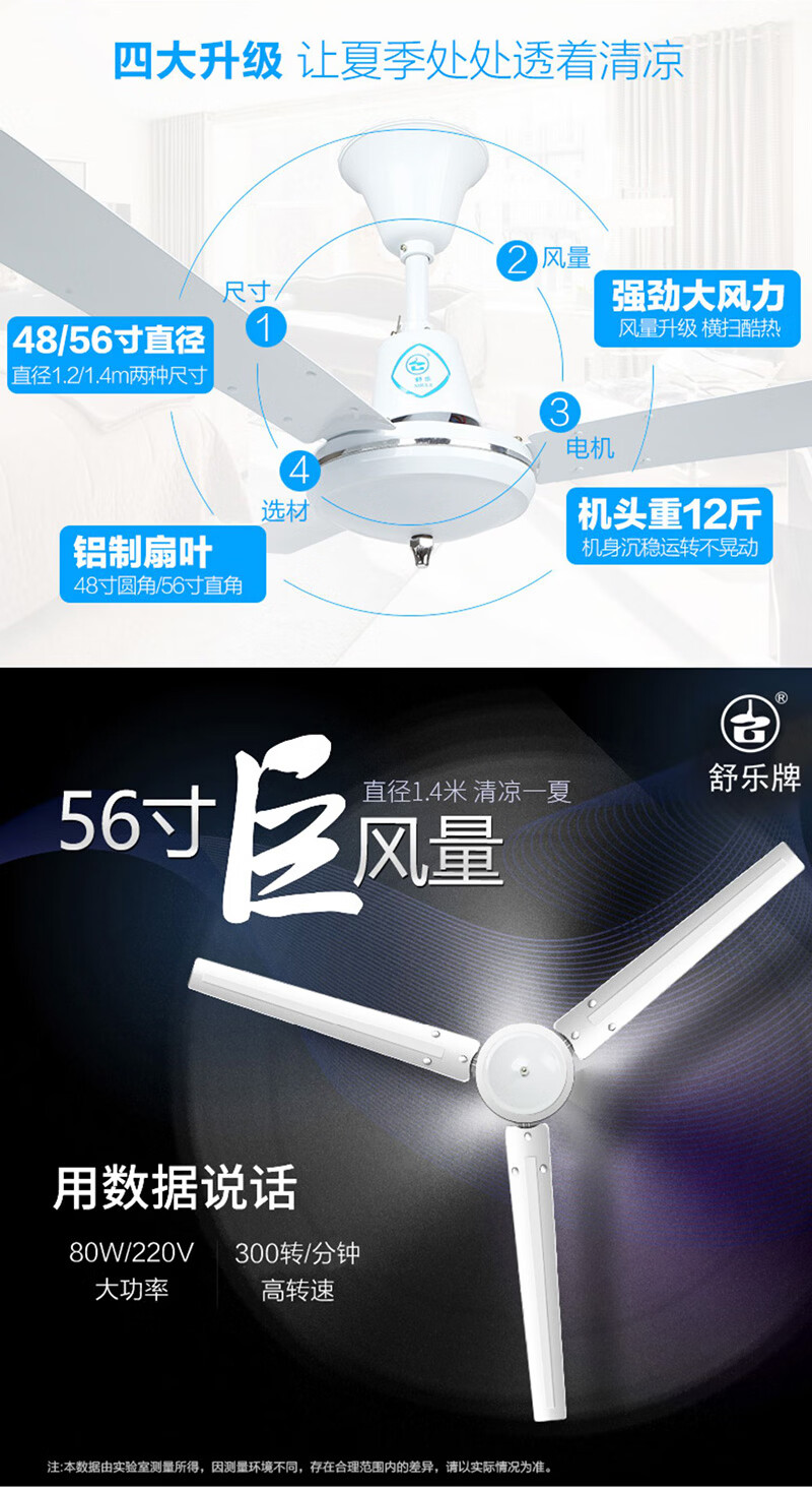 舒乐吊扇家用吊式电风扇客厅铝叶48寸56寸工厂餐厅工业吸顶扇宿舍楼顶风扇大风力静音车间工业扇 【56寸1.4米】【80W】【直角铝叶 铸铁机头】