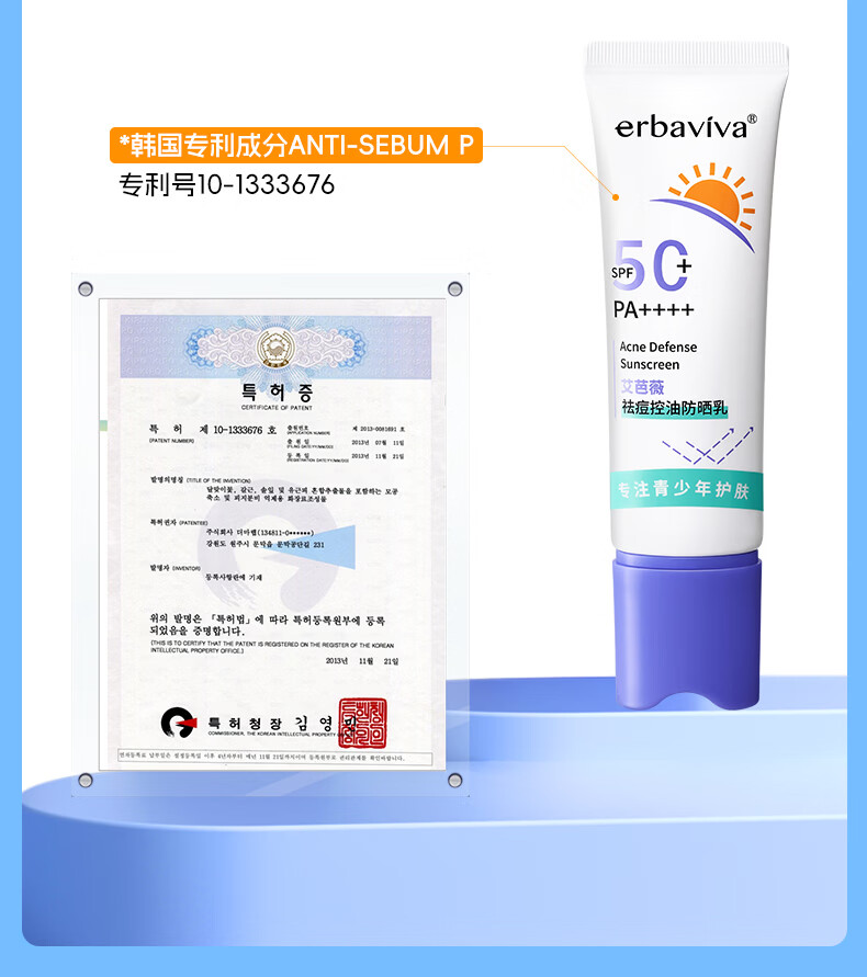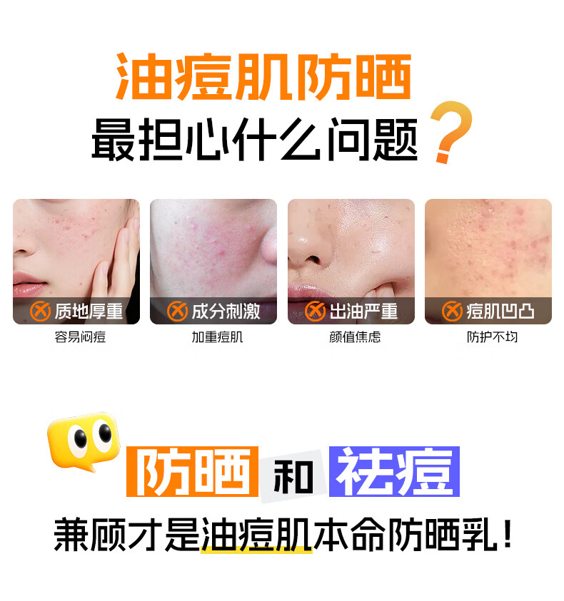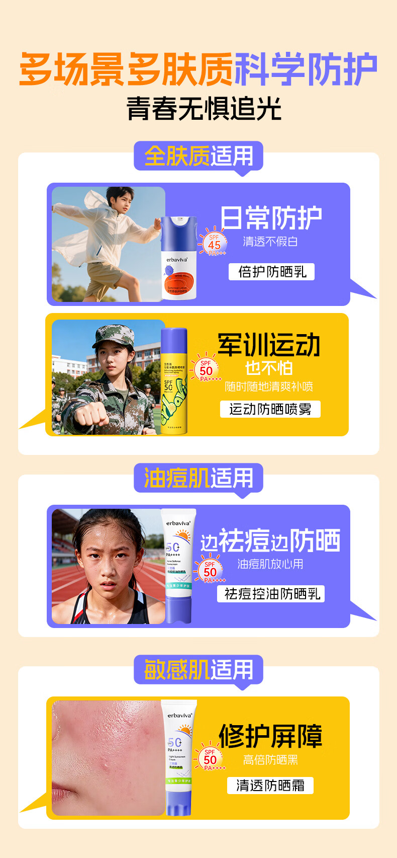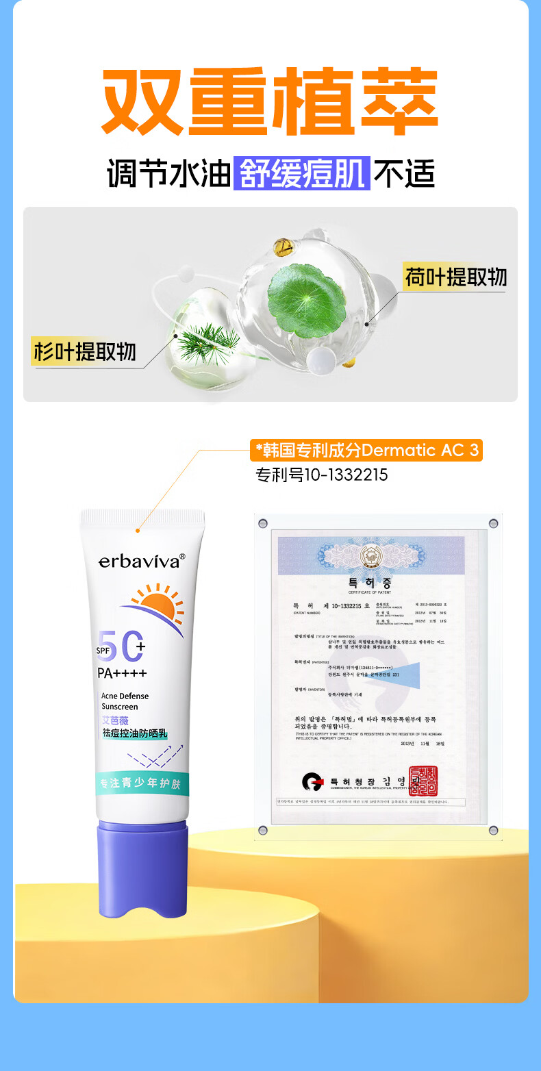 艾芭薇青少年祛痘防晒 控油保湿舒缓祛痘清透不拔干 初高中学生痘肌适用 50ml